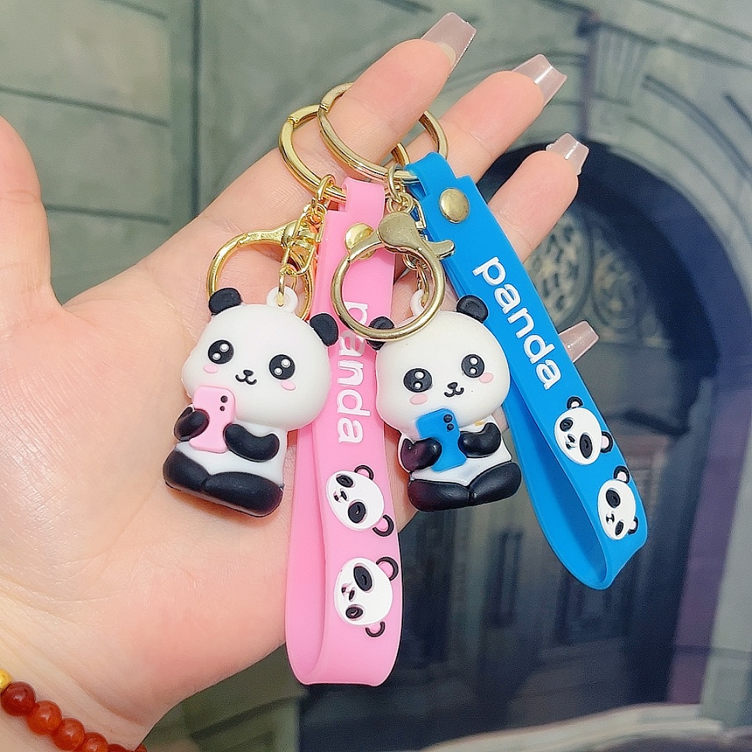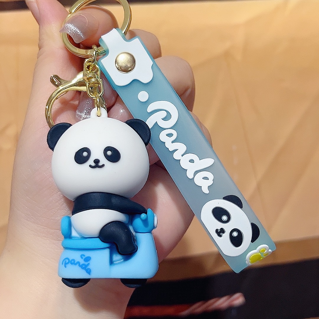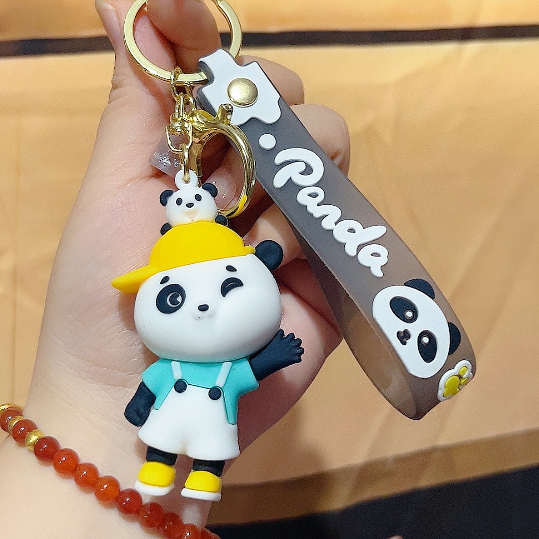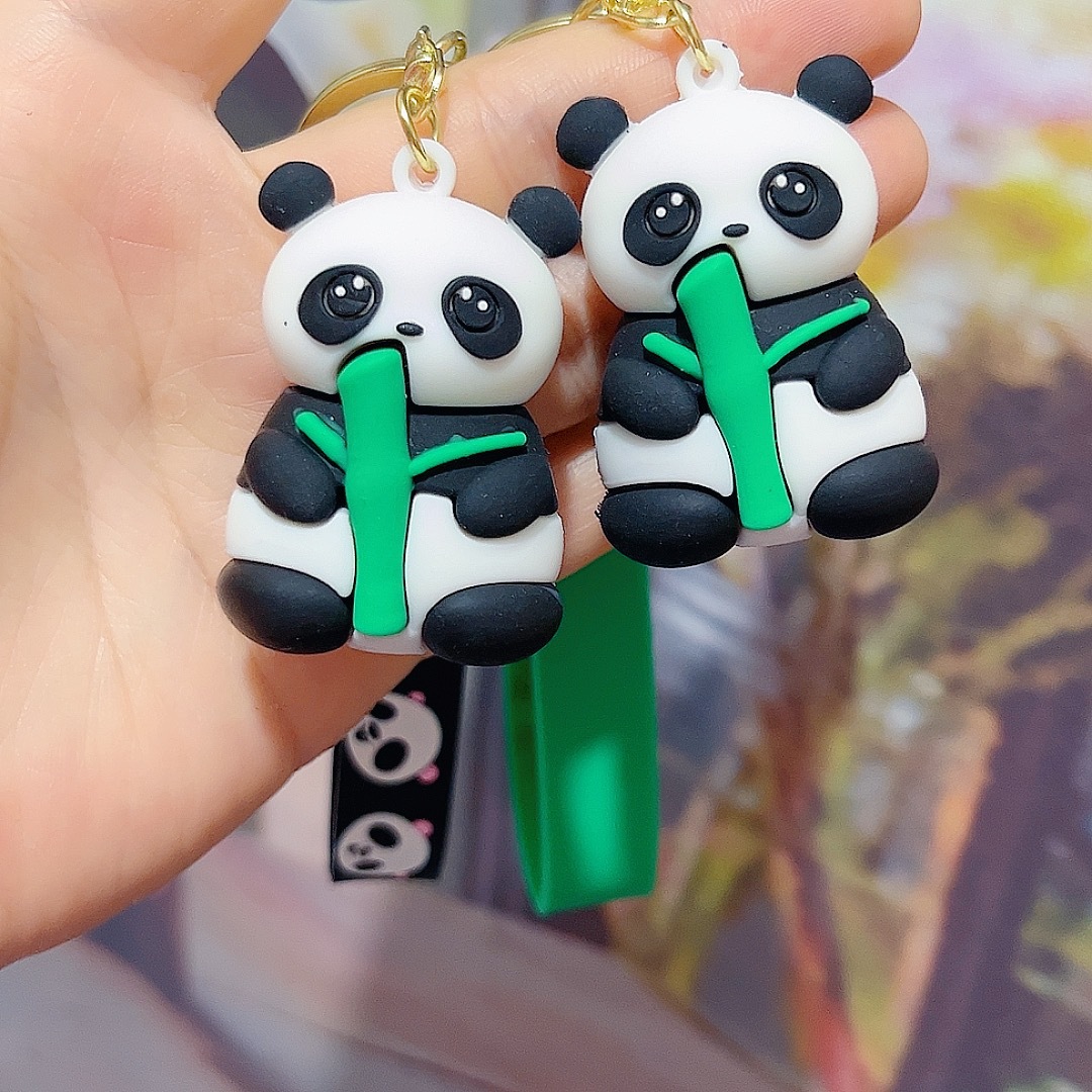 卡通国宝熊猫钥匙扣抱竹小熊钥匙挂件儿童包包挂饰地摊小礼品批发