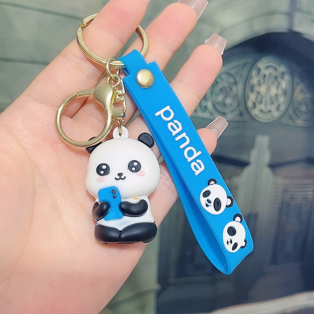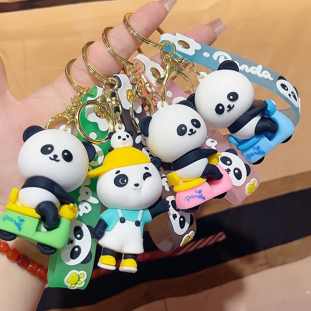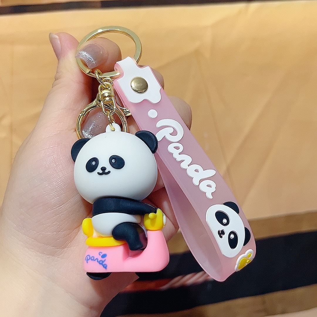 卡通国宝熊猫钥匙扣抱竹小熊钥匙挂件儿童包包挂饰地摊小礼品批发