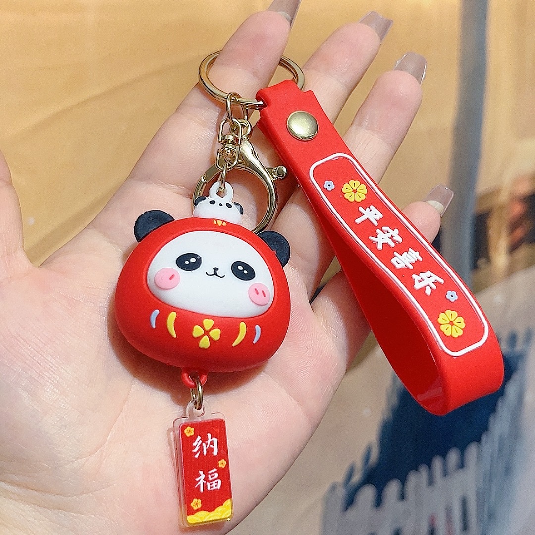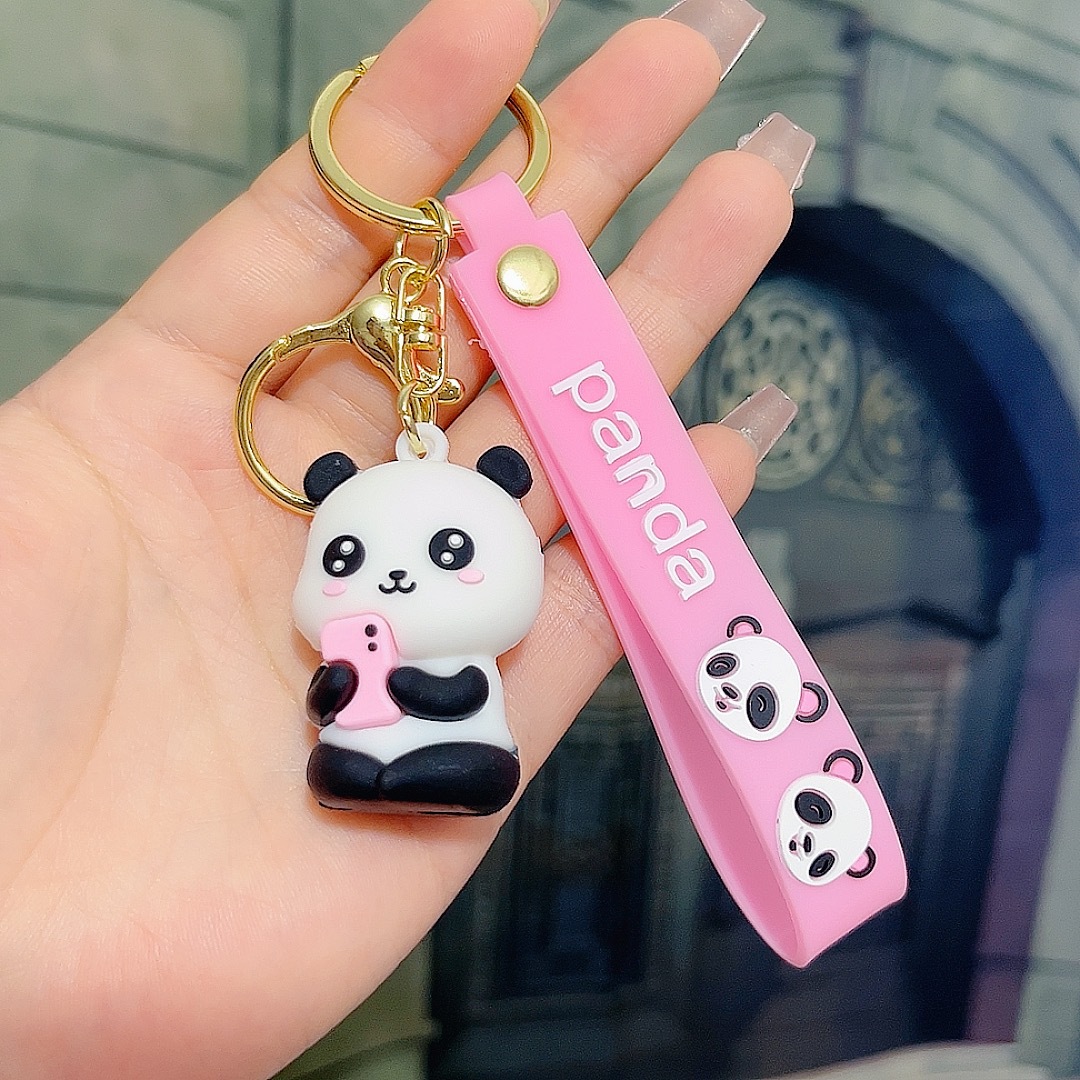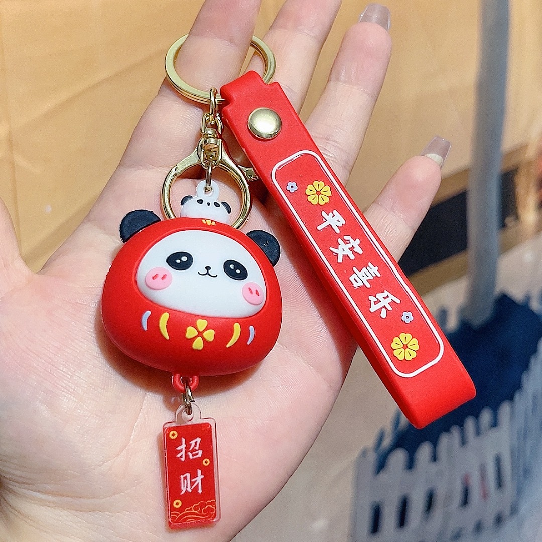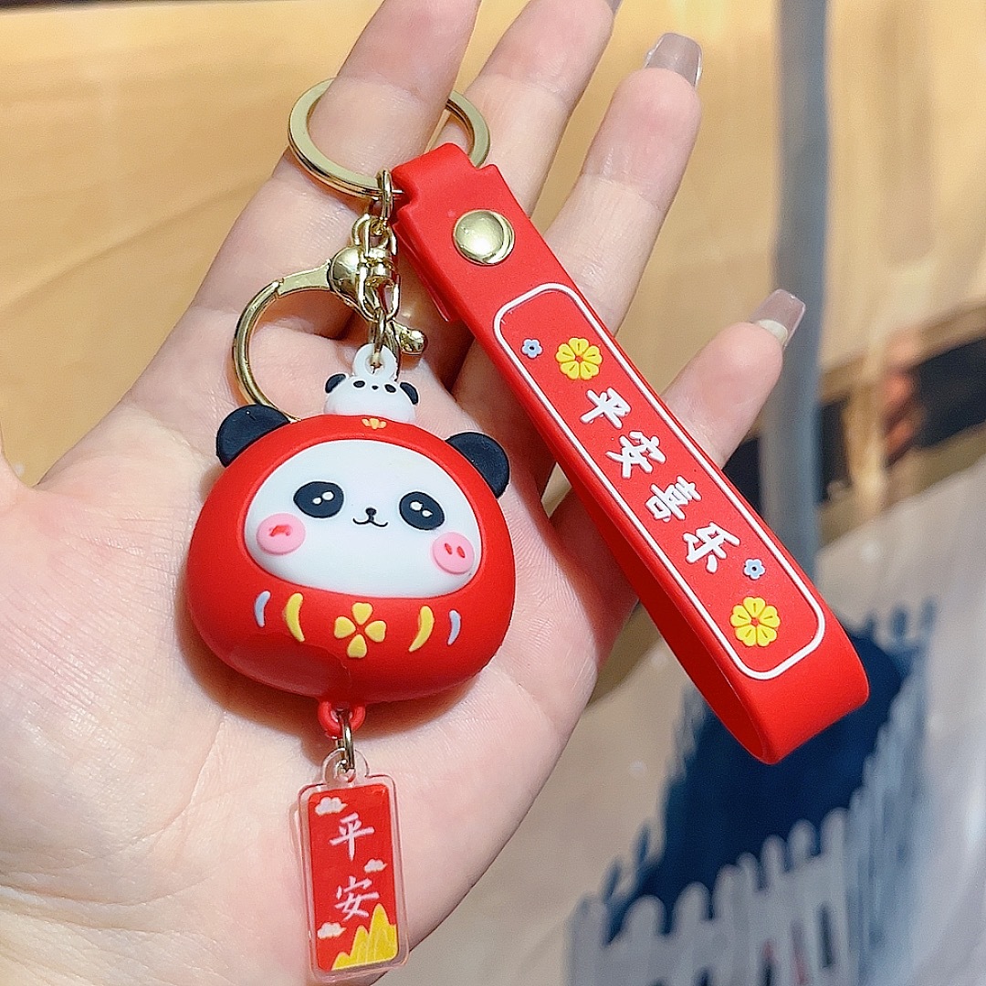 卡通国宝熊猫钥匙扣抱竹小熊钥匙挂件儿童包包挂饰地摊小礼品批发