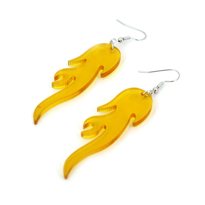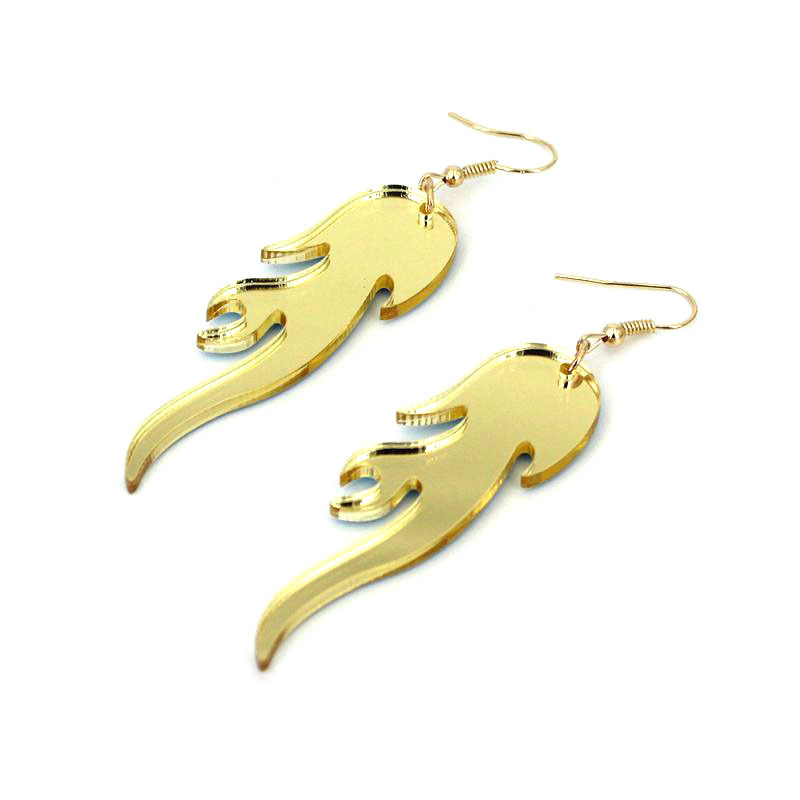 欧美个性亚克力镜面金色火焰耳环潮流饰品长耳坠女