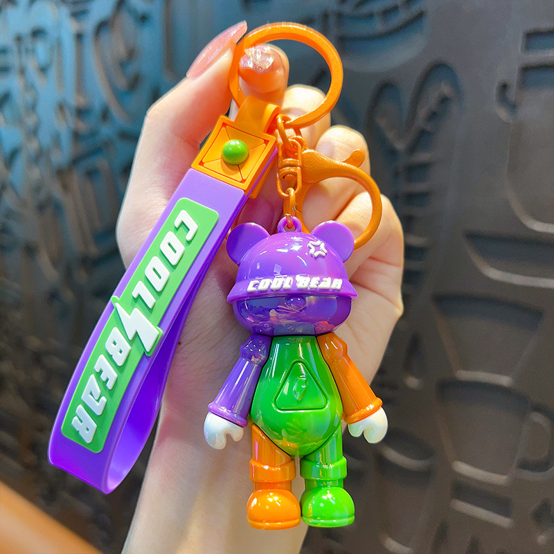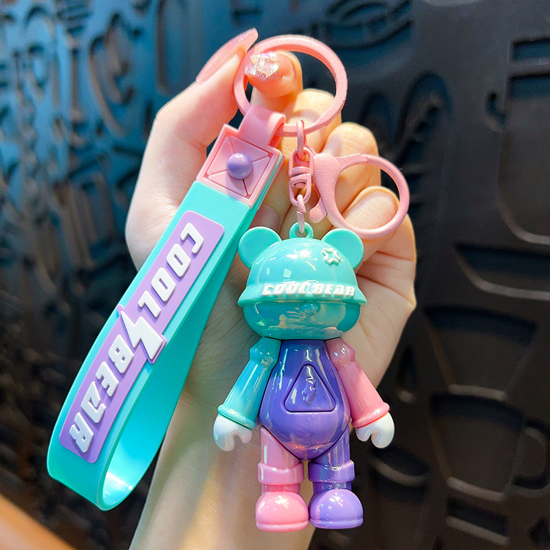 情侣拼色炫酷熊钥匙扣创意书包挂件公仔男生车钥匙挂饰小礼品批发