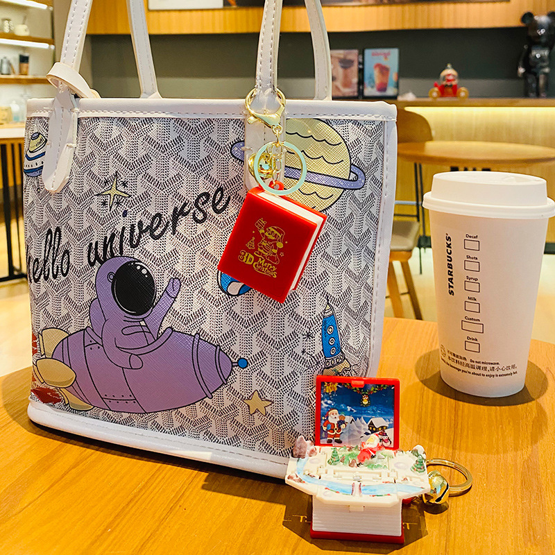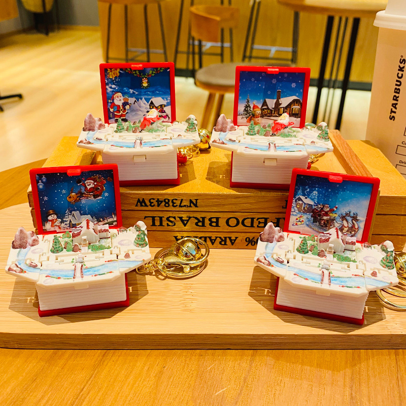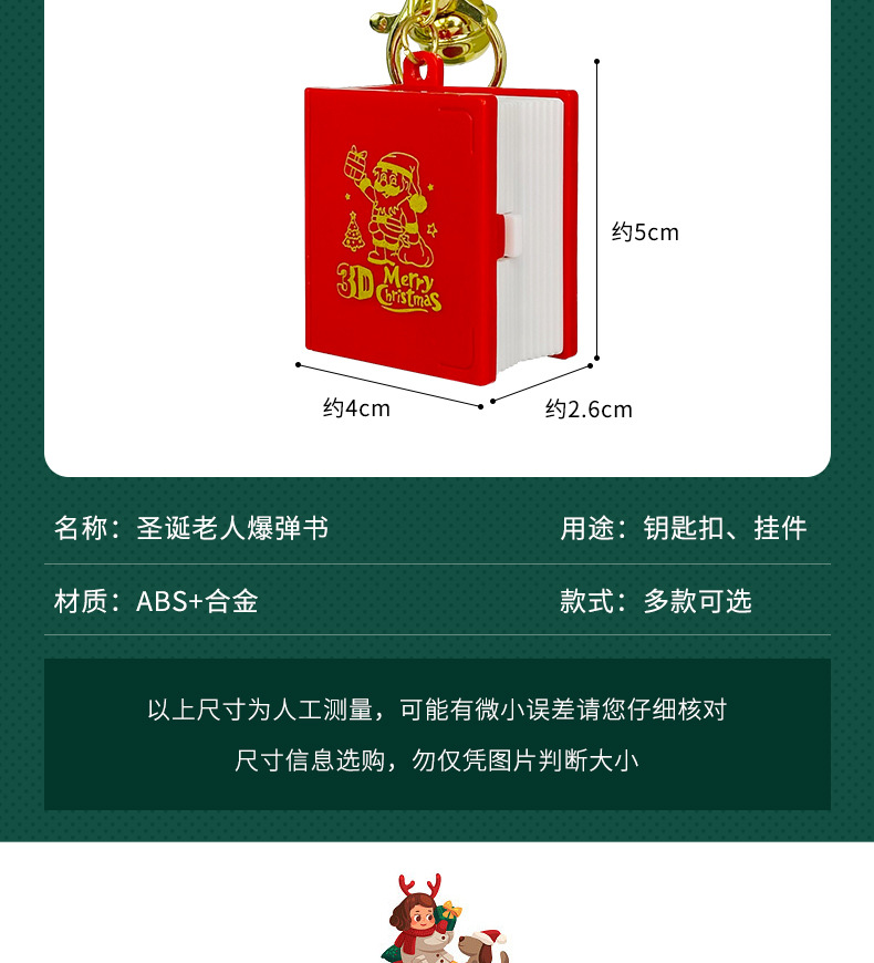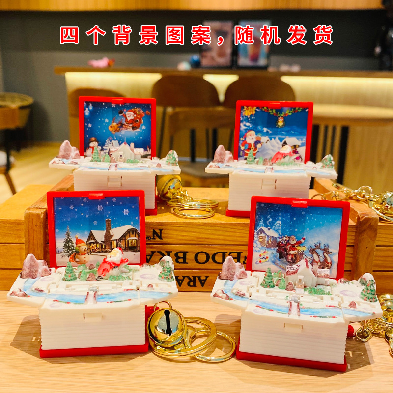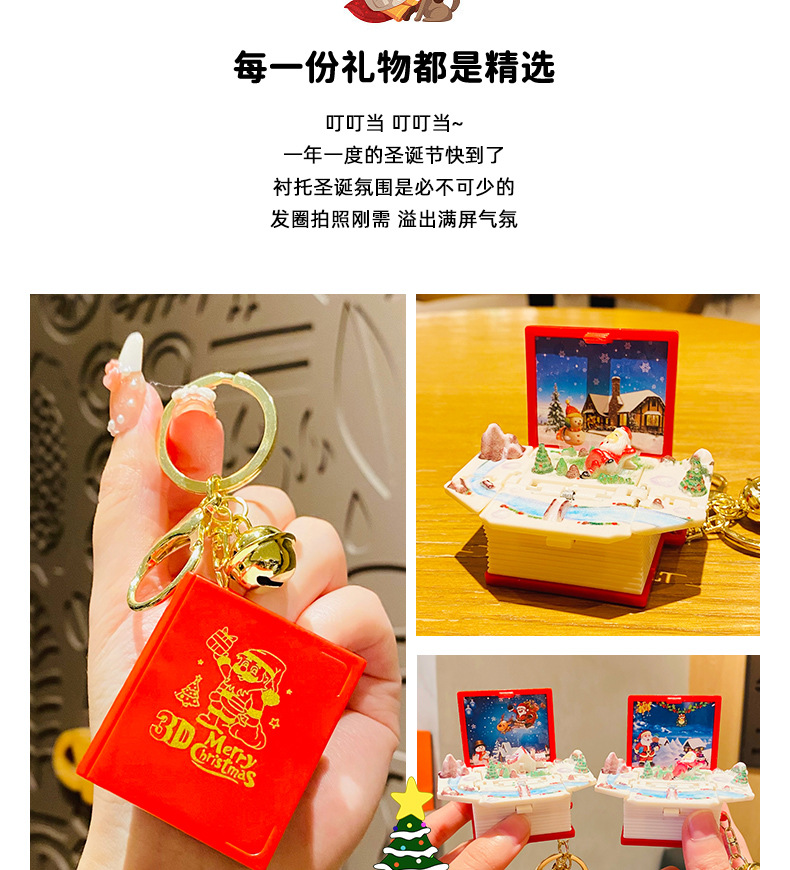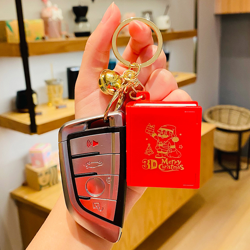 网红情侣圣诞老人爆弹书钥匙扣女精致书包挂件公仔男生车钥匙挂饰