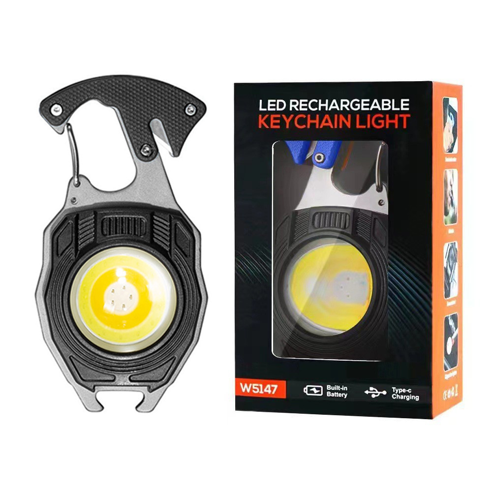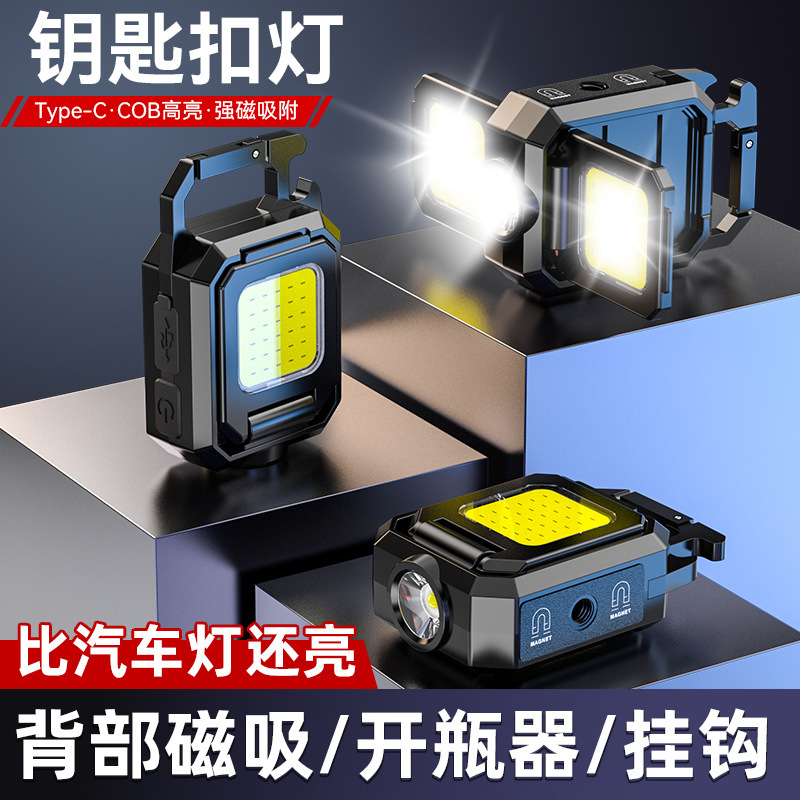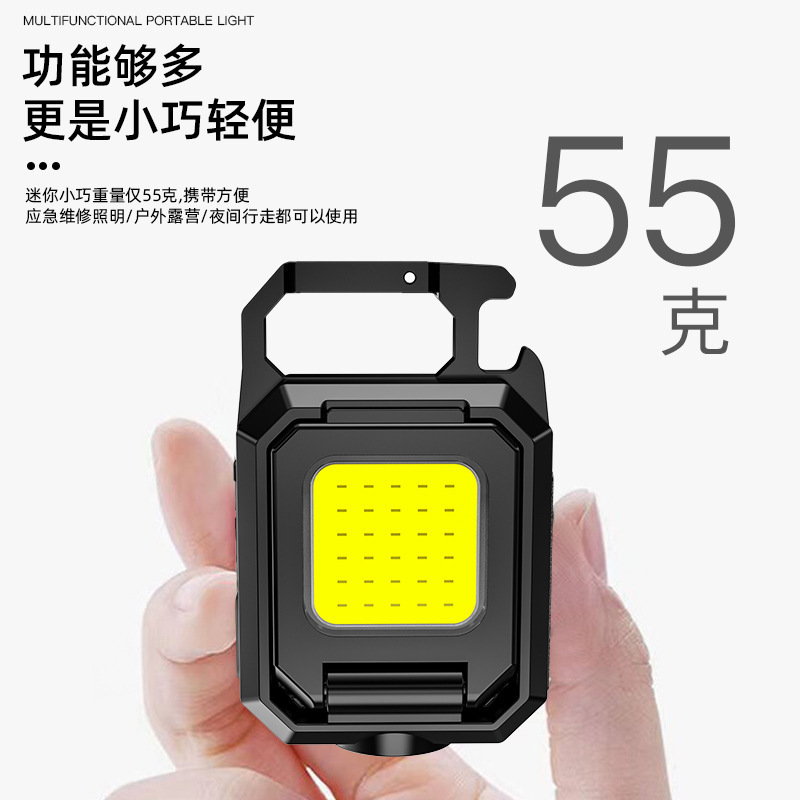 跨境多功能cob迷你钥匙扣灯 磁吸工作灯户外登山野营手电筒露营灯