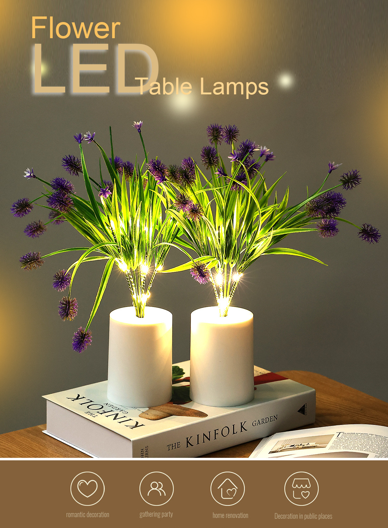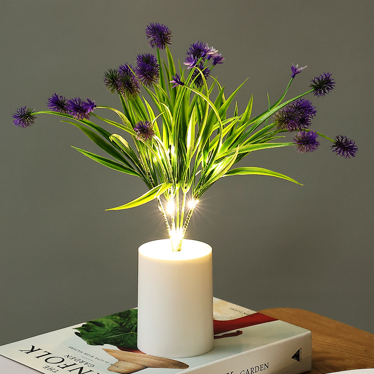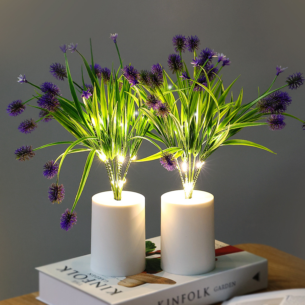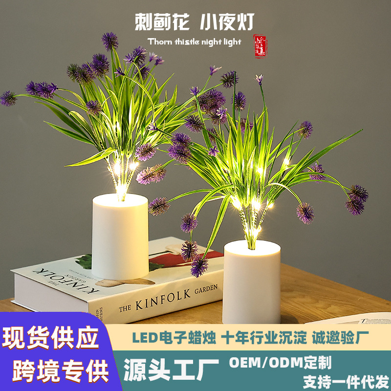 跨境专供刺蓟花小夜灯假花LED蜡烛灯仿真花束家居装饰摆件氛围灯