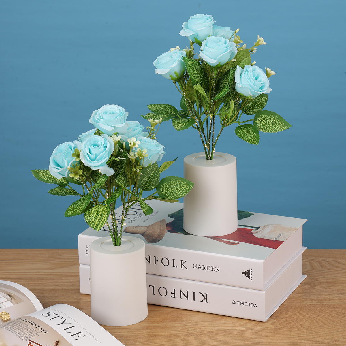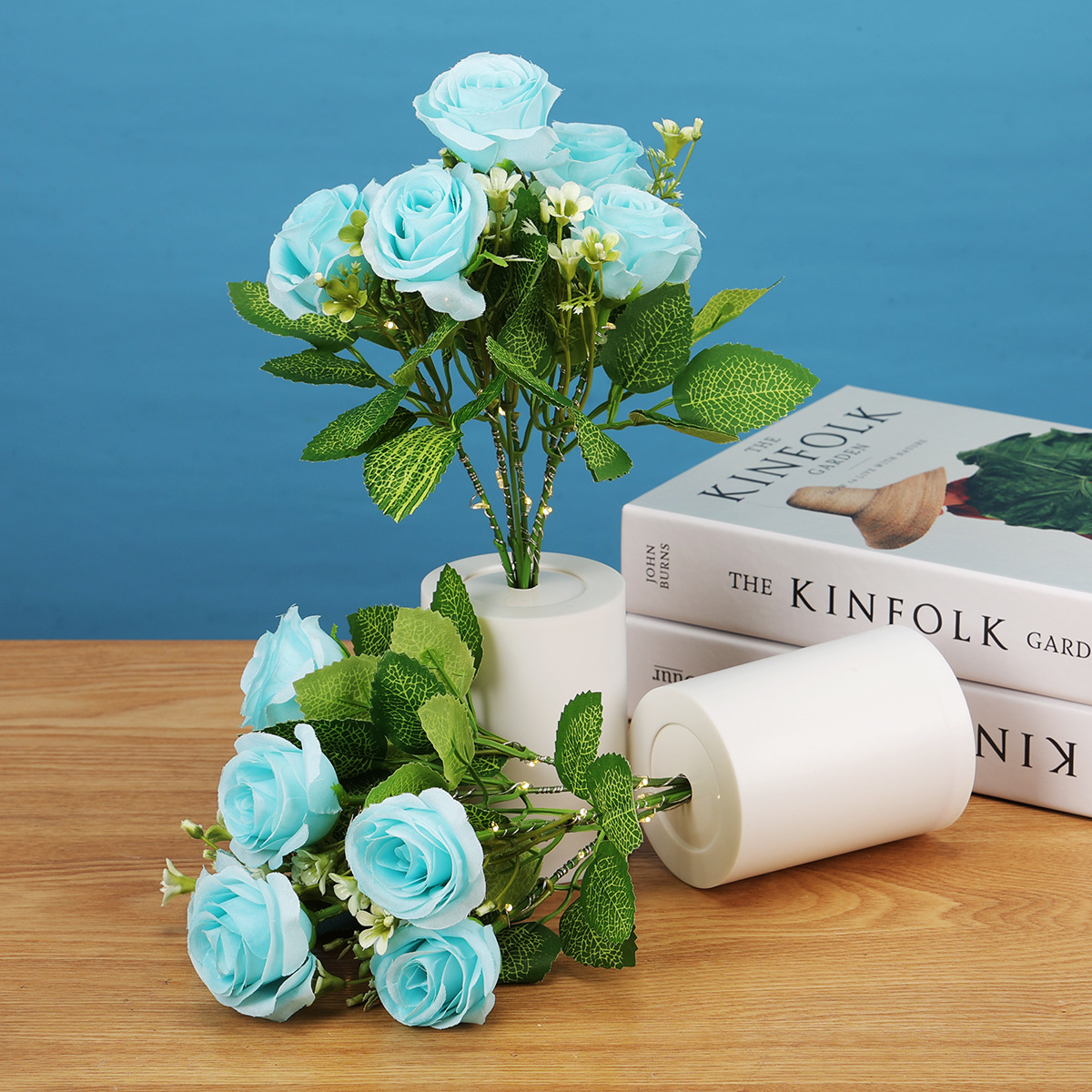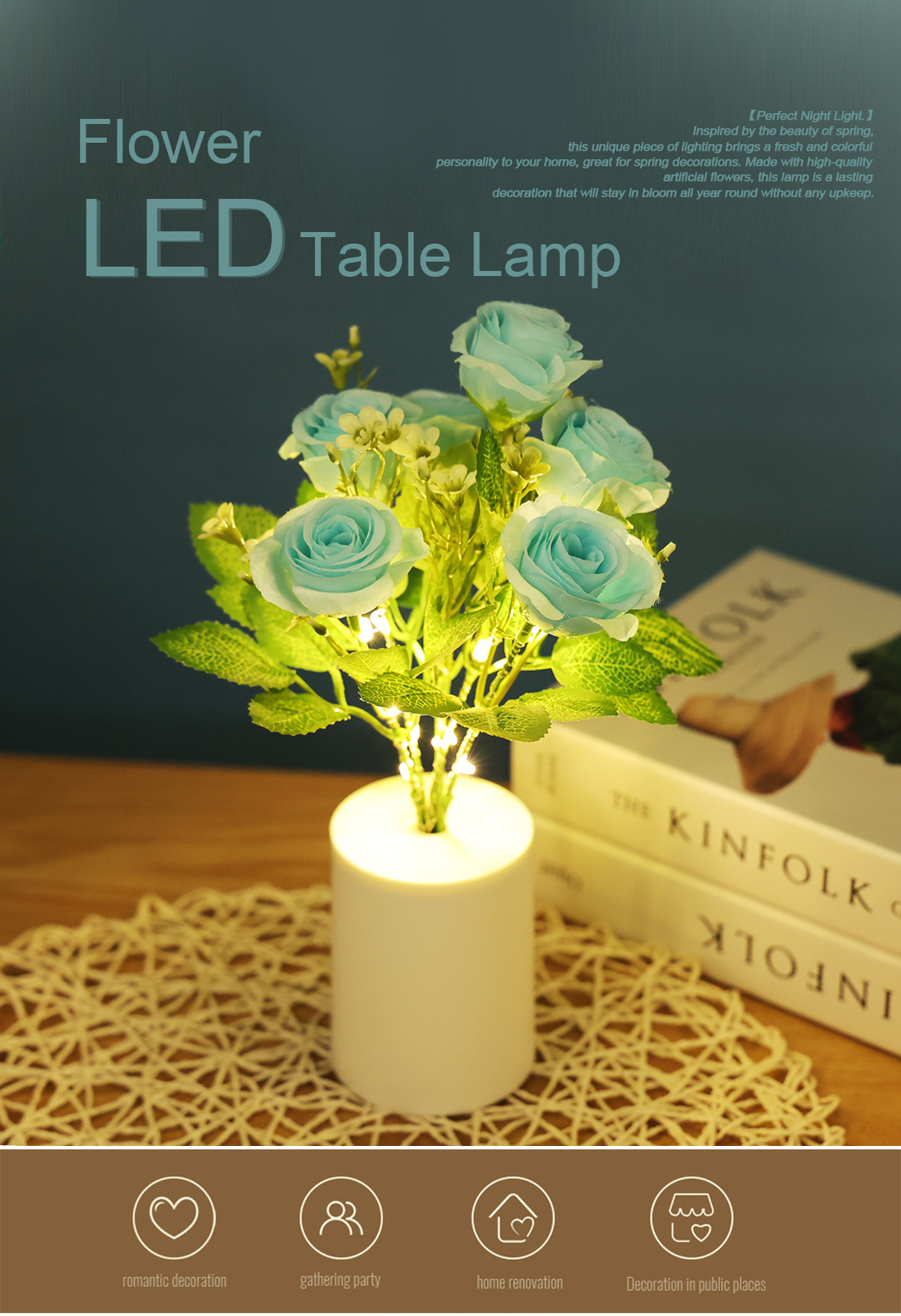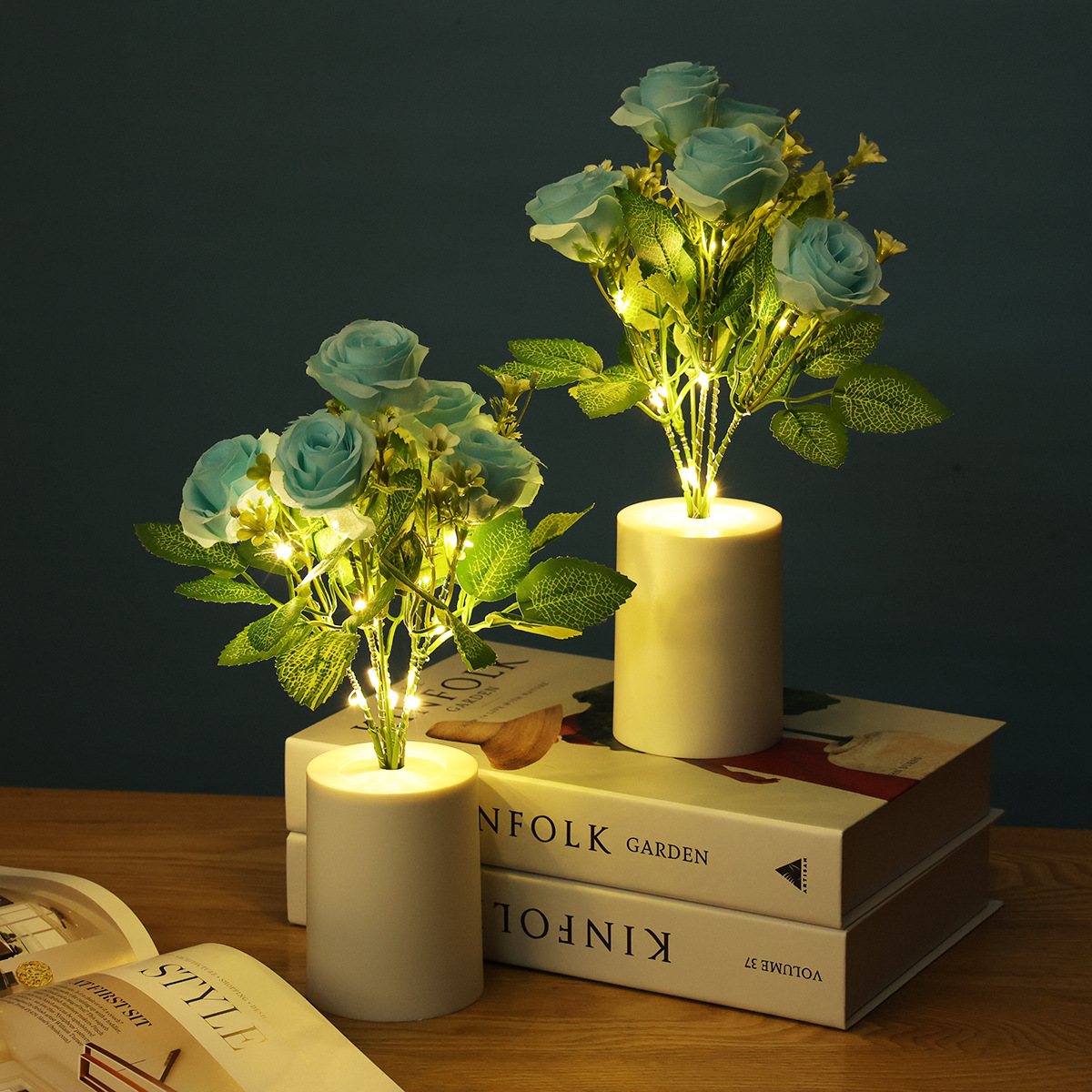 跨境专供蓝色玫瑰花小夜灯LED蜡烛灯仿真花束家居装饰婚庆摆件
