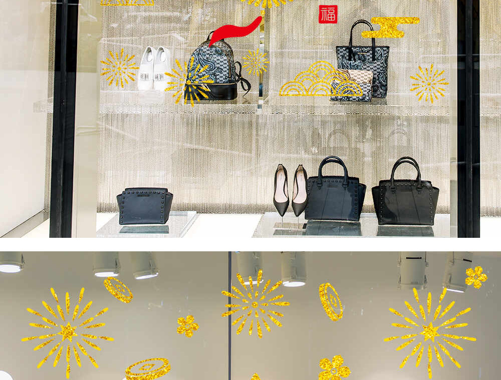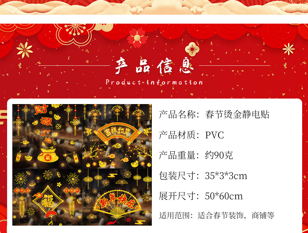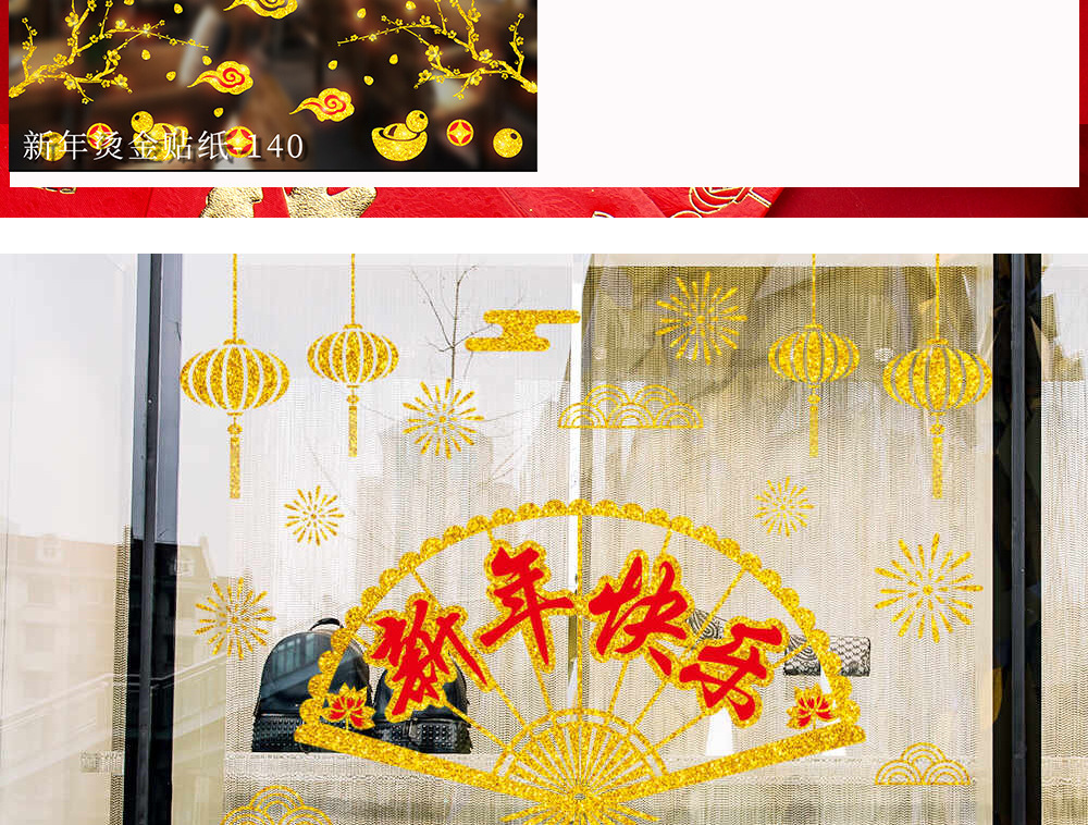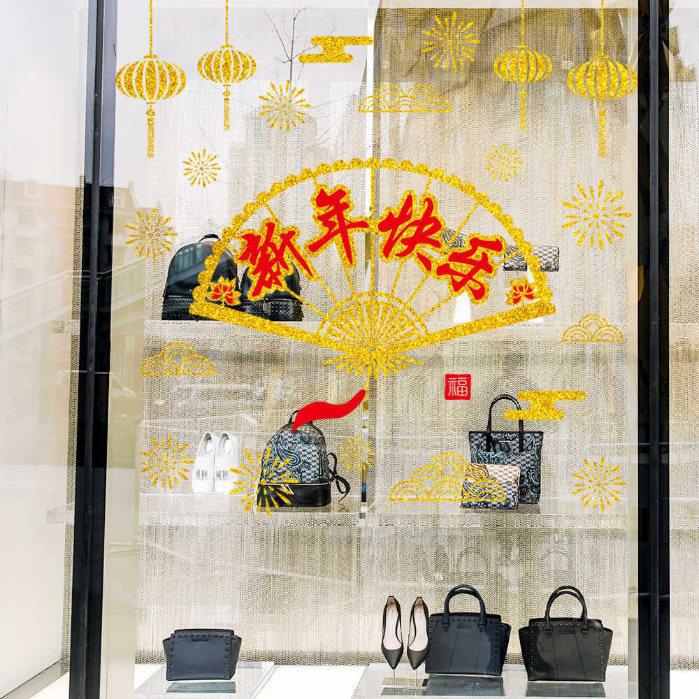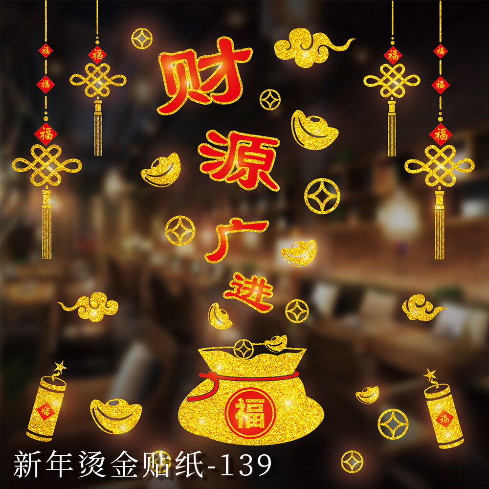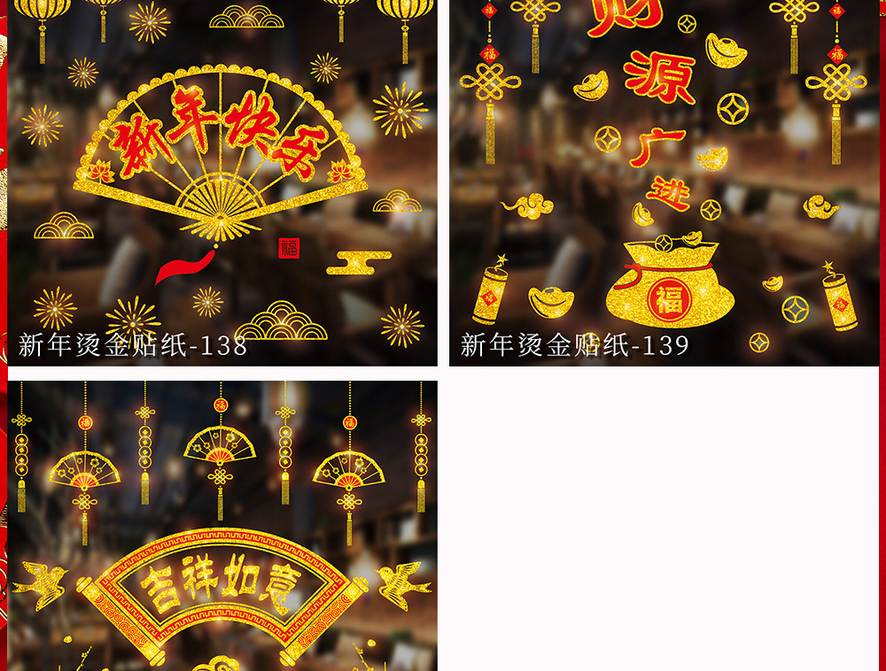 2025春节新年彩色金粉静电贴窗贴橱窗装饰商场酒元旦装饰玻璃窗贴