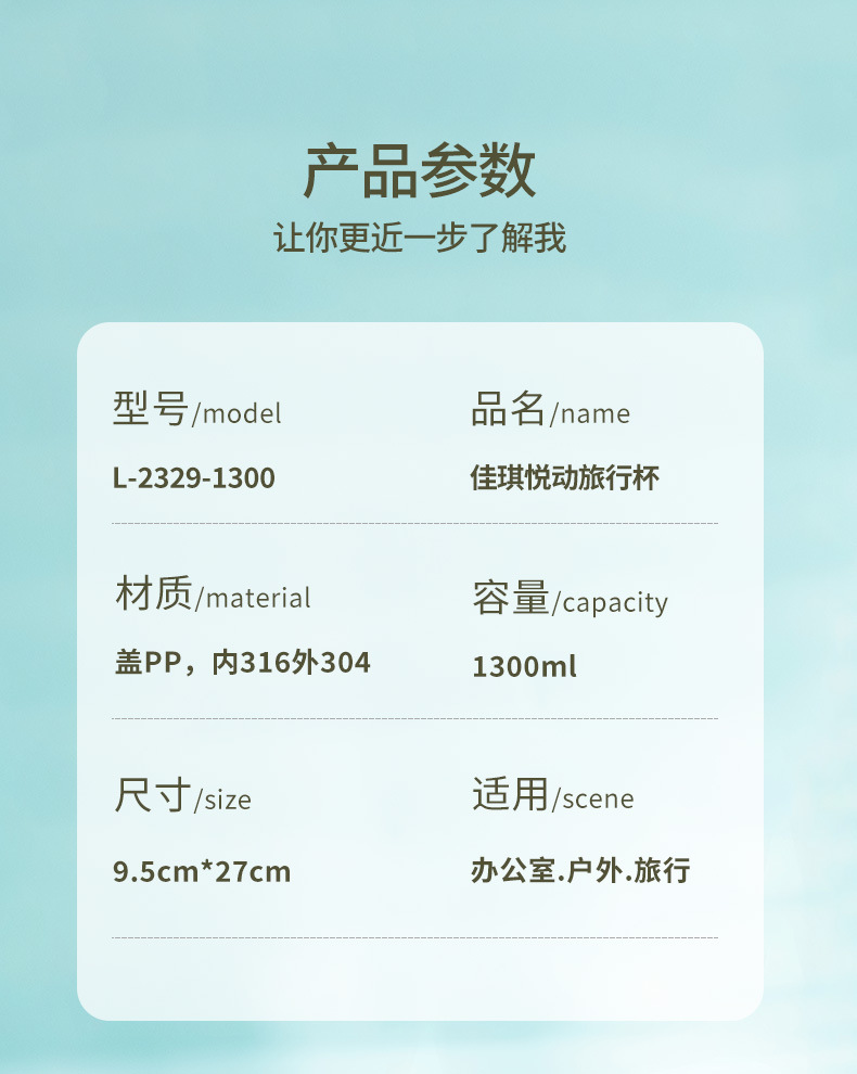 | 1300ml(1300ml) | USD $0.0 | 9996 piece available |