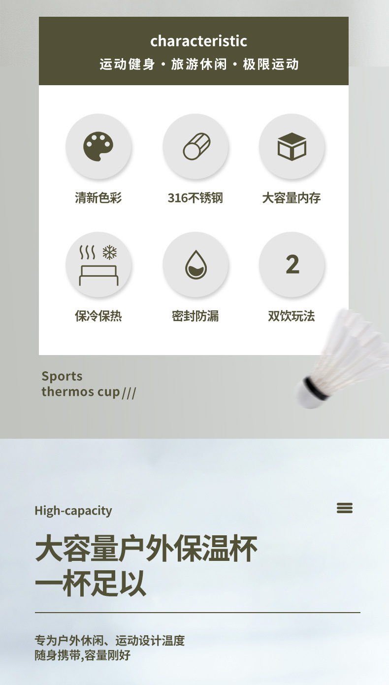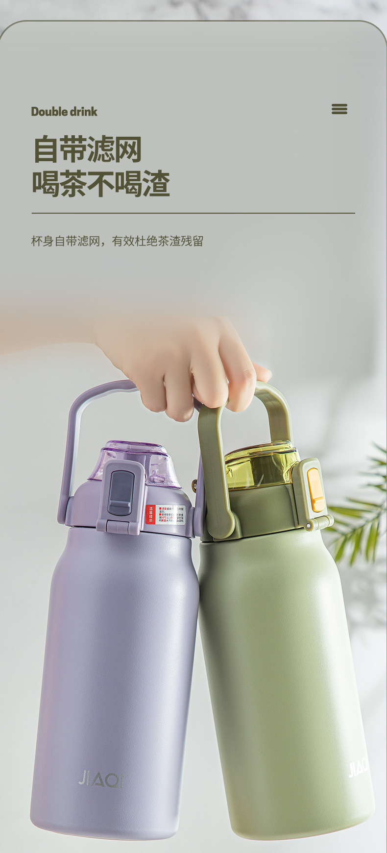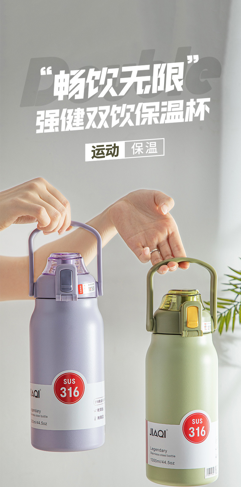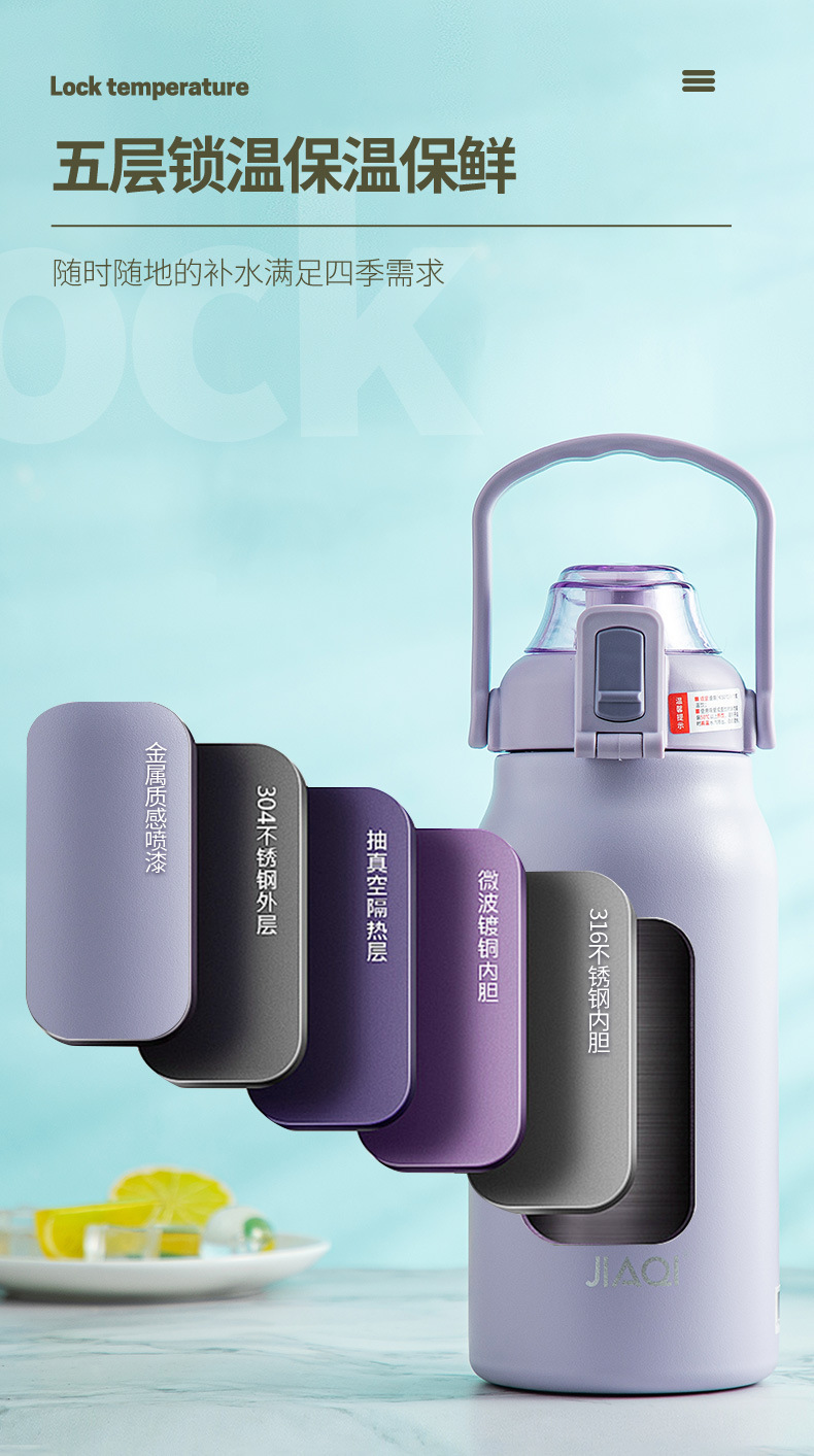 佳琪保温杯大容量水杯女生316L不锈钢吸管杯男生学生儿童保温水壶