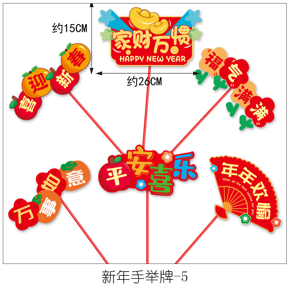 新年2025纸质手举牌布置手拿牌春节气氛主题活动氛围合影手持牌