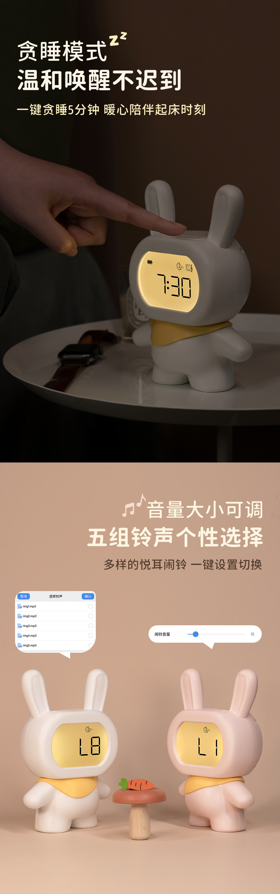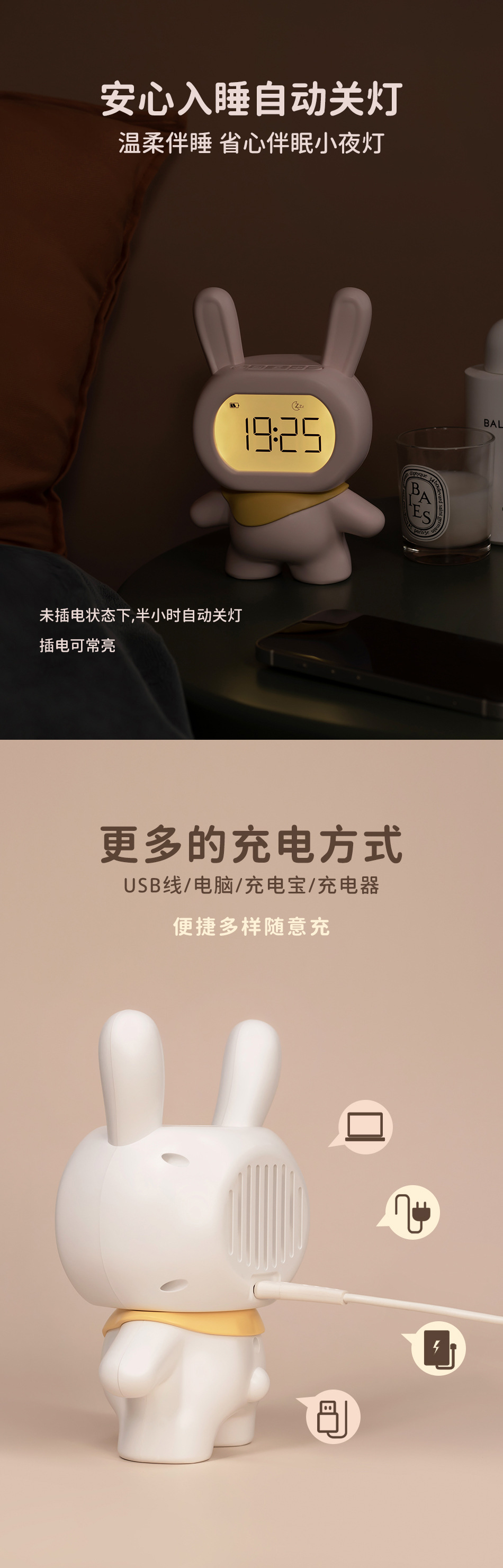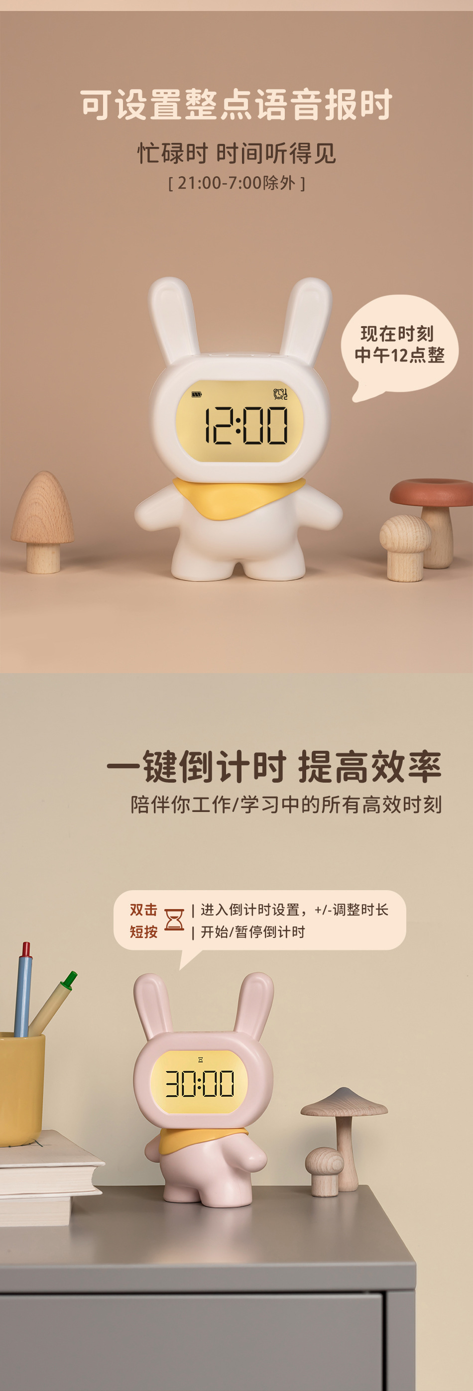 小飞兔闹钟 夜灯闹钟卡通兔闹钟学生儿童充电闹钟