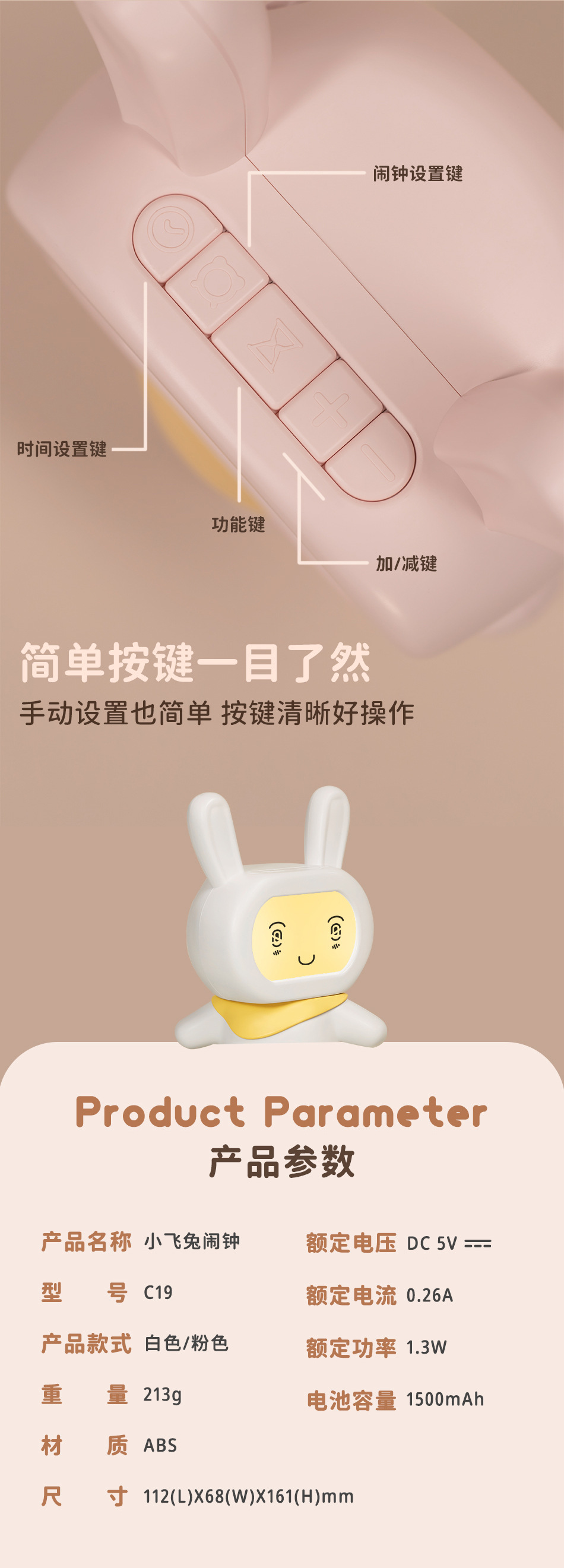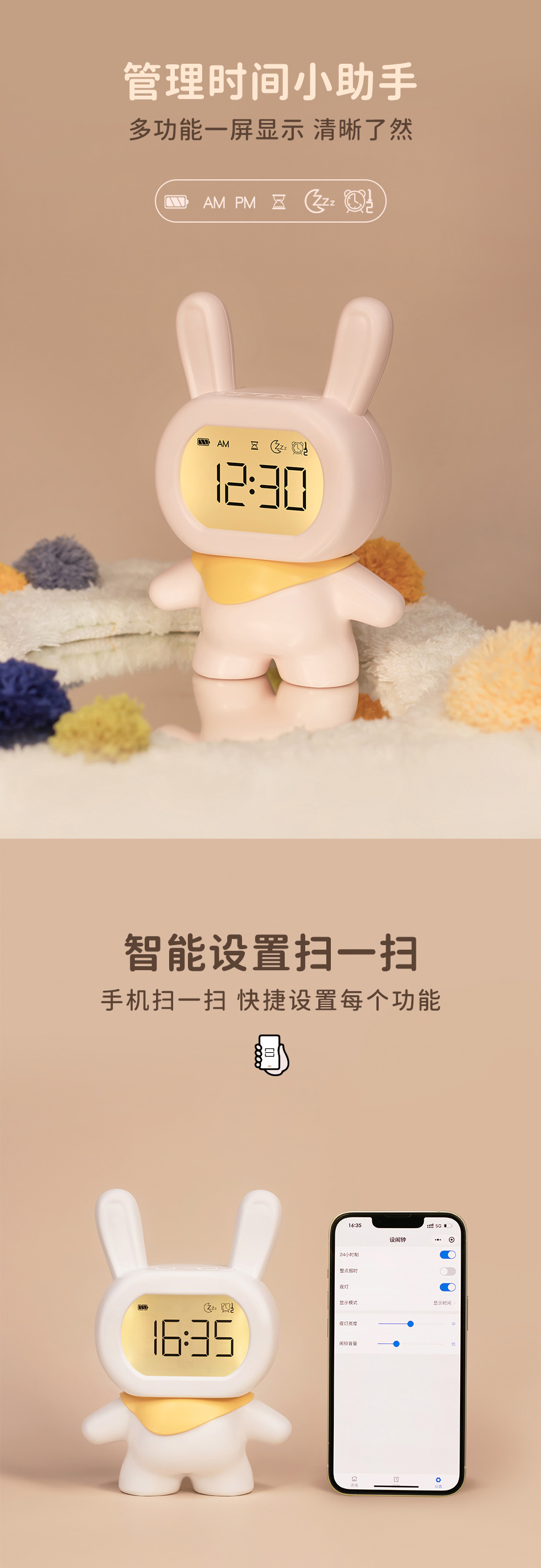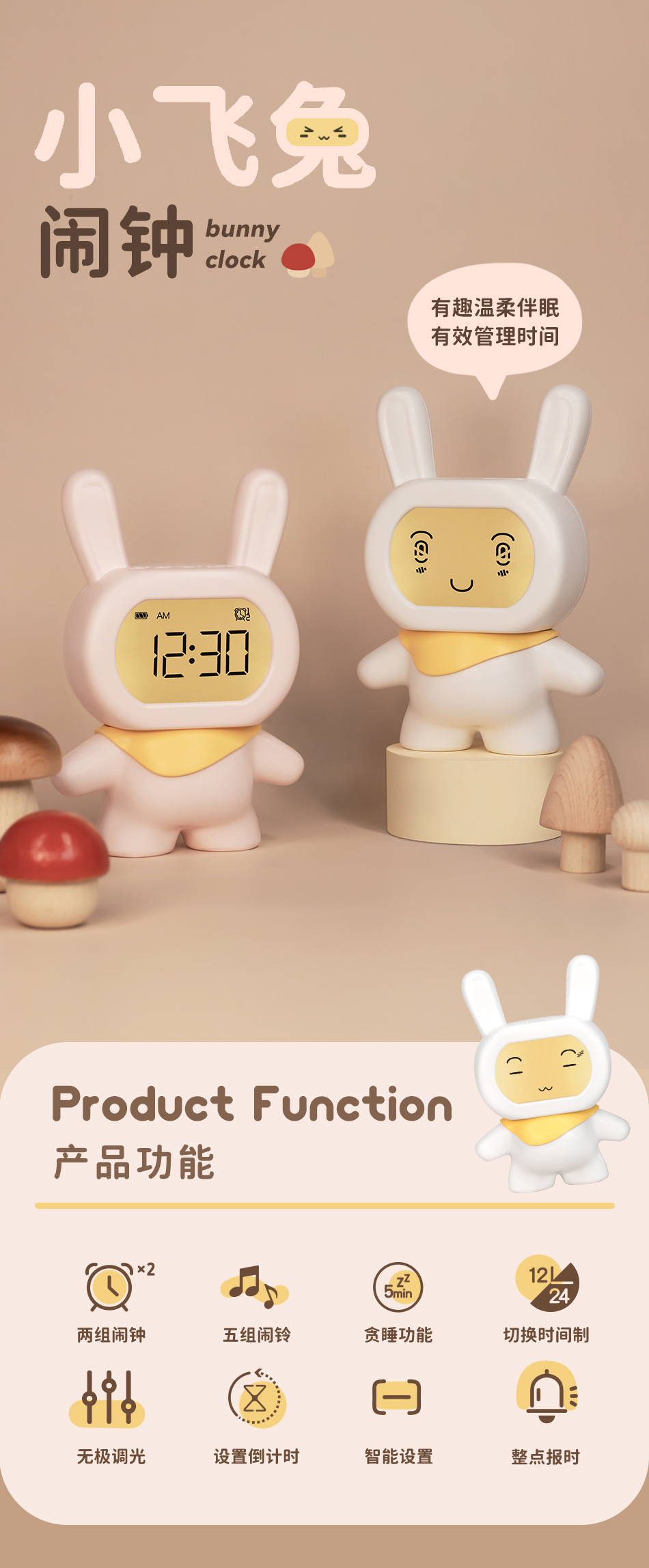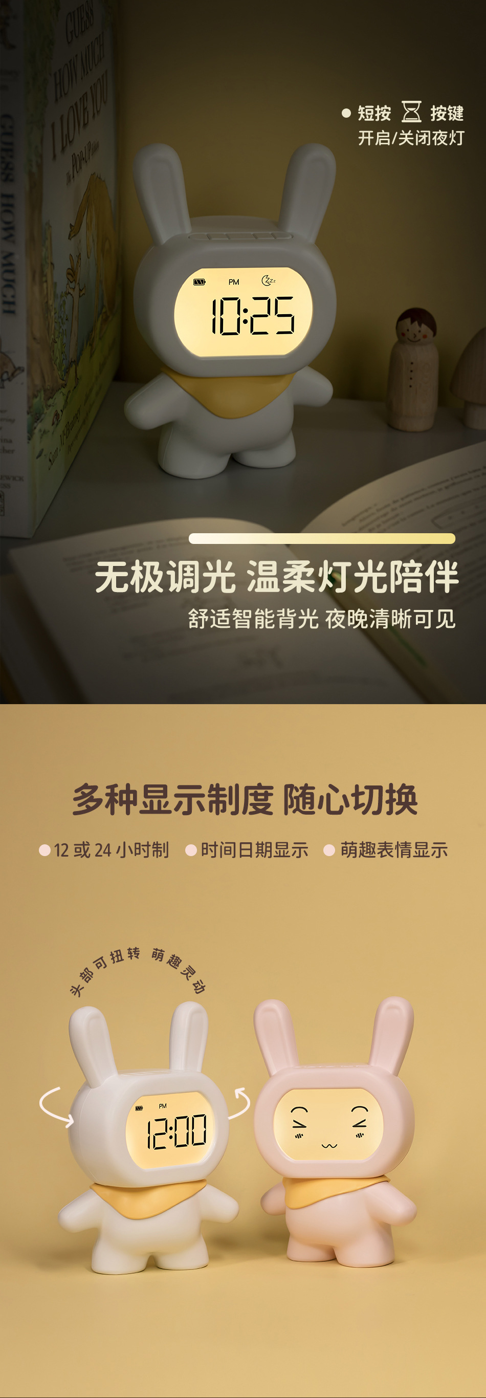 小飞兔闹钟 夜灯闹钟卡通兔闹钟学生儿童充电闹钟