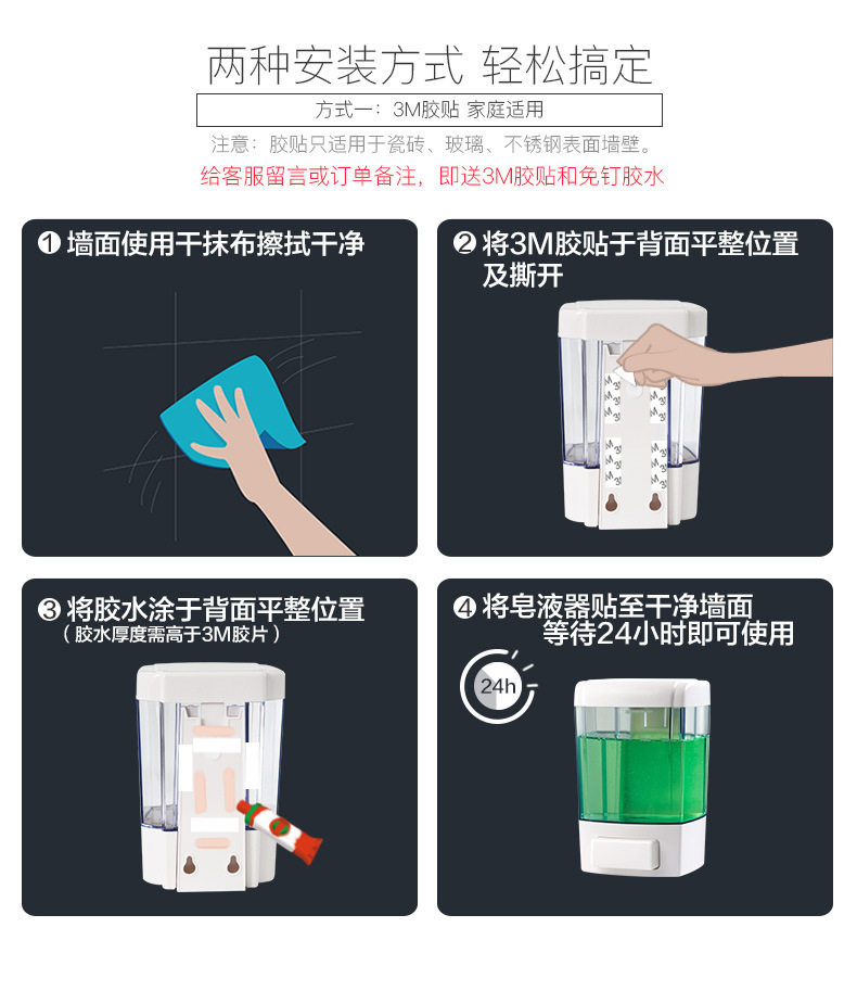 皂液器免打孔家用卫生间壁挂式洗手液按压酒店宾馆洗发水沐浴露盒