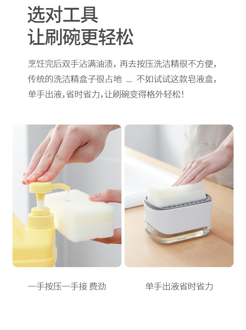 沃尔德跨境专供厨房刷洗洁精收纳盒自动加液器按压式出液盒皂液器