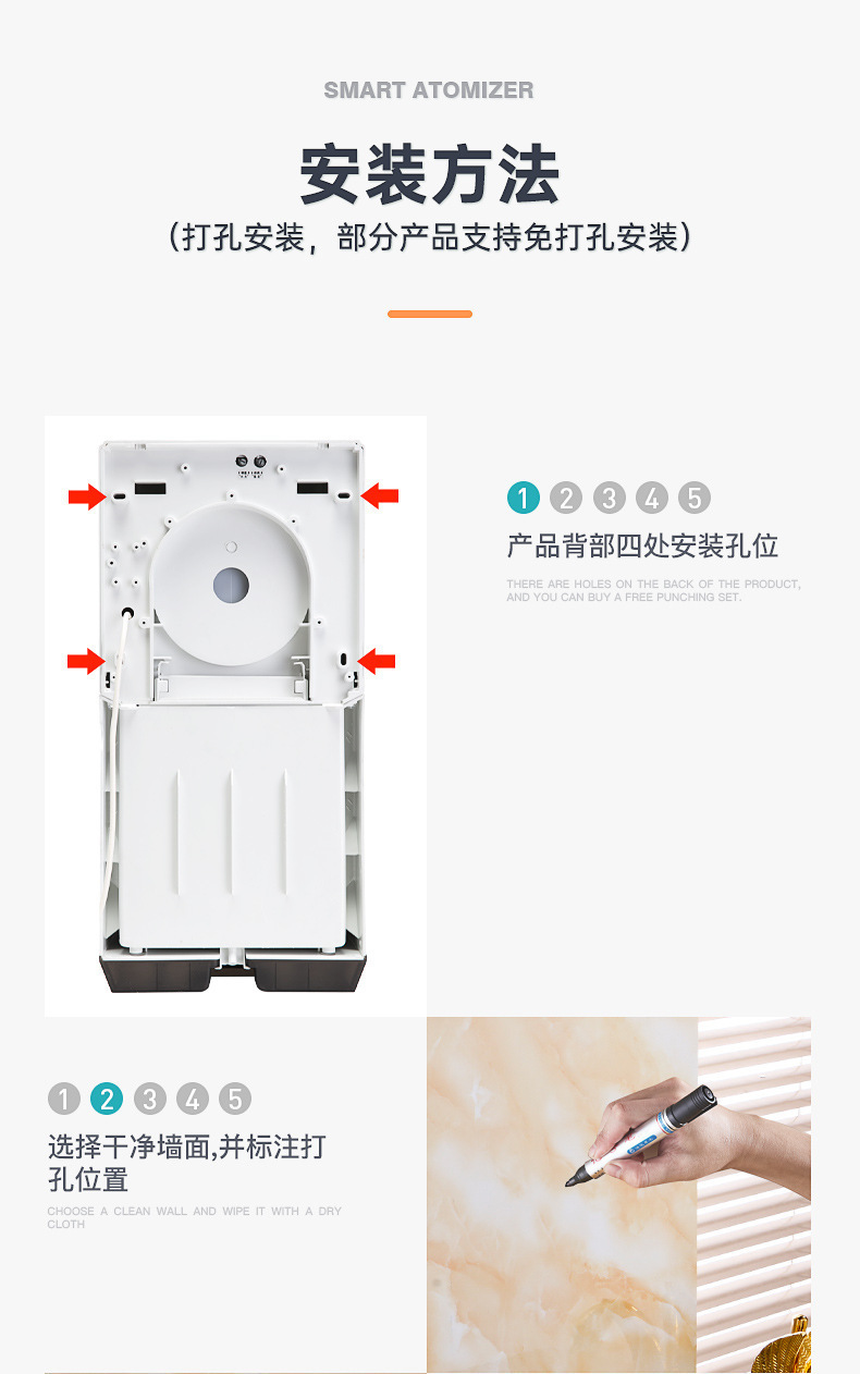 新款自动感应壁挂式手部消毒机酒精喷雾器幼儿园洗手喷淋手消毒器
