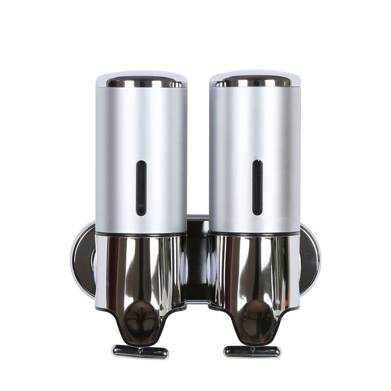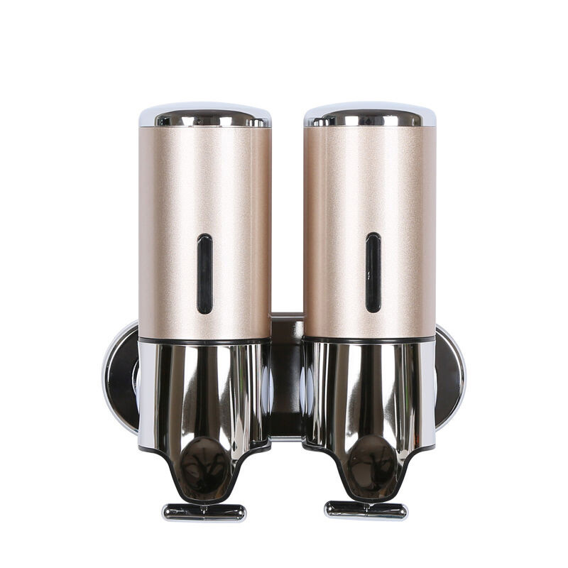 沃尔德双头皂液器酒店浴室壁挂式按压给皂盒不锈钢手动洗手皂液器