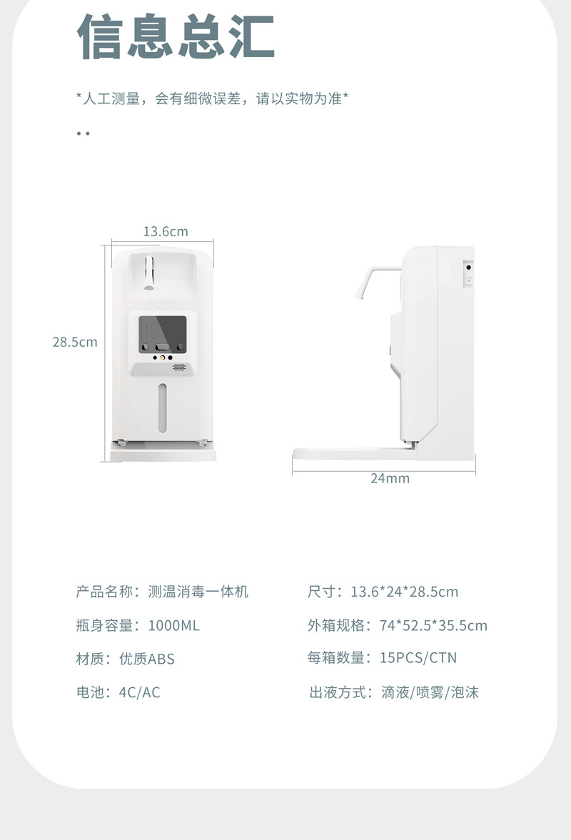 厂家现货消毒测温体温计自动感应皂液器多种出液消毒器医院测温仪