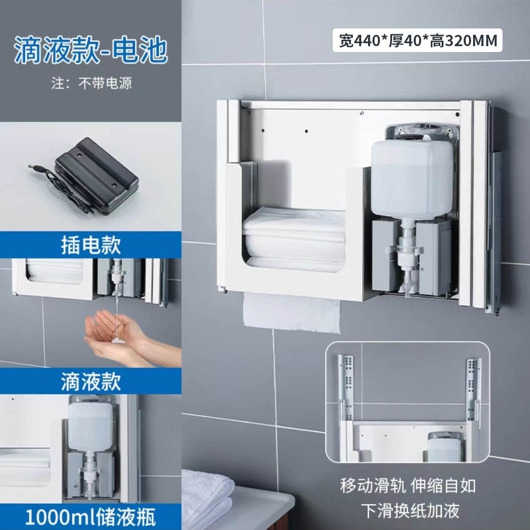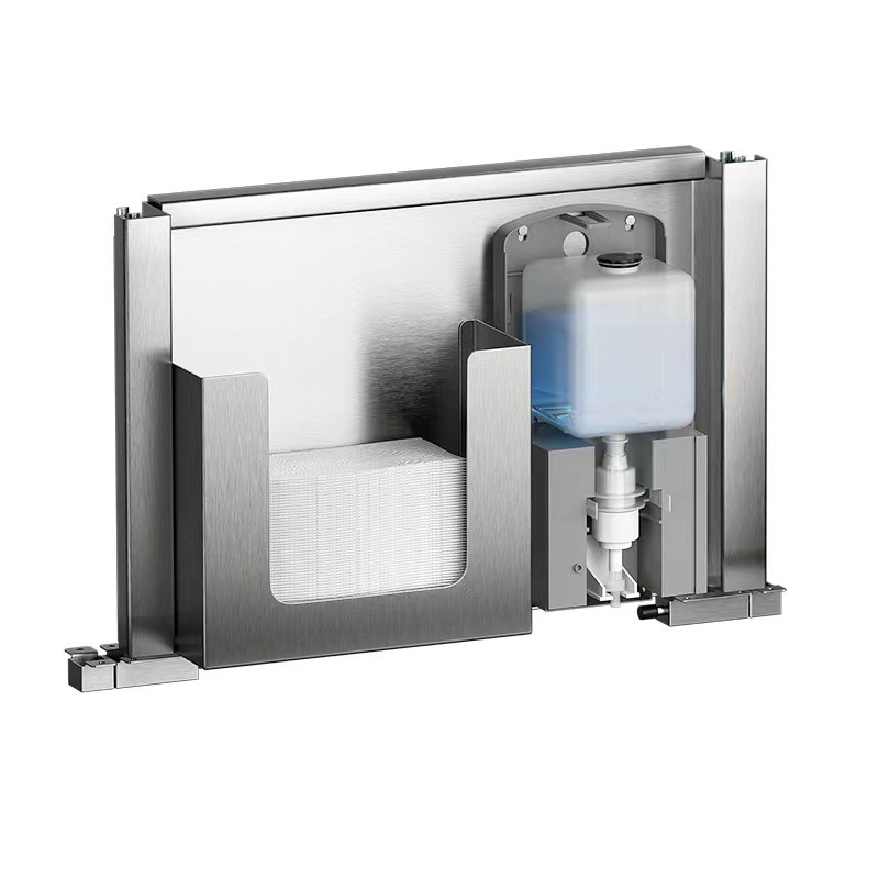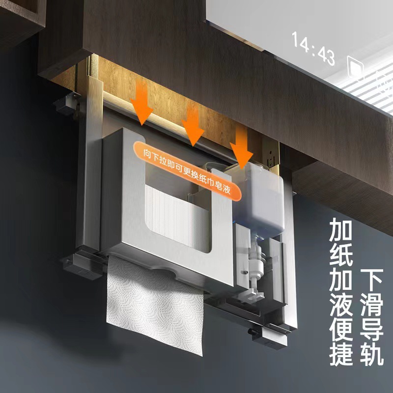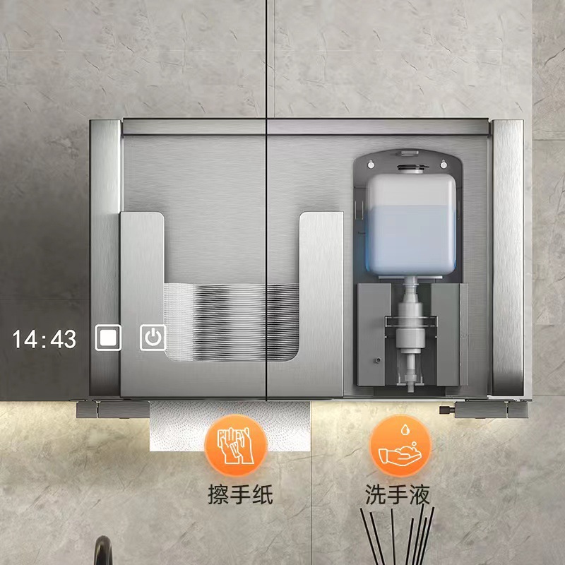 沃尔德不锈钢镜后纸巾盒皂液器暗藏镜柜隐藏式不锈钢皂液纸巾盒家