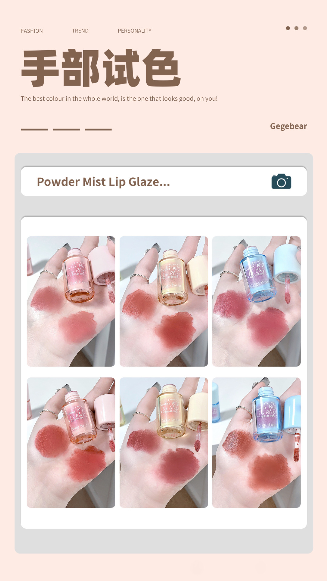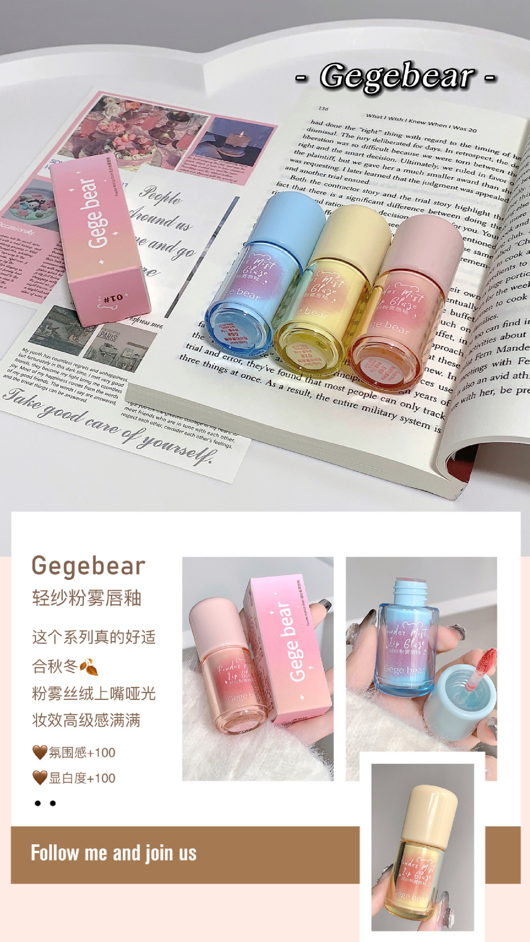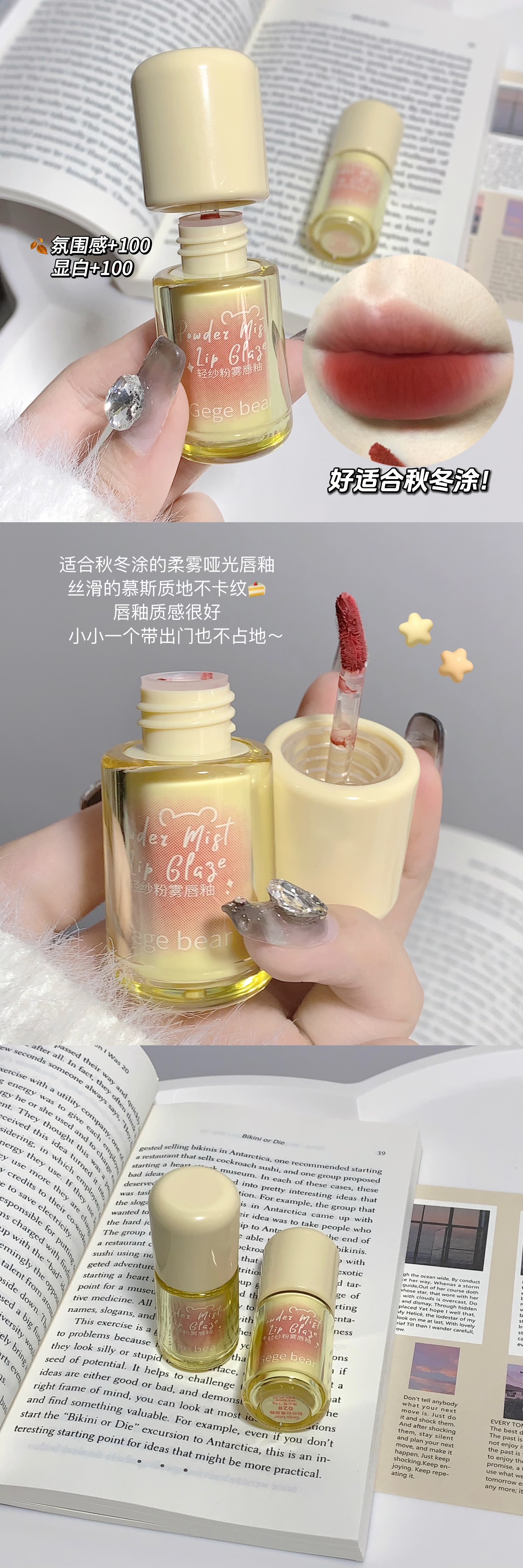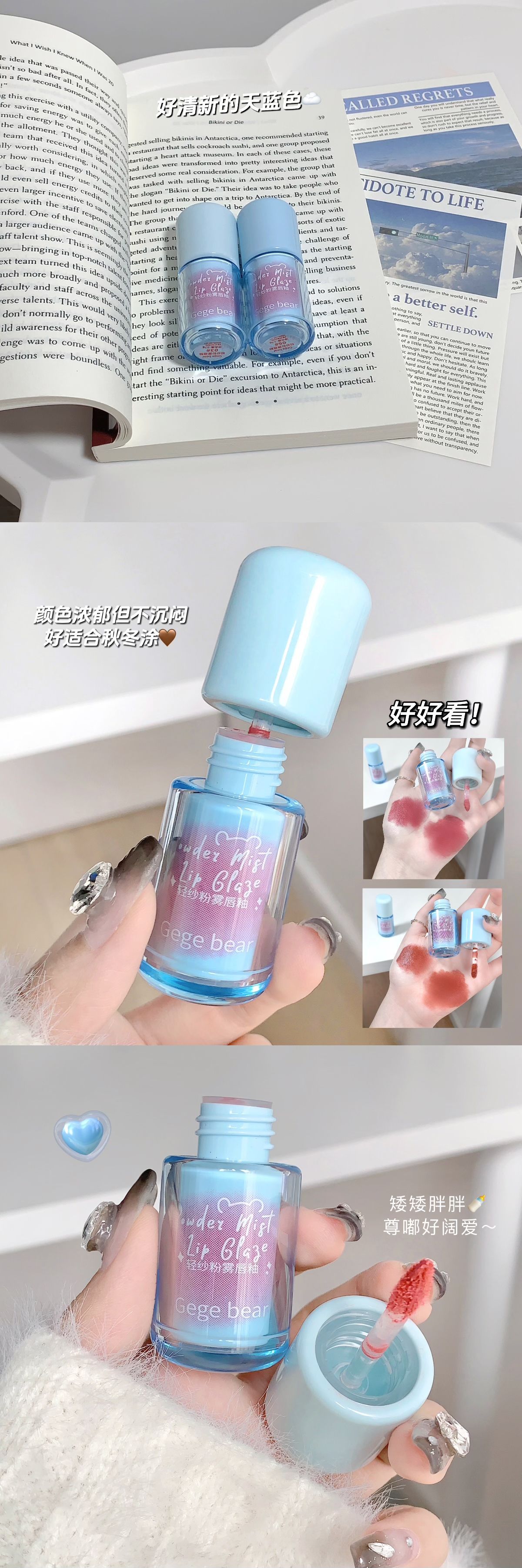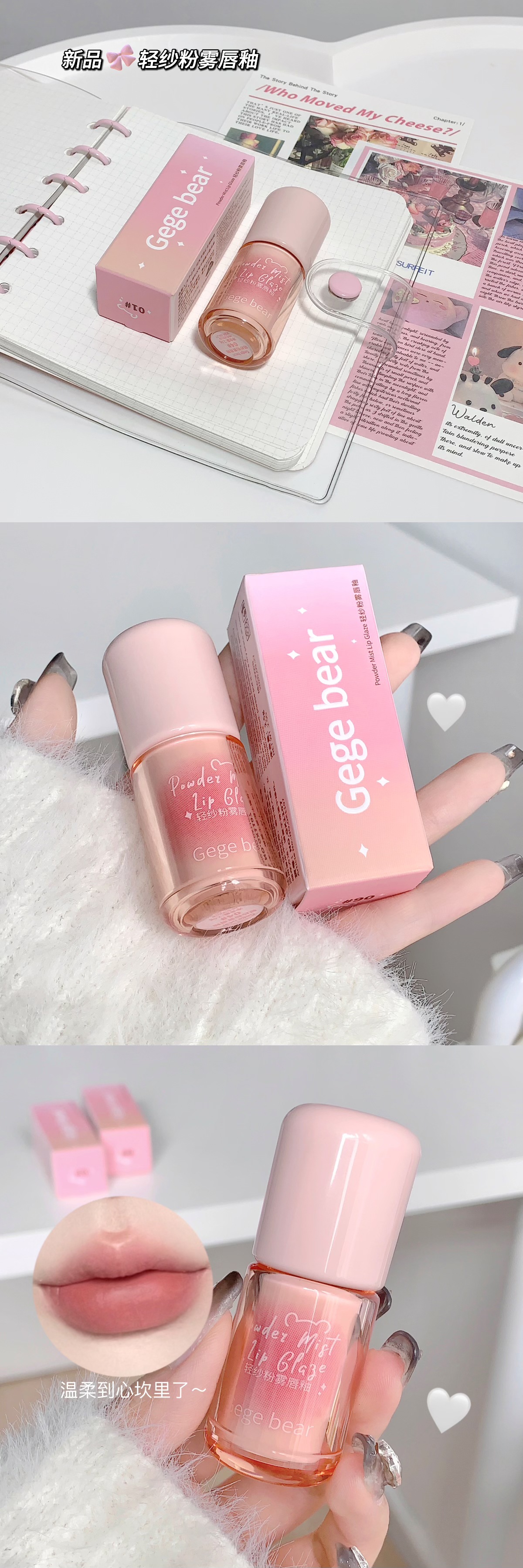 Gege bear轻纱粉雾唇釉 丝绒哑光雾面显色口红彩妆唇彩跨境化妆品