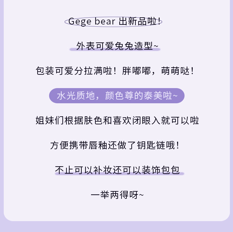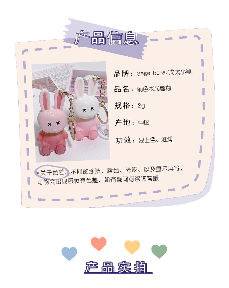 Gege bear萌色水光唇釉 滋润保湿镜面嘟嘟唇口红跨境彩妆化妆品
