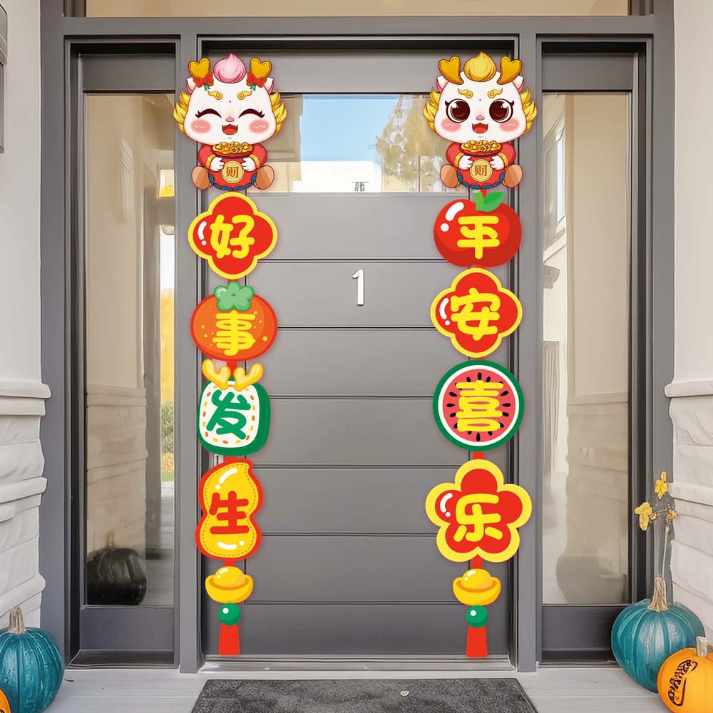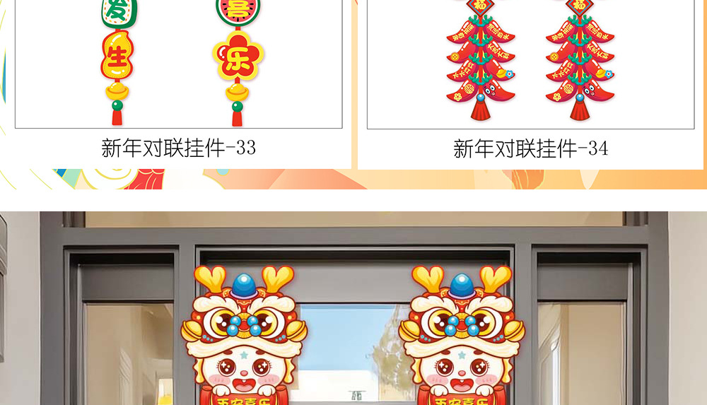 新年春节装饰对联 2025元旦创意纸质卡通对联家居春节气氛装饰品