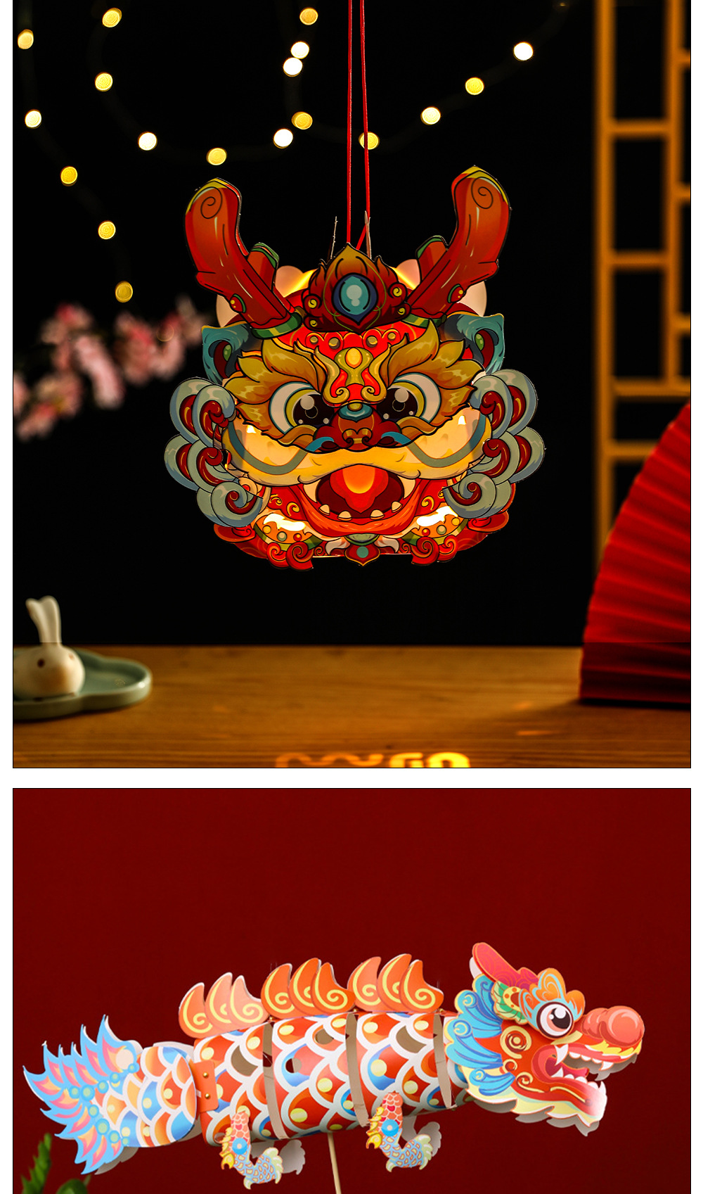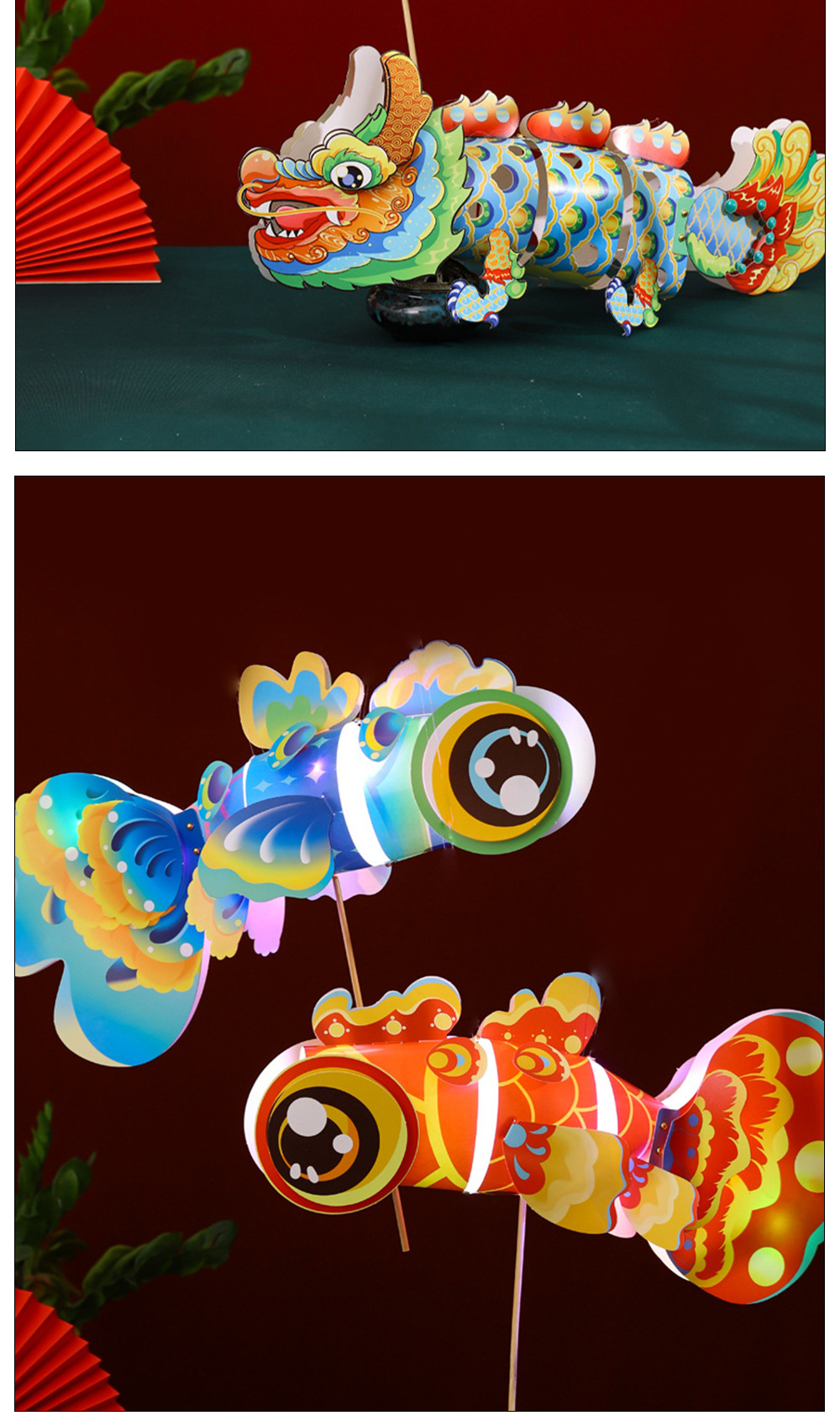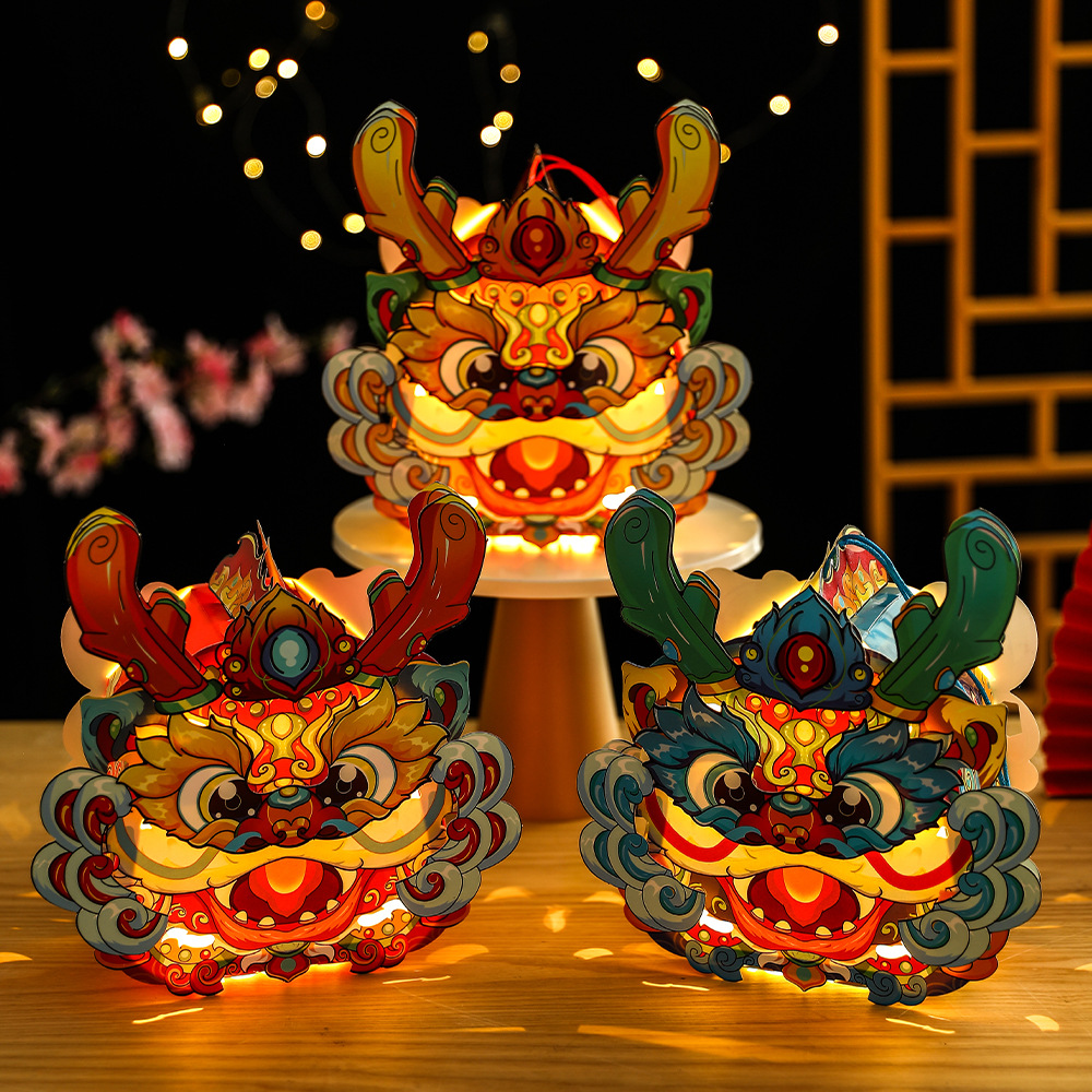 新款春节装饰手提发光国潮风灯笼新年创意鲤鱼龙舞狮儿童手提灯笼