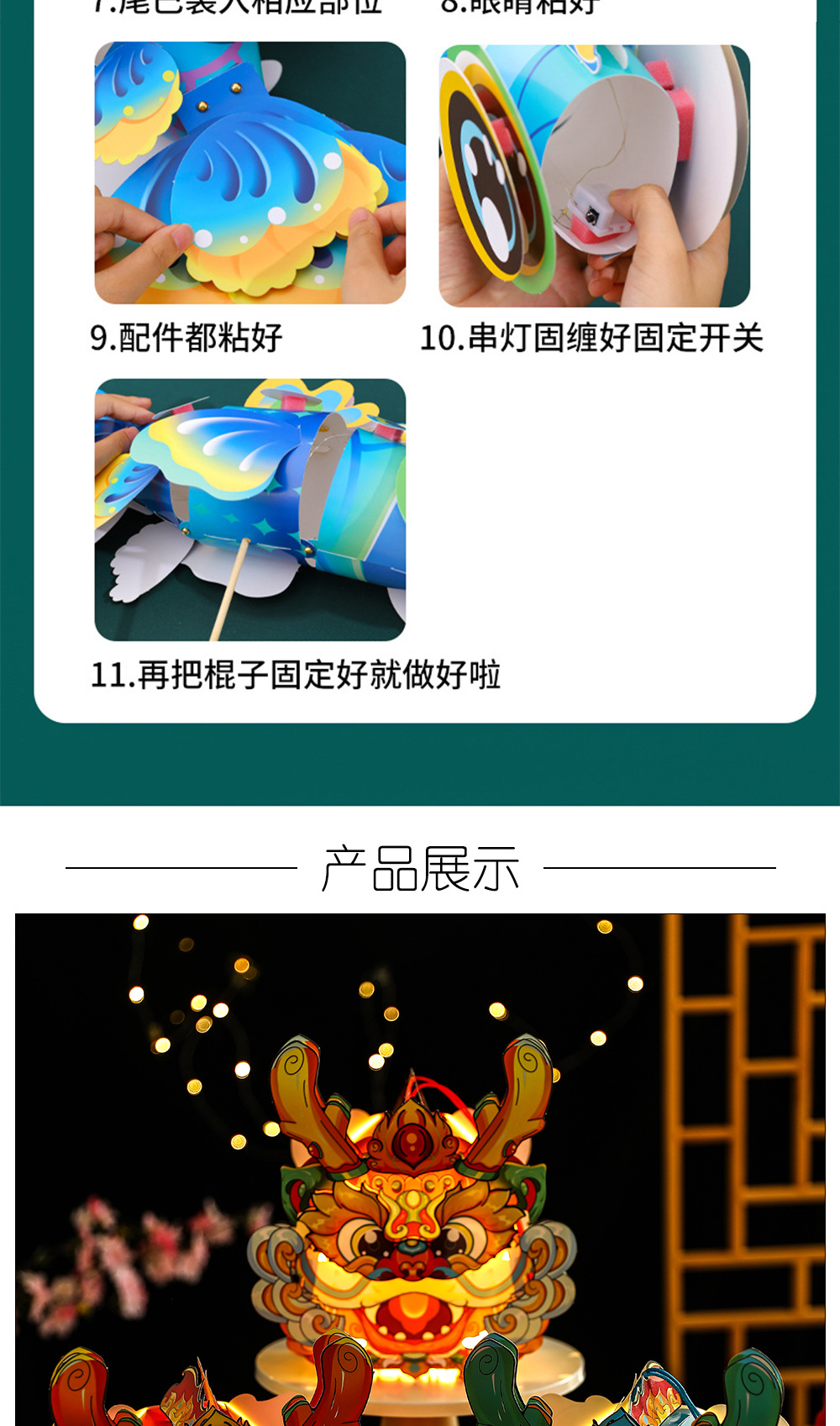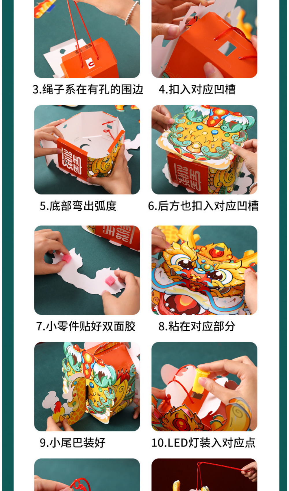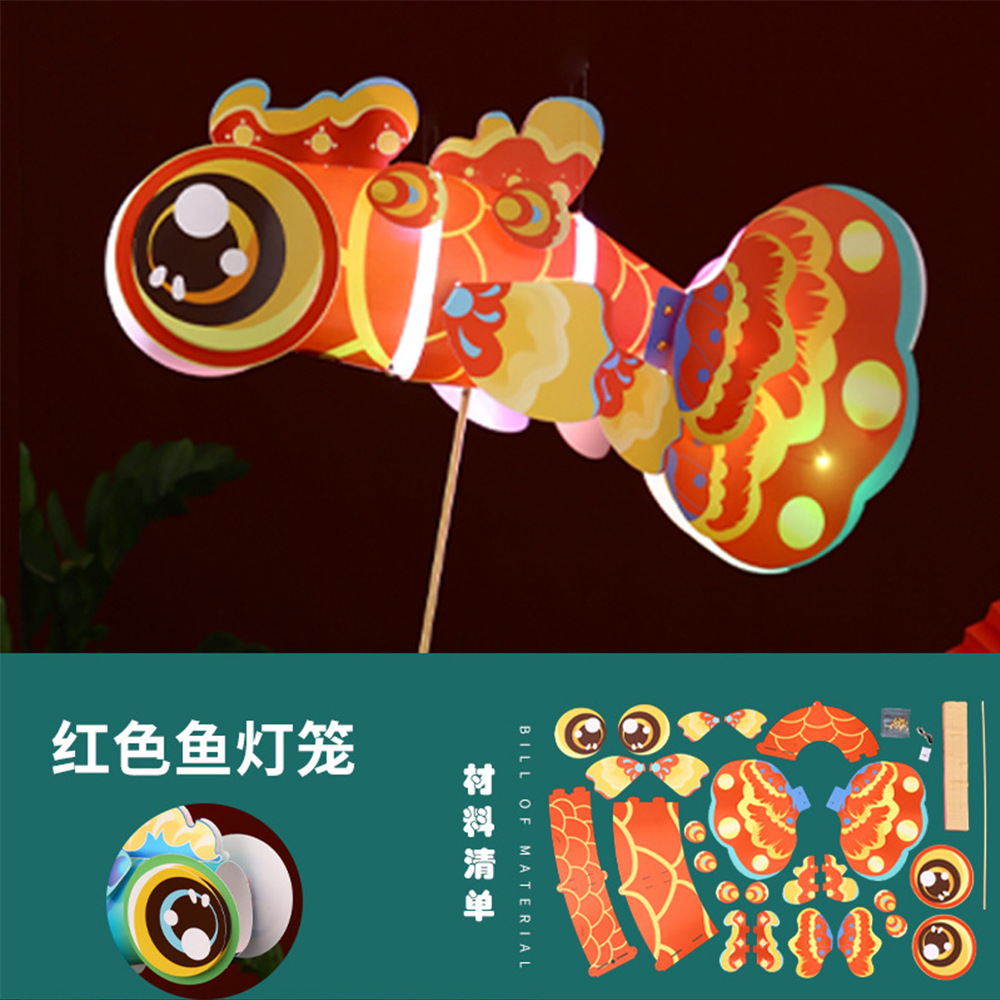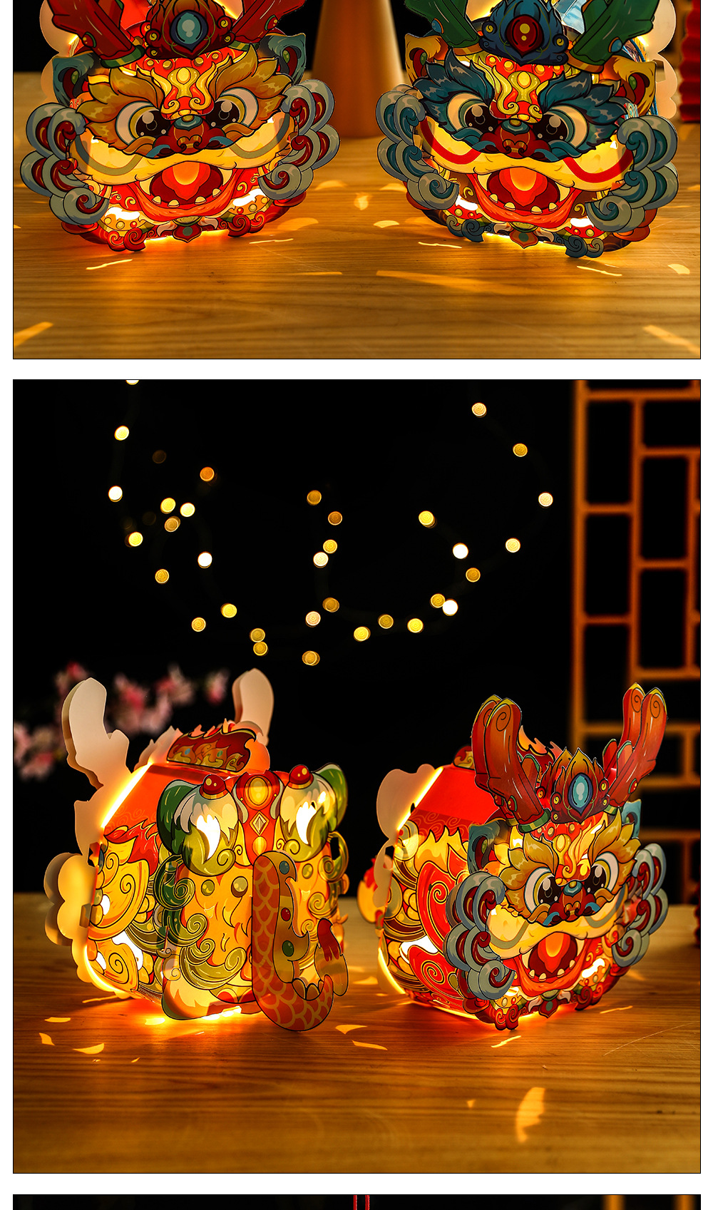 新款春节装饰手提发光国潮风灯笼新年创意鲤鱼龙舞狮儿童手提灯笼