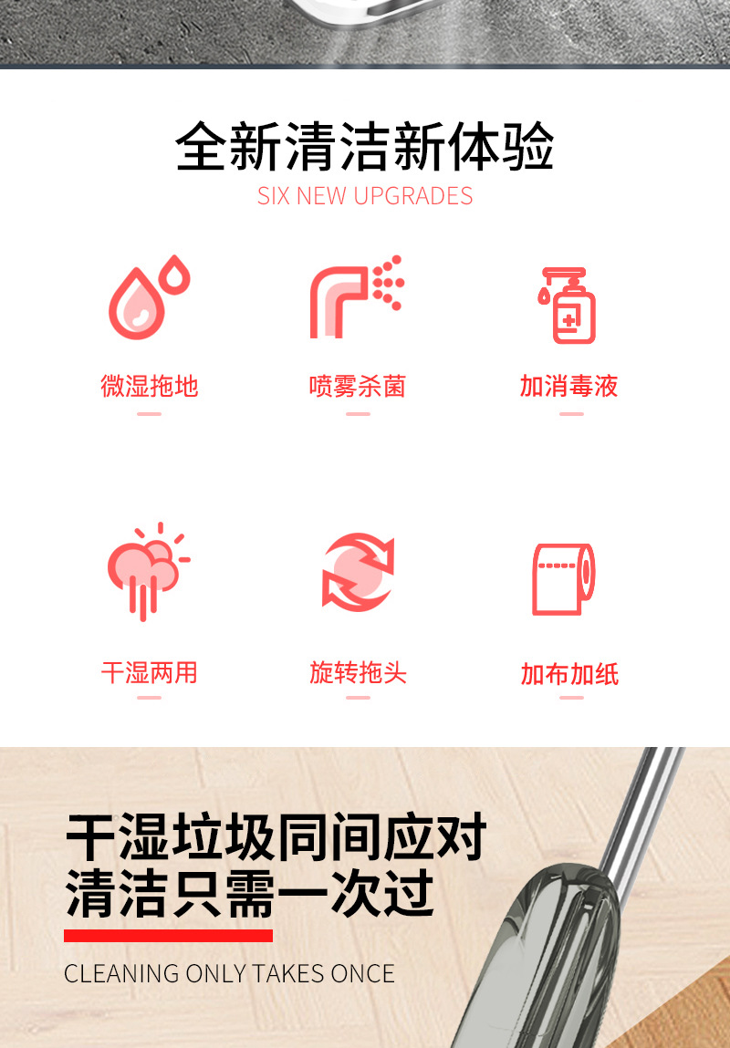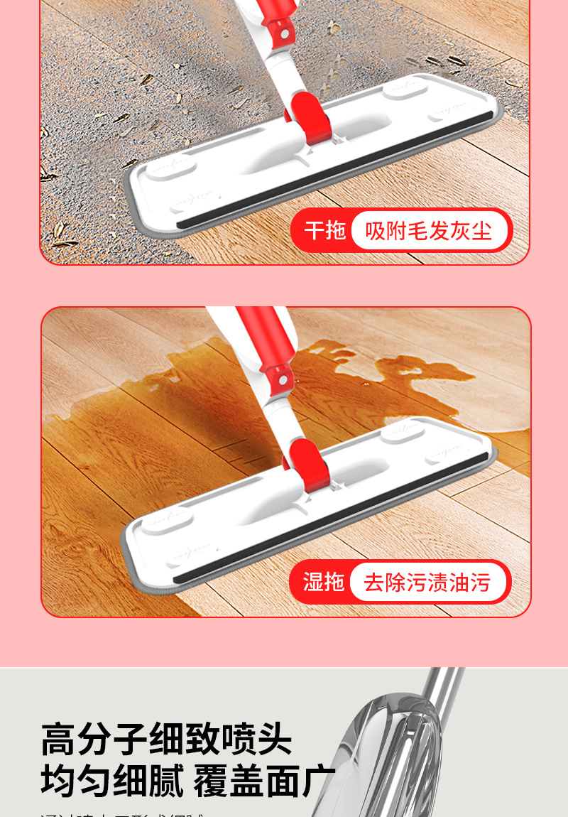 喷水拖把 家用清洁干湿两用42CM大号面板喷雾拖把