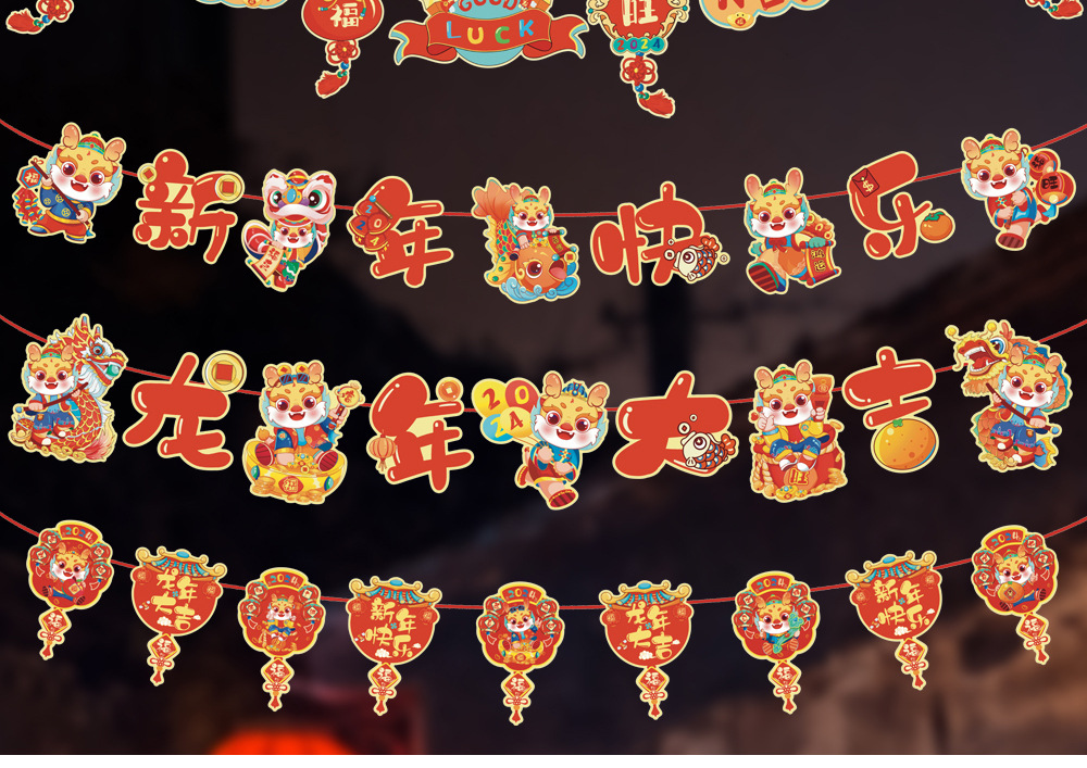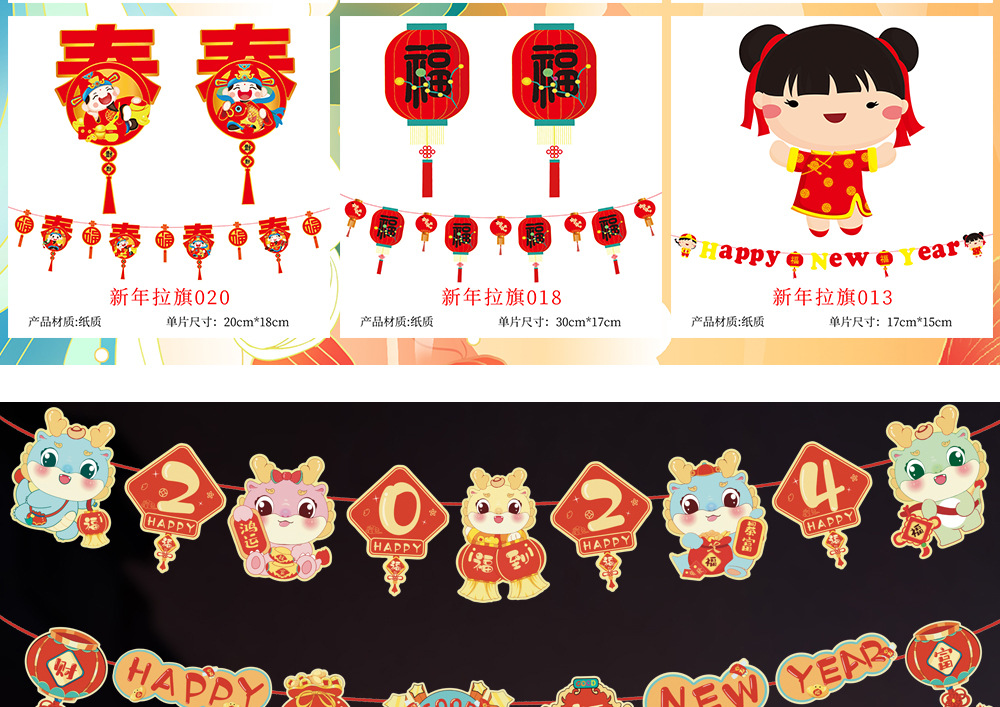 2025新年元旦彩旗春节新款拉旗新款新年商场超市门店装饰布置拉旗