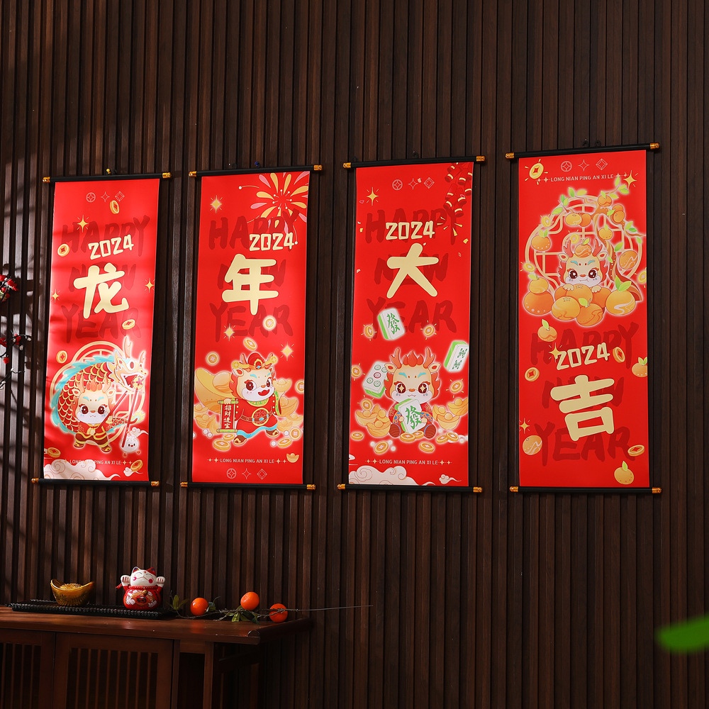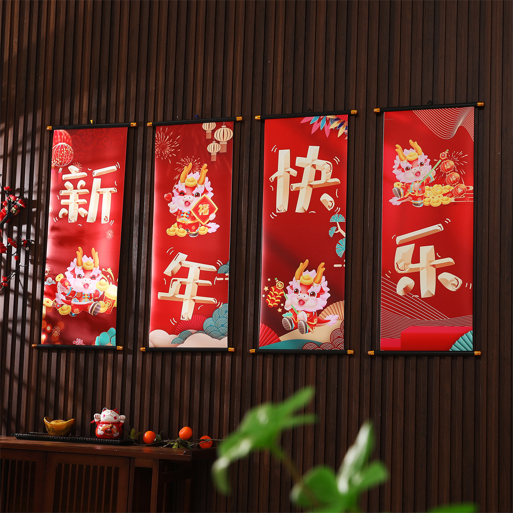 2025新年春节新年元旦装饰用品店铺氛围布置装饰卷轴创意春联挂件