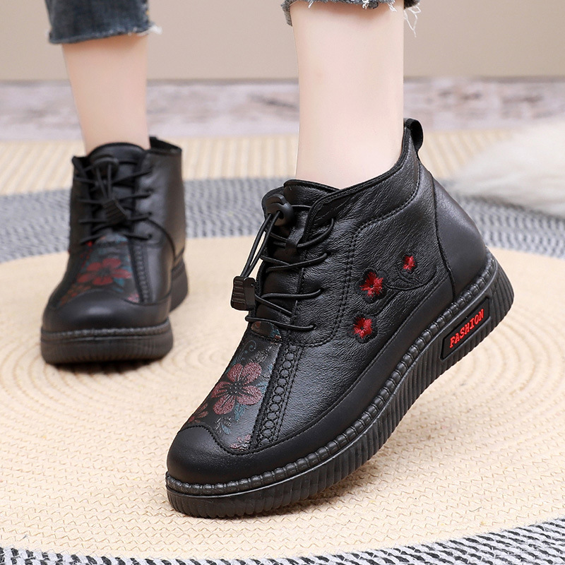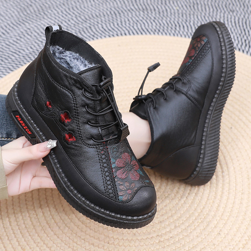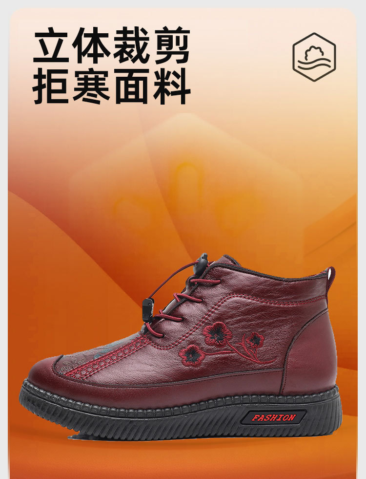 2023秋冬新款中老年妈妈鞋加绒保暖高筒棉鞋防滑软底雪地靴女