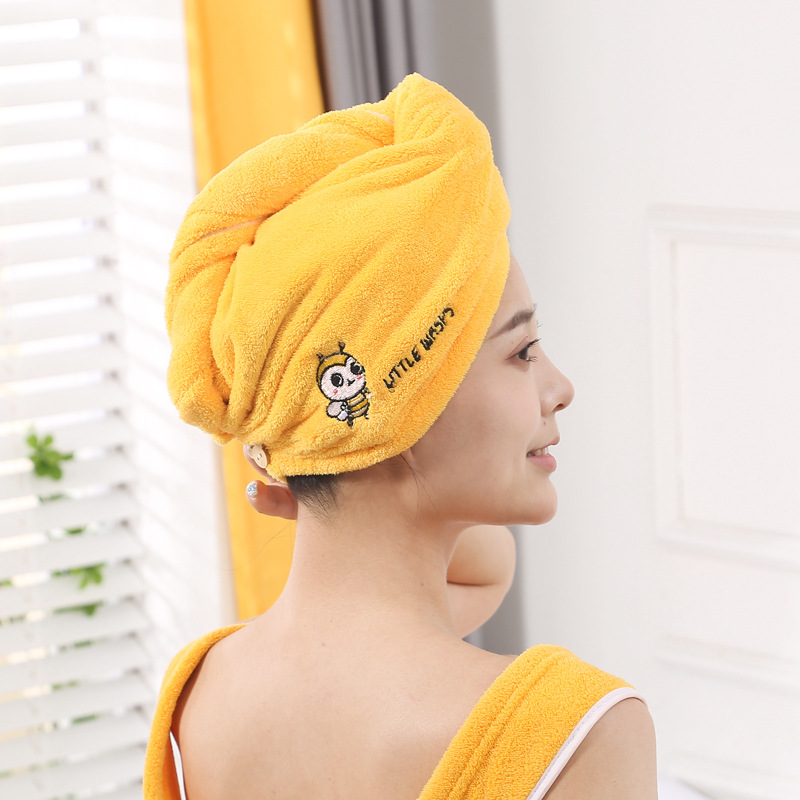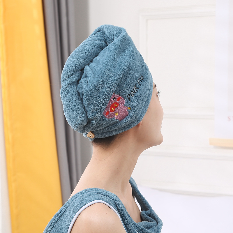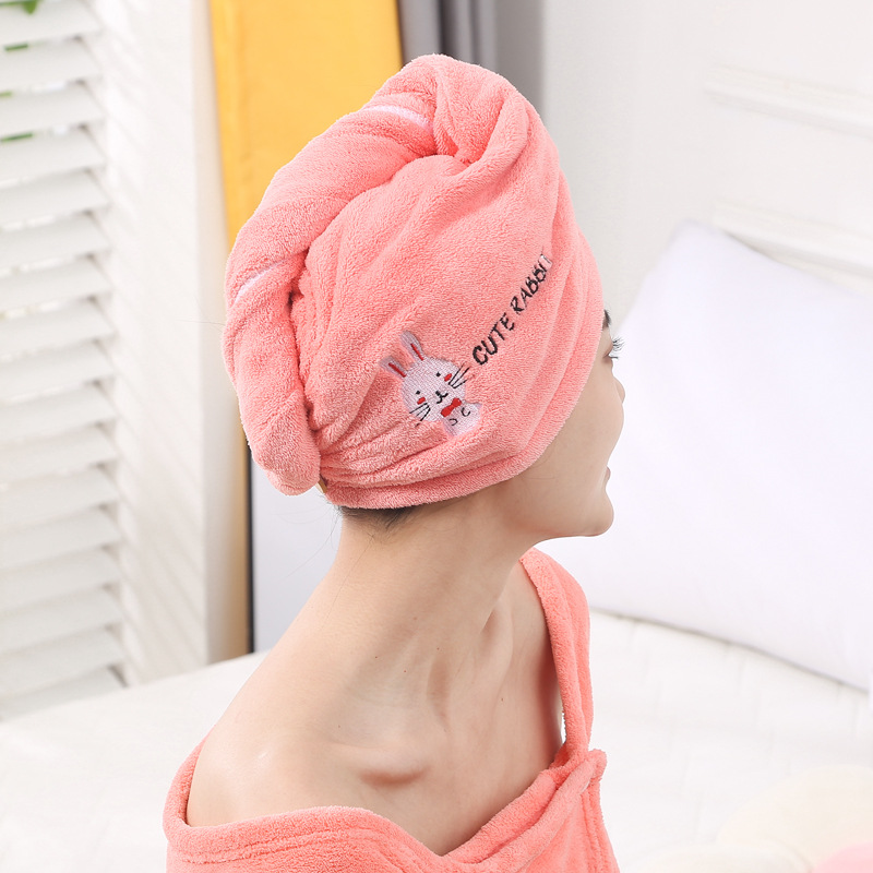 珊瑚绒绣花干发帽浴帽包头巾 柔软透气吸水加厚擦头毛巾批发