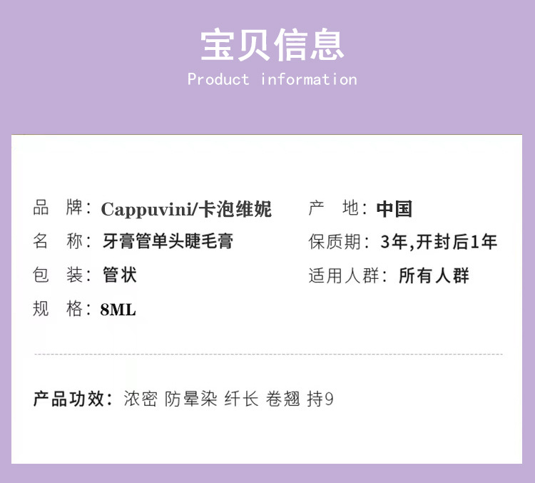 Cappuvin纤长密翘睫毛膏自然纤长卷翘眼睫毛膏彩妆跨境美妆化妆品