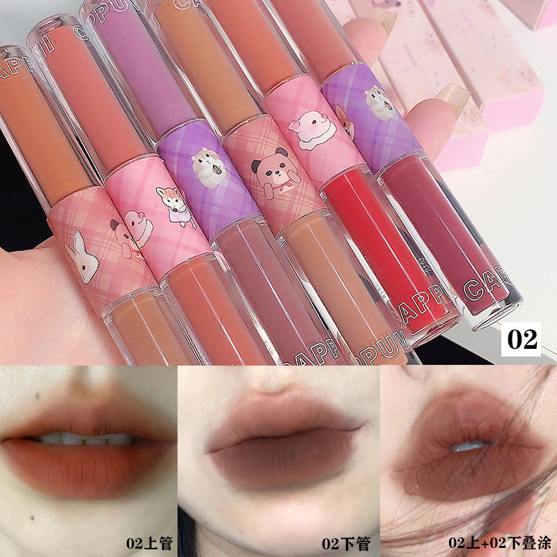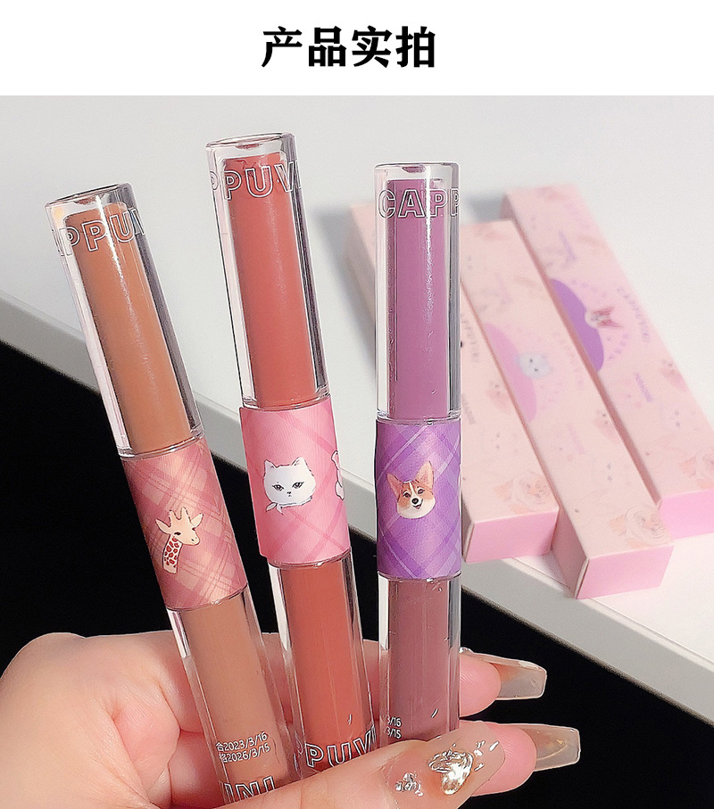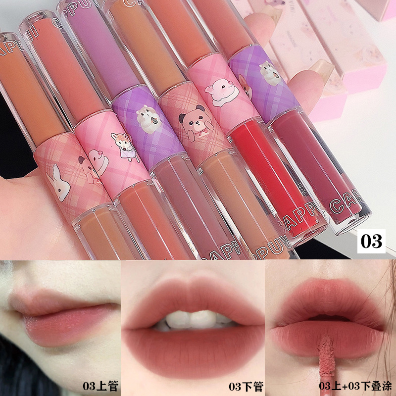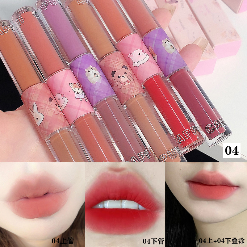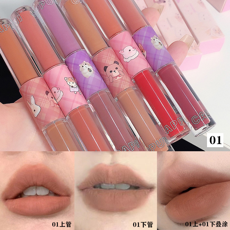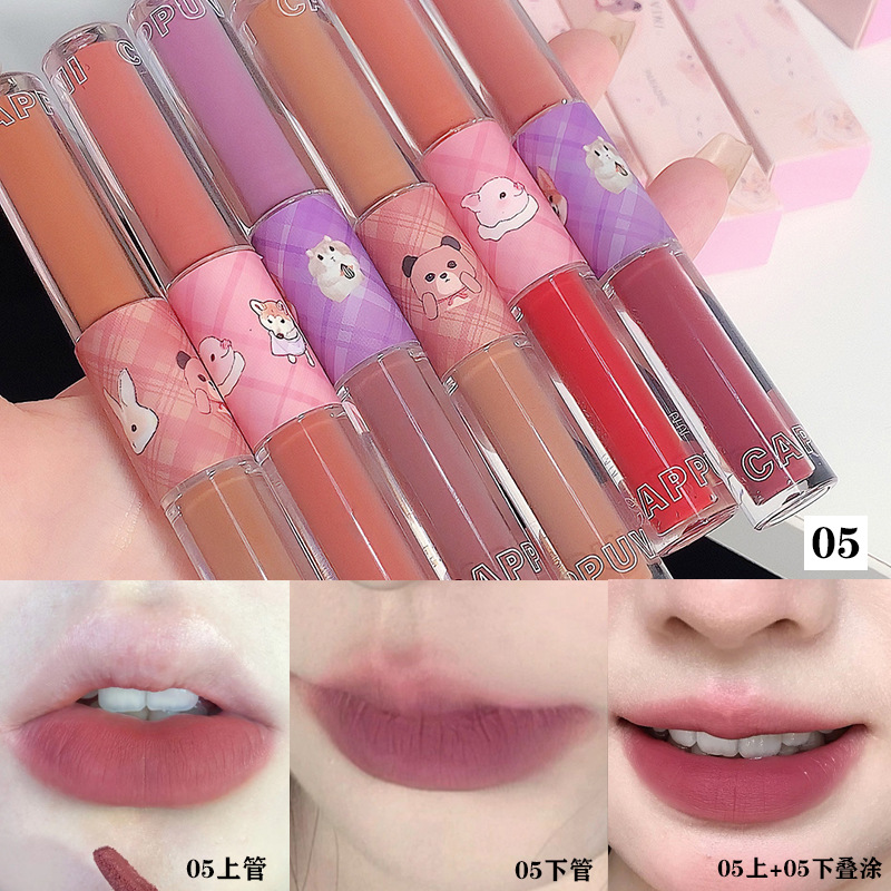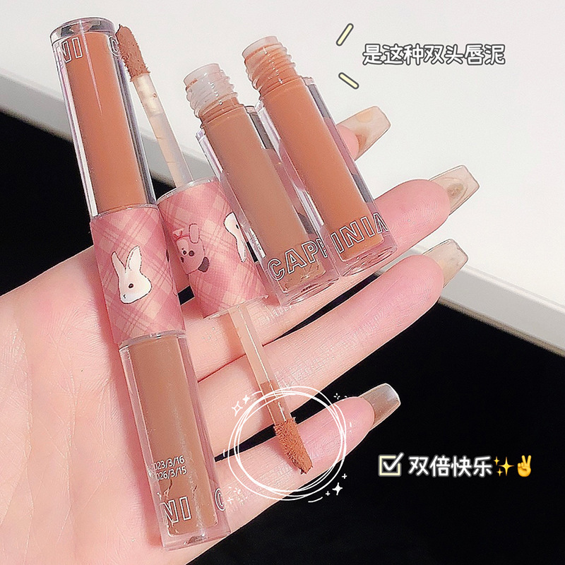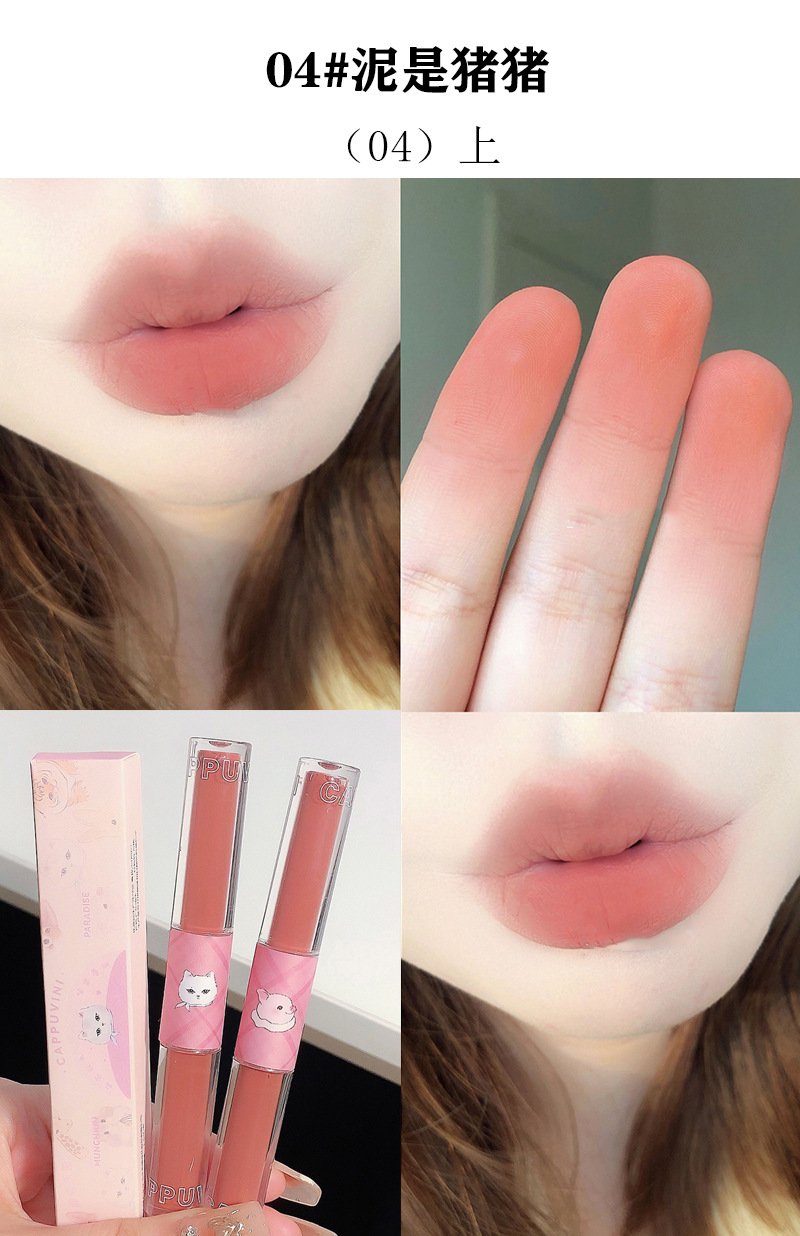 Cappuvini双头酪酪泥哑雾唇釉 显白哑光雾面丝绒卡泡维妮唇泥