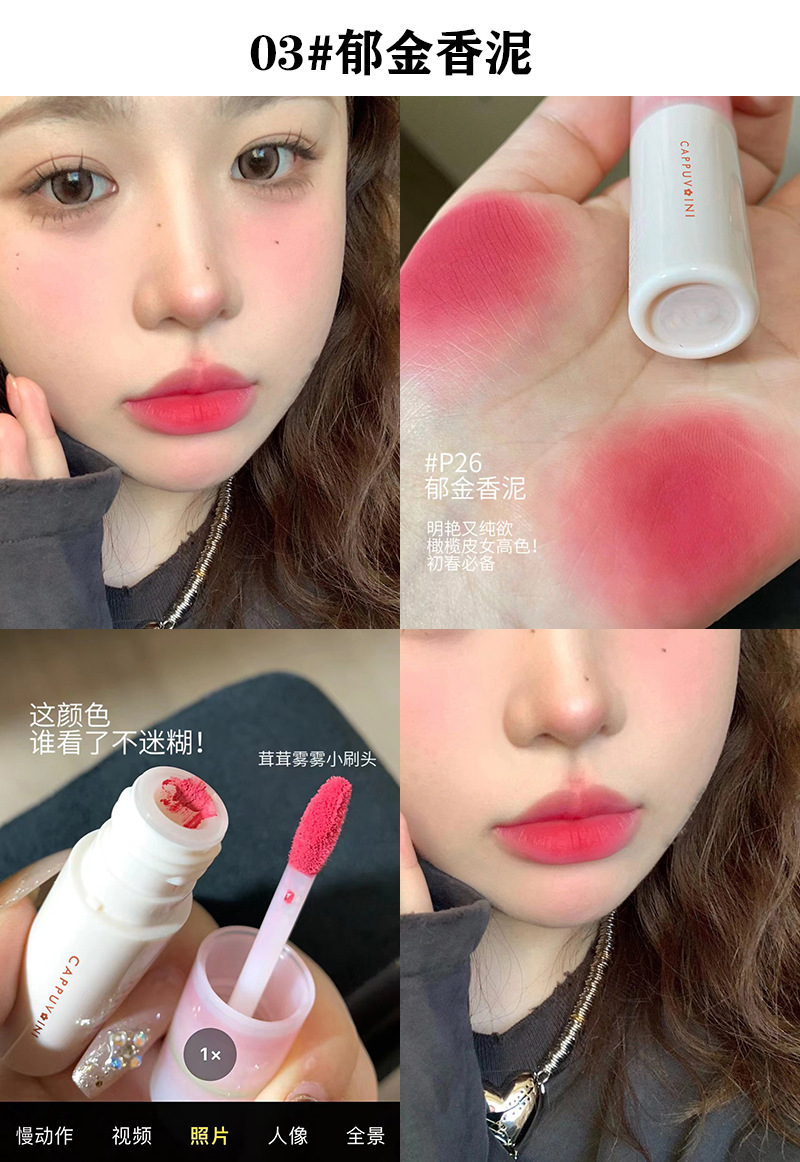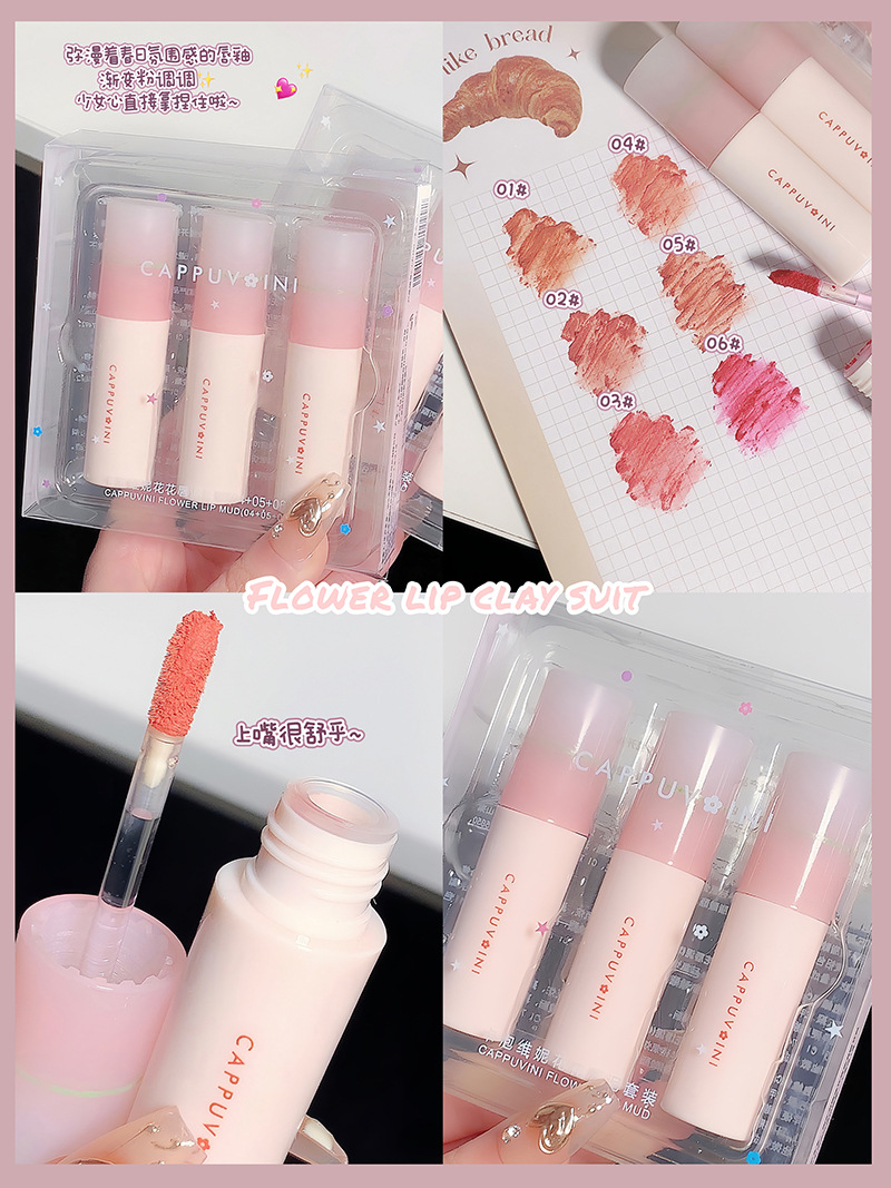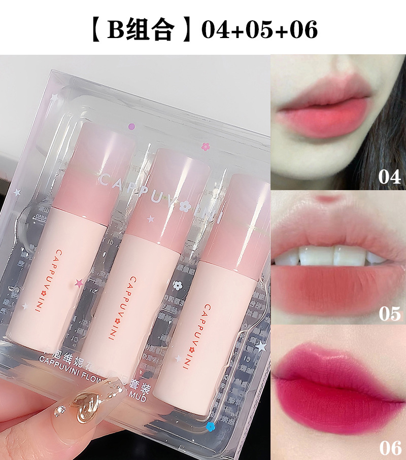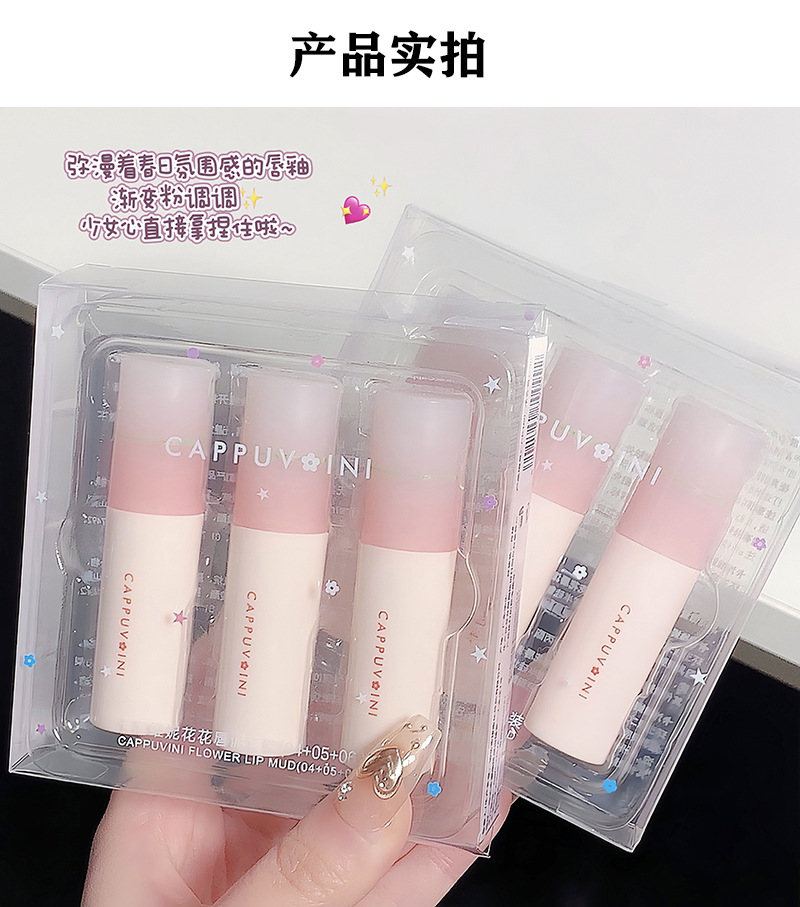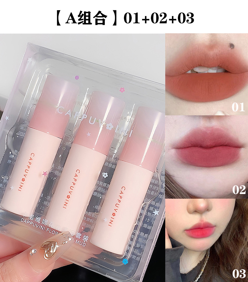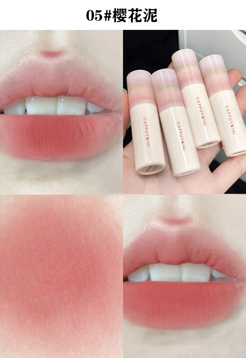 Cappuvini花花唇泥 哑光丝绒口红奶茶色唇釉套盒彩妆跨境美妆