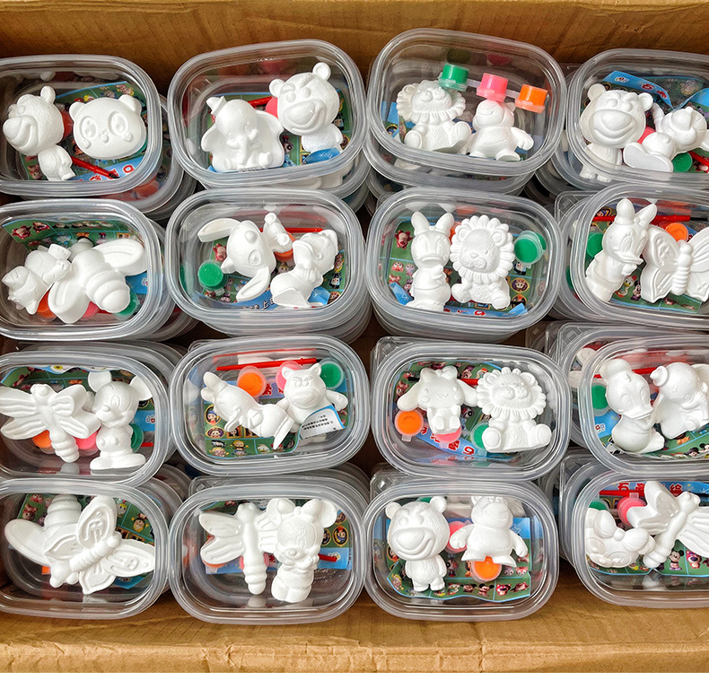 卡通石膏娃娃涂色白胚画迷你儿童手工diy涂鸦彩绘颜料套装地摊批