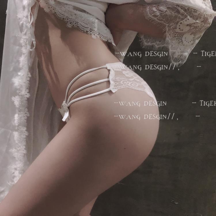 日系偷心蕾丝内裤女士性感舒适绑带超薄低腰透气纯棉裆火辣三角裤