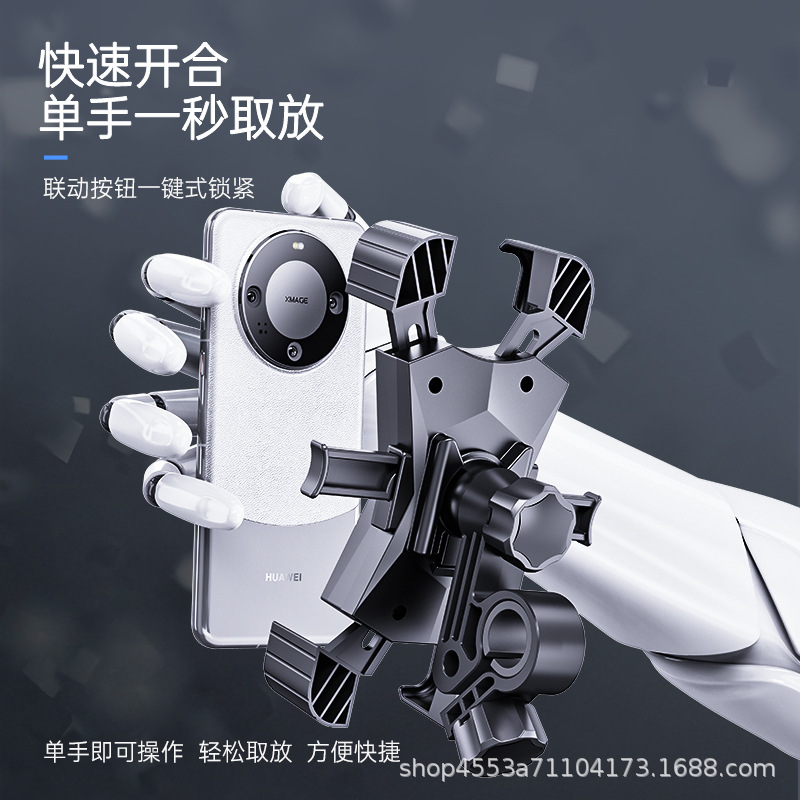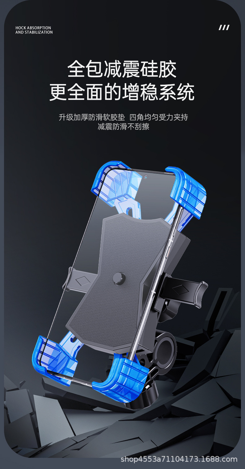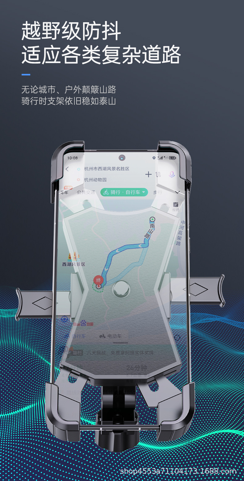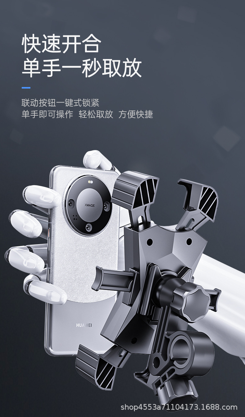 新款防抖动摩托车导航手机支架电动车山地车四爪自动锁手机架批发