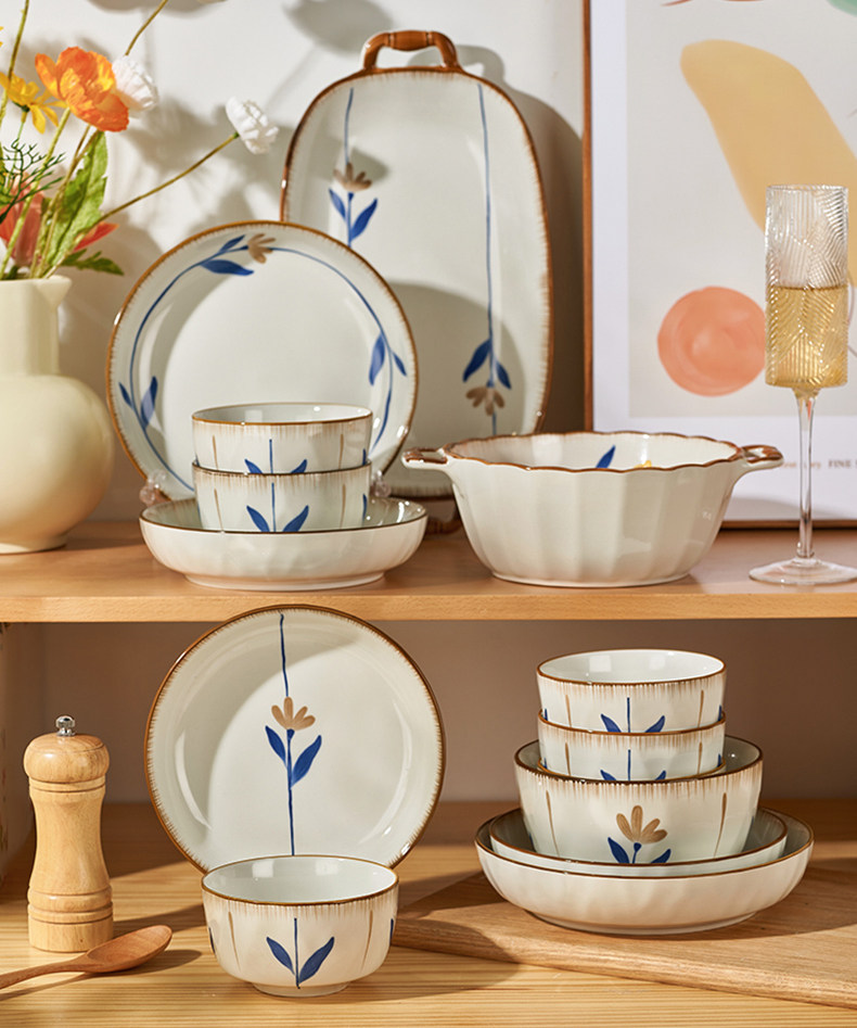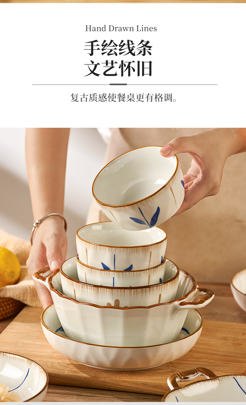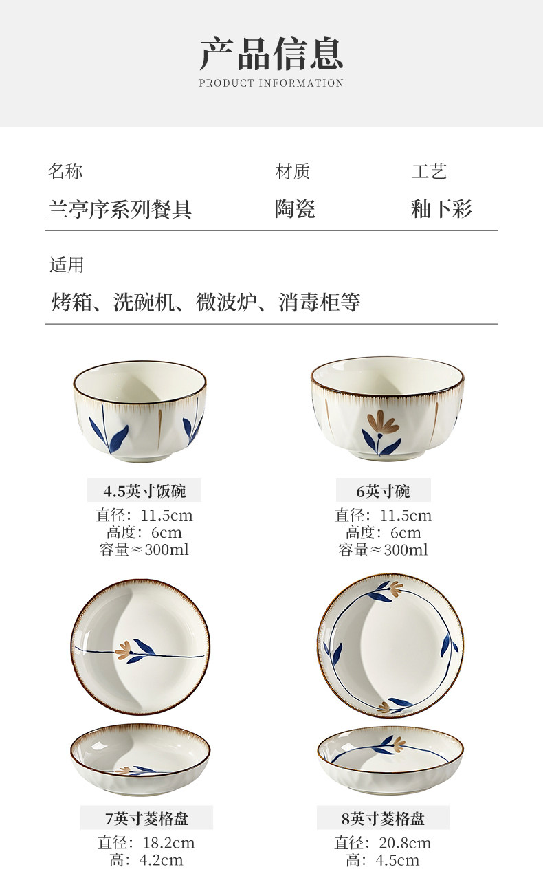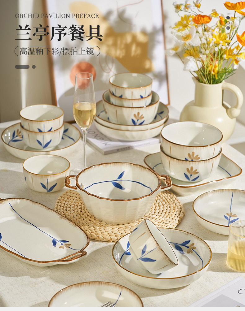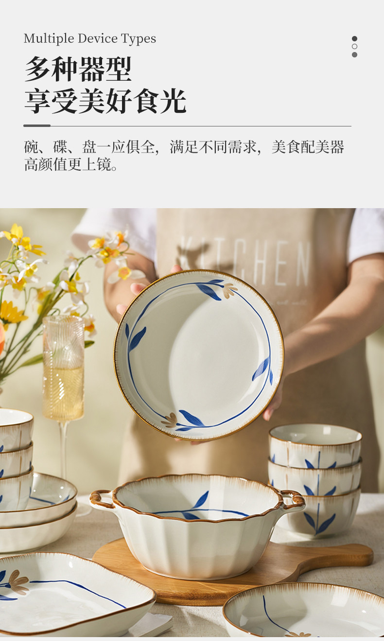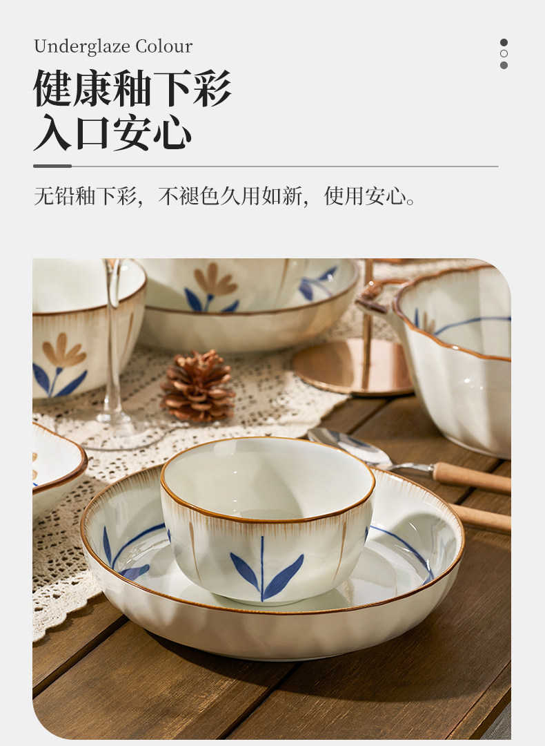 餐具釉下彩碗碟套装家用2023新款陶瓷餐具日式碗筷盘子乔迁感碗具