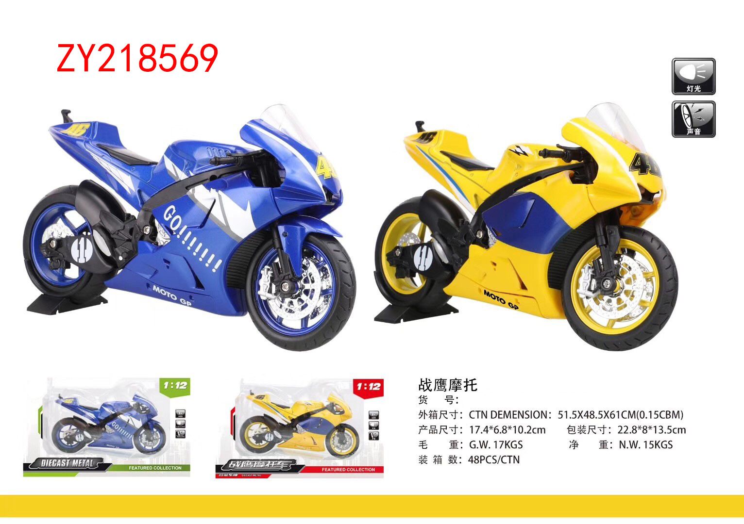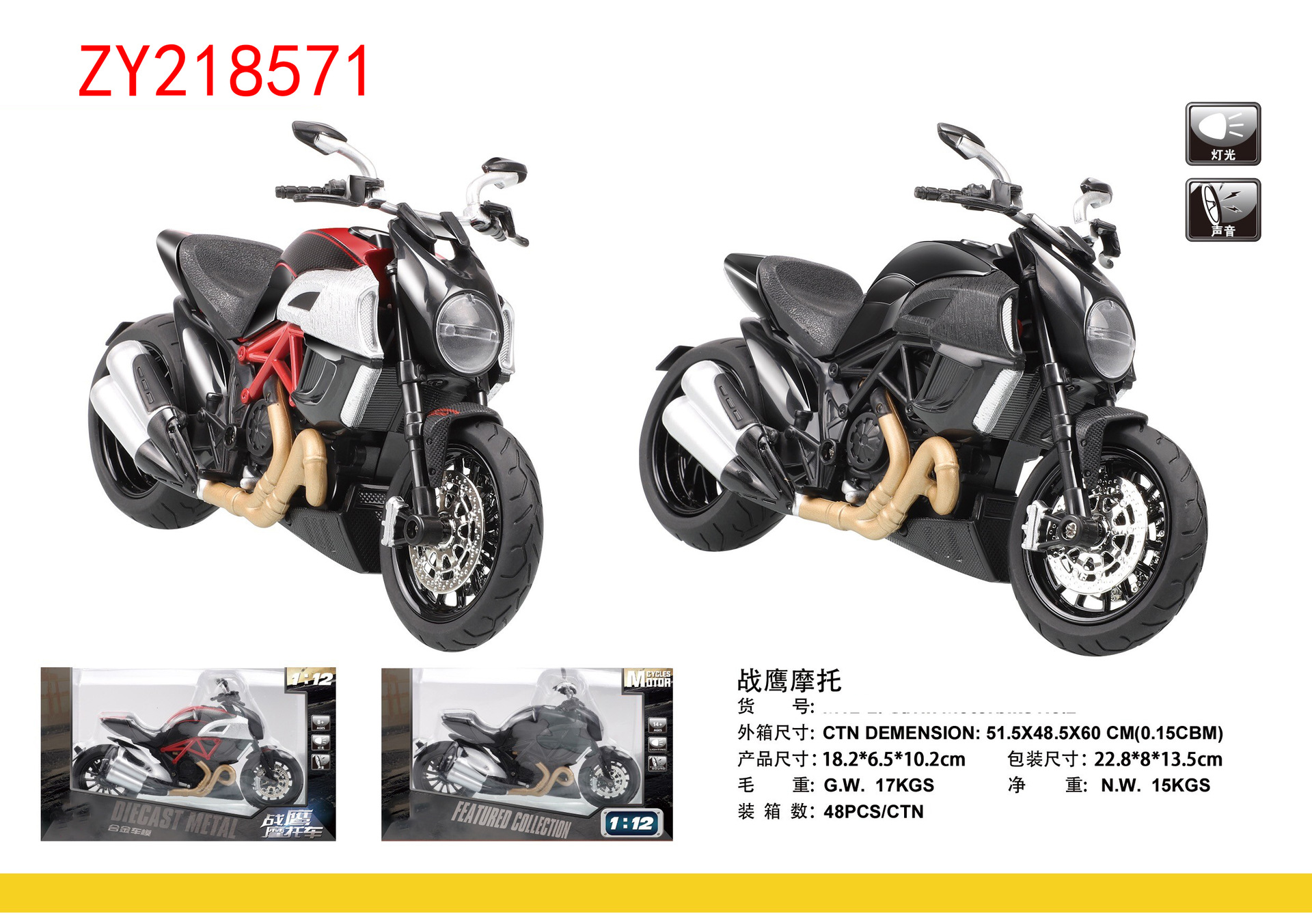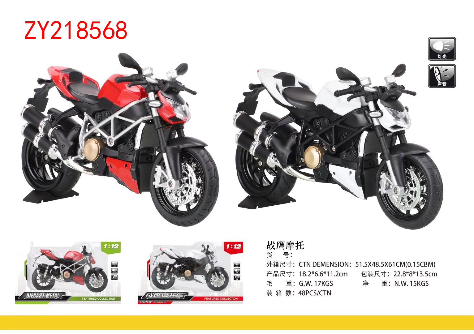 1:12合金战鹰摩托模型声光潮玩收藏摆件男孩热销Gavin Motorcycl