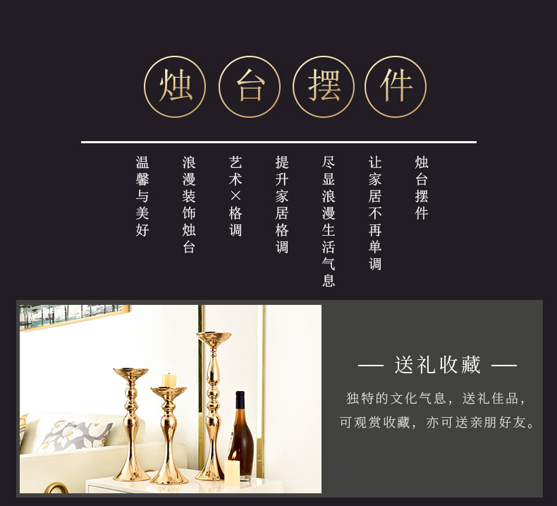 美式创意烛台摆件家居浪漫烛光晚餐餐桌铁艺装饰婚庆道具花器路引