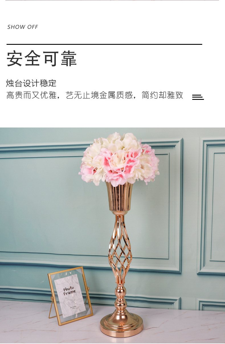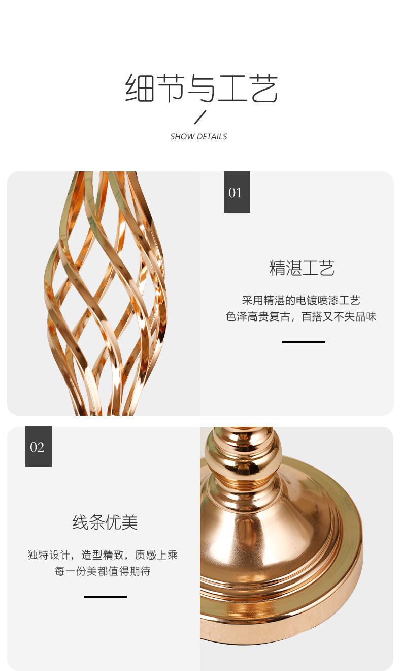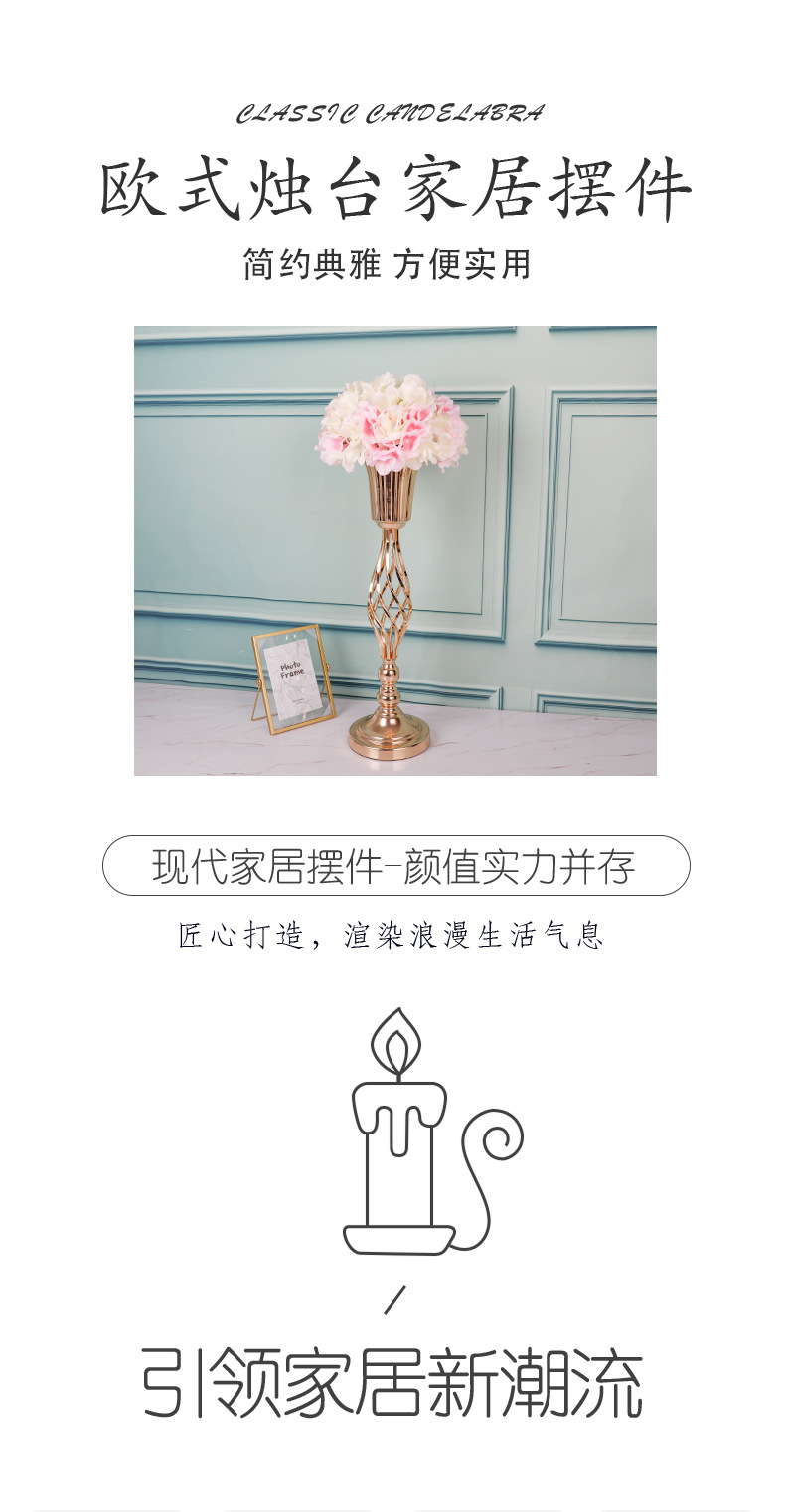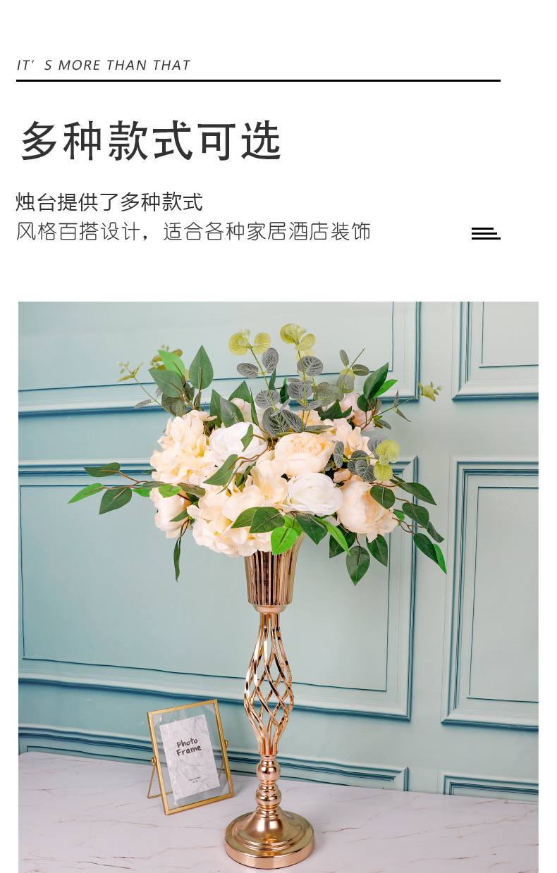 婚庆道具麻花路引花瓶家居插花摆件酒店婚礼金色电镀铁艺烛台批发