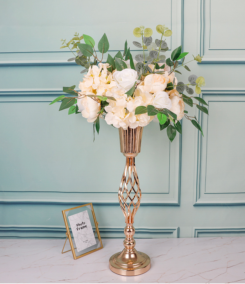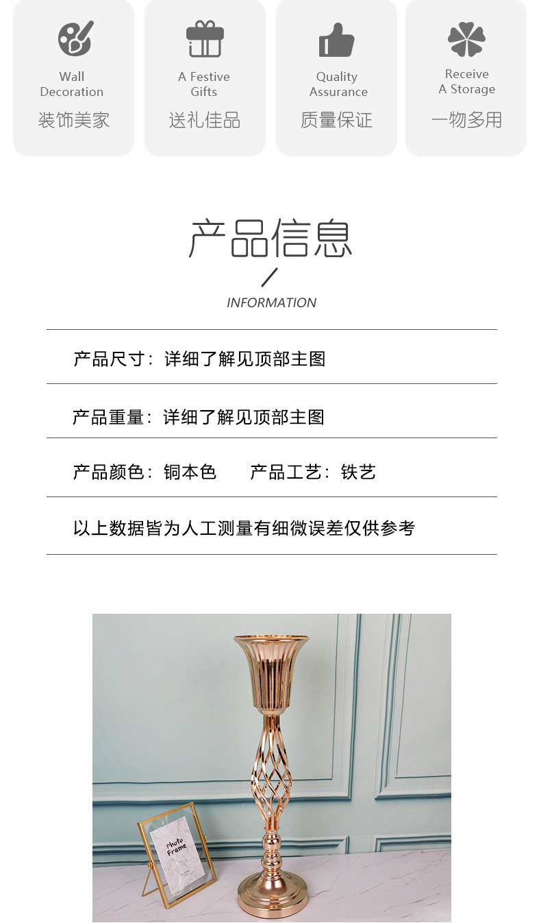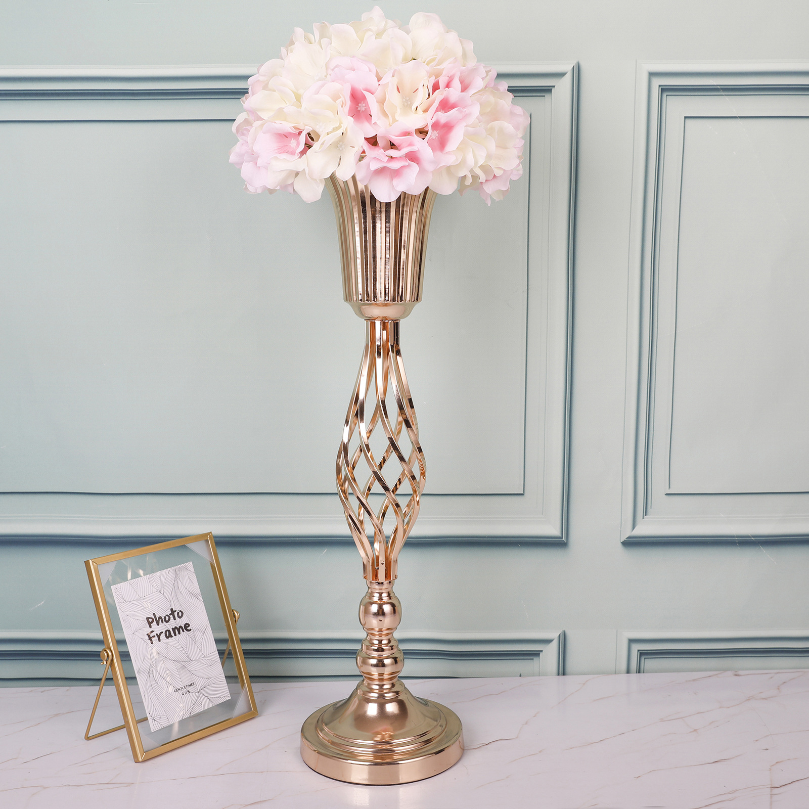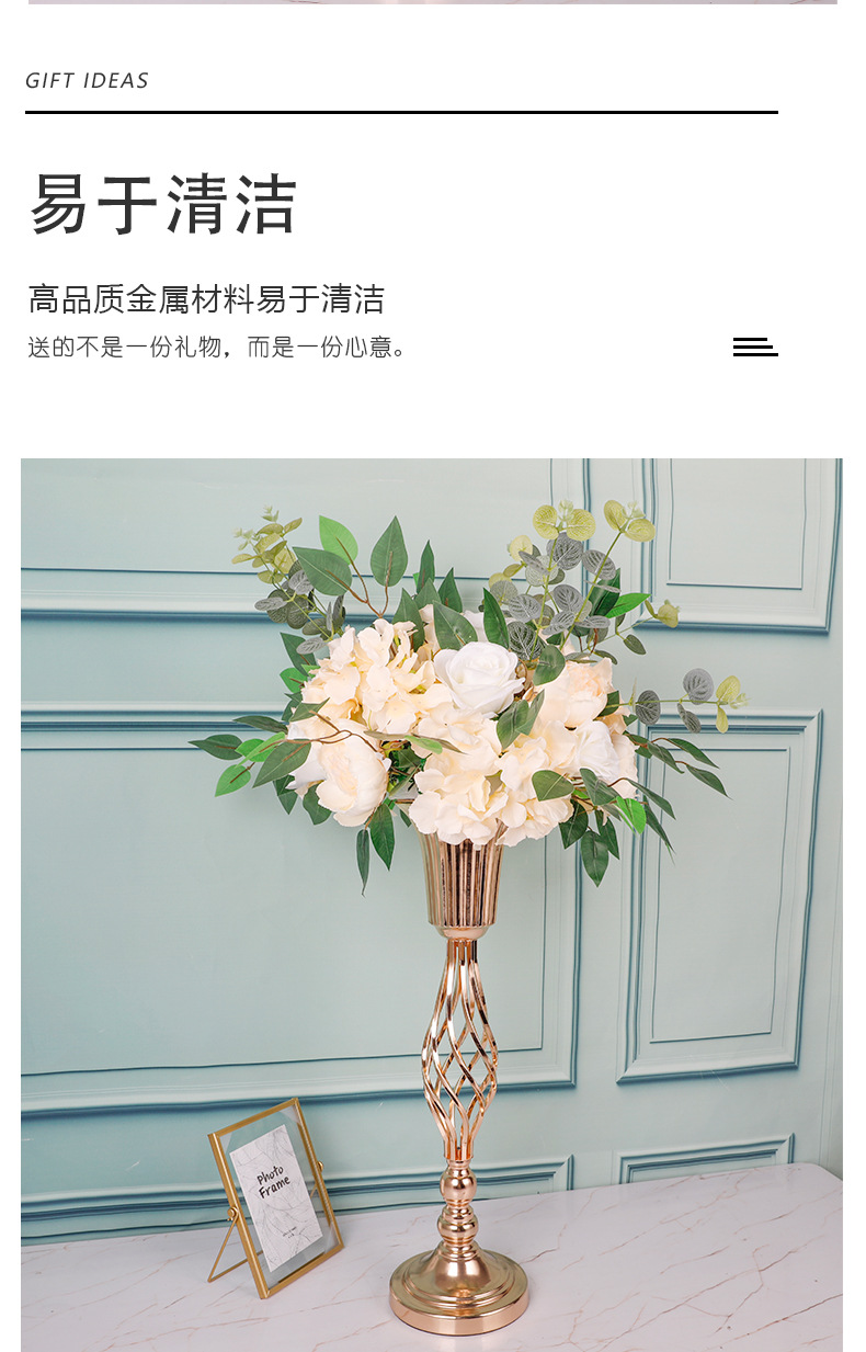 婚庆道具麻花路引花瓶家居插花摆件酒店婚礼金色电镀铁艺烛台批发