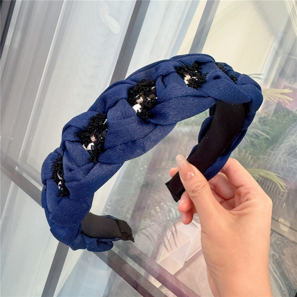 B307韩国缎面小香风编织发箍棋盘格法式复古ins头箍宽边高颅顶发