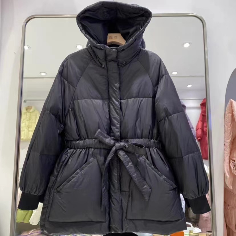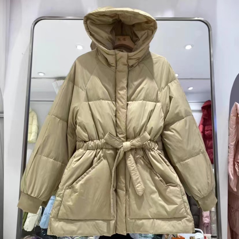 2023新羽绒服女中长款加厚连帽大毛领收腰显瘦冬季韩版白鸭绒外套