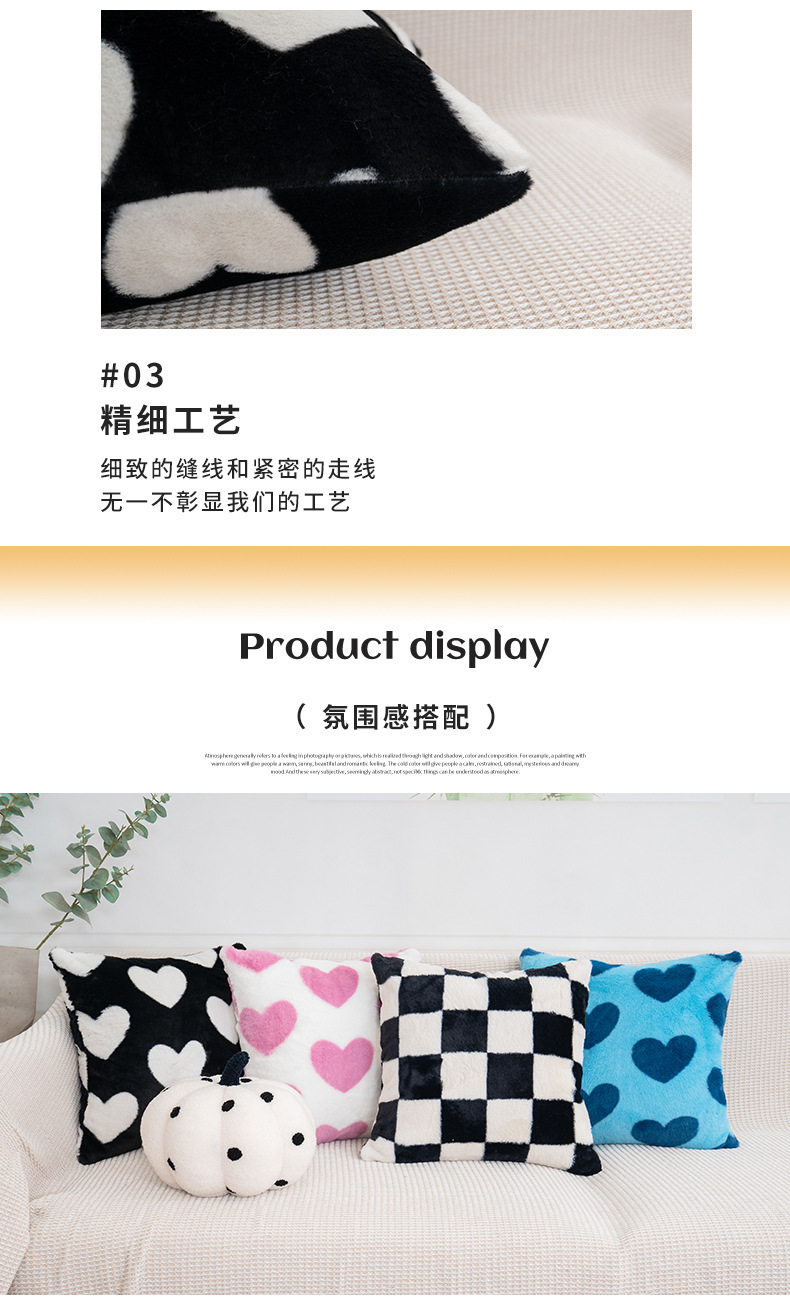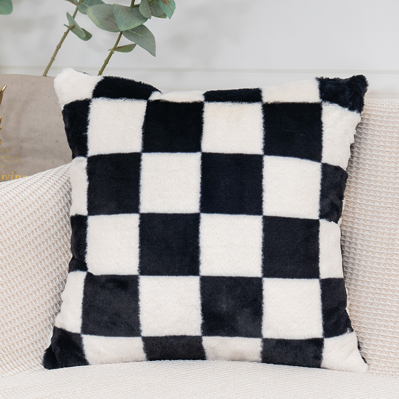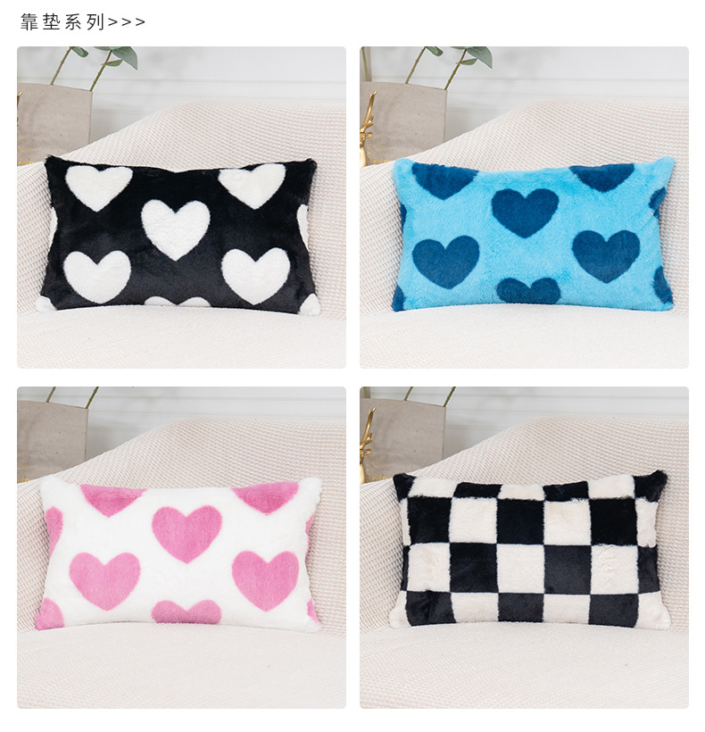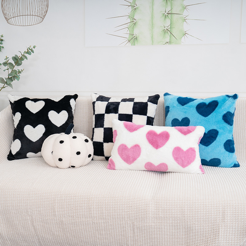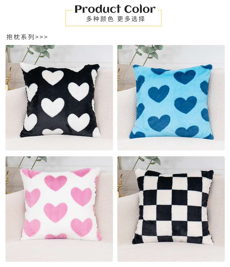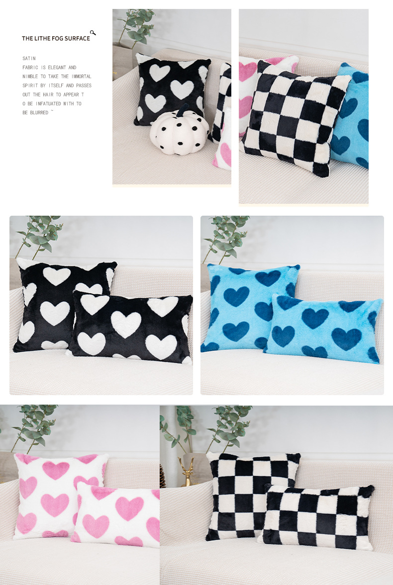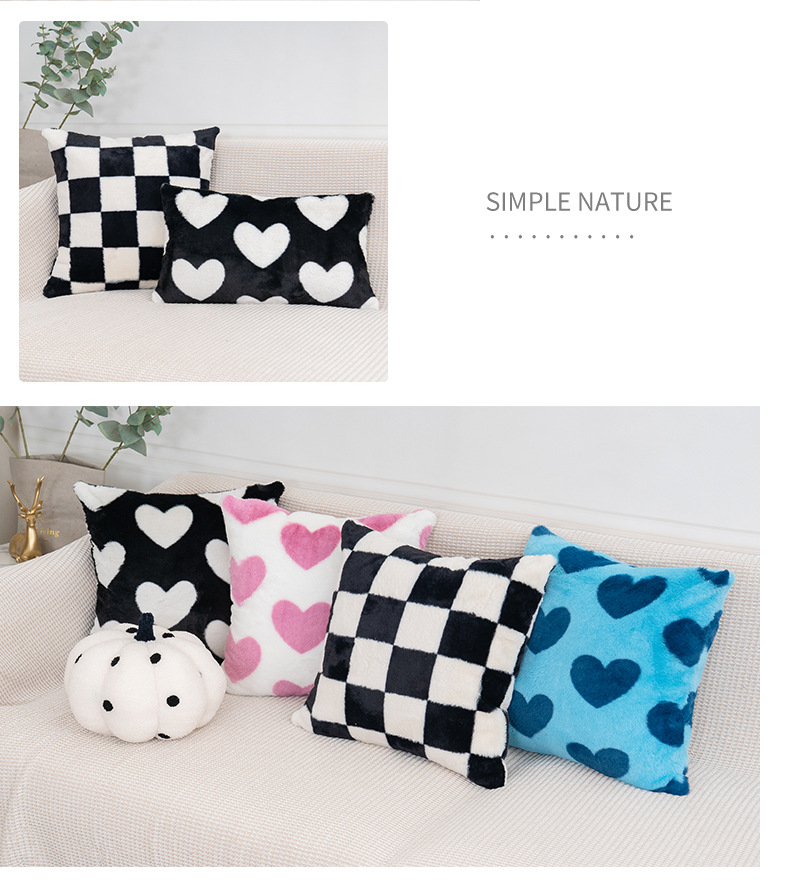 ins新款家用简约爱心图案麻将格抱枕套客厅沙发棋盘格靠垫套批发