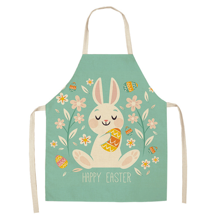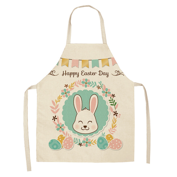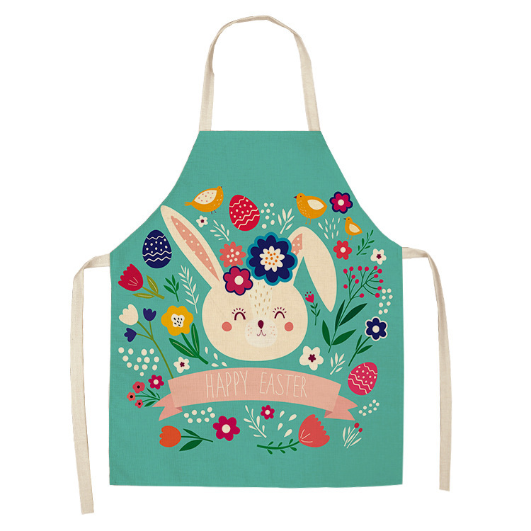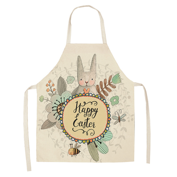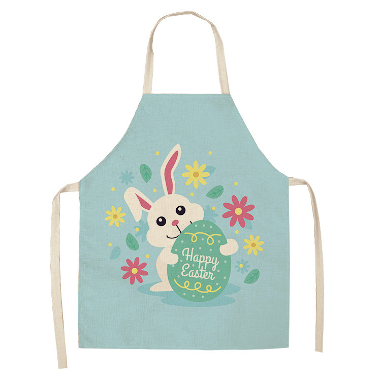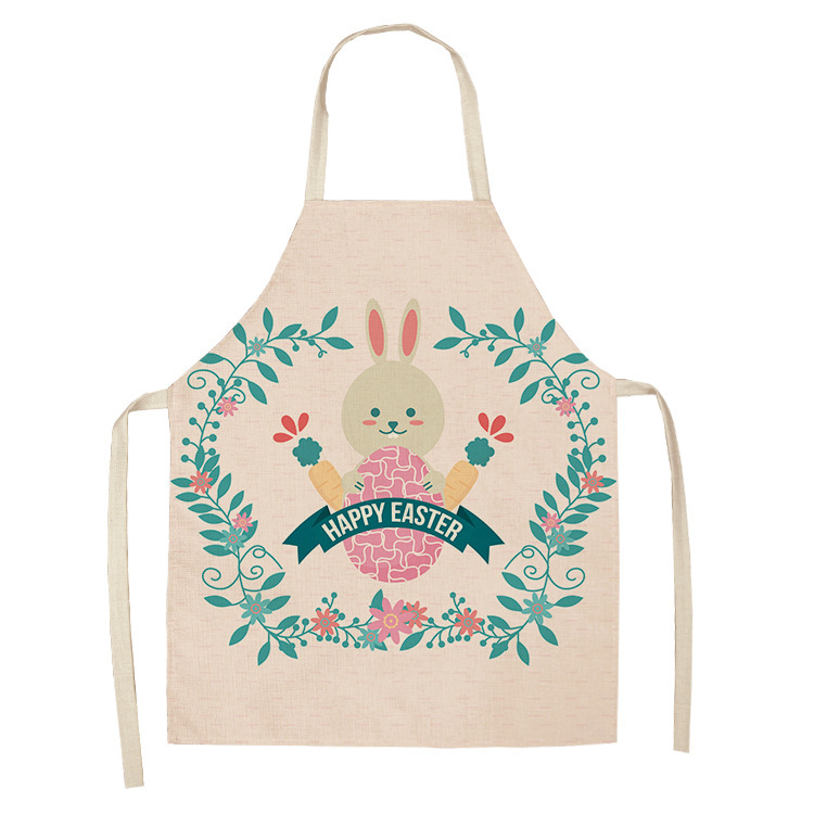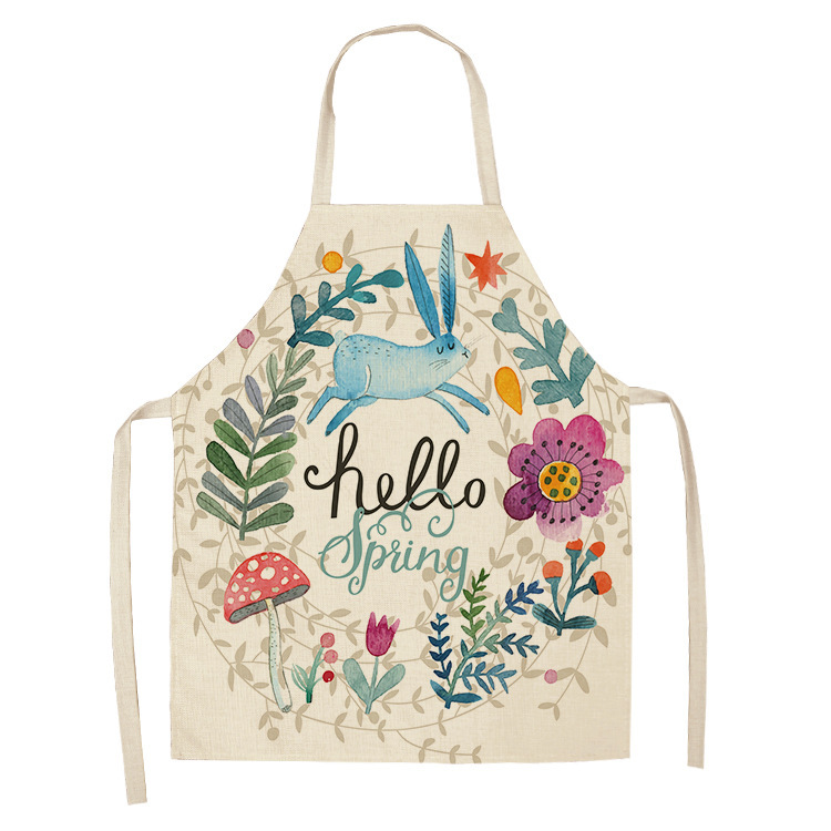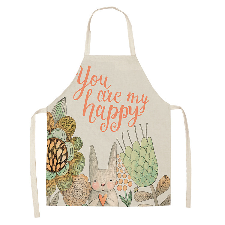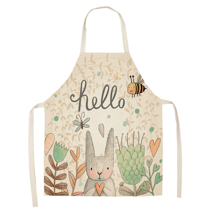 创意卡通兔子图案印花围裙 厨房棉麻围裙 家用无袖挂脖防污围裙