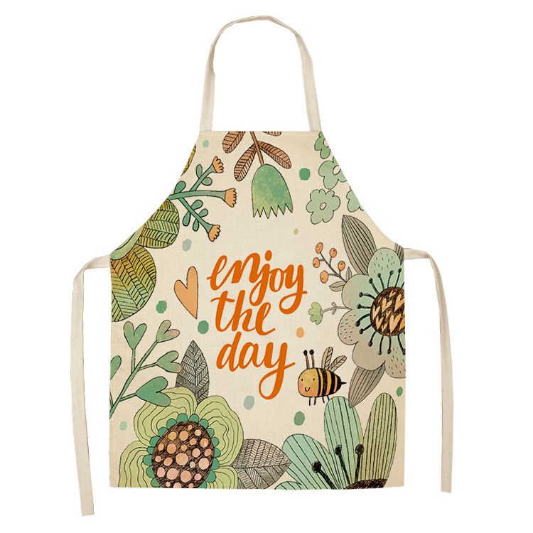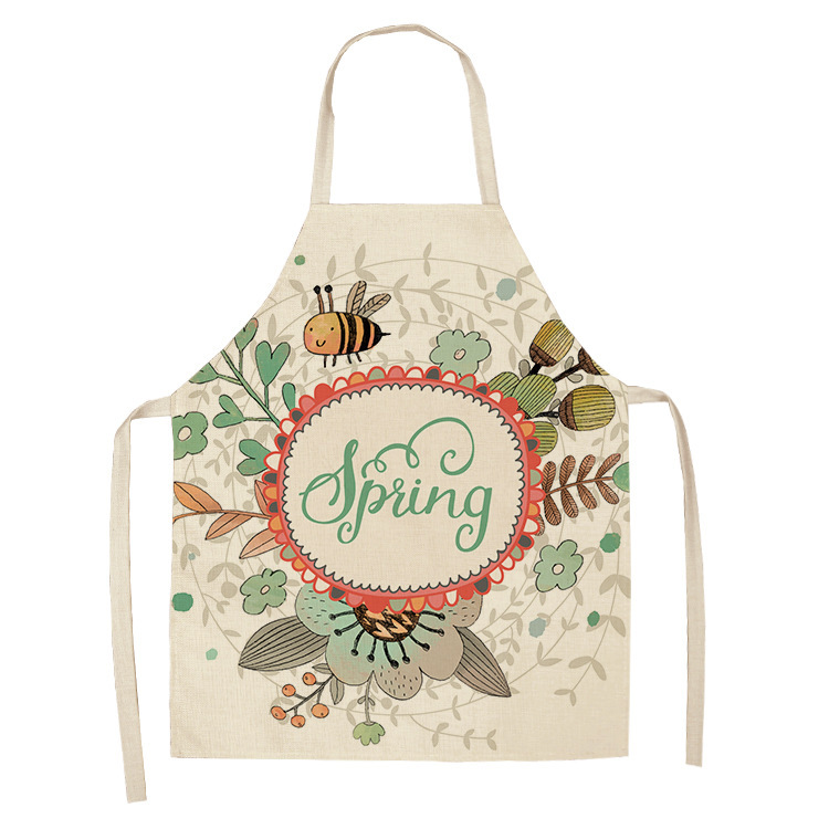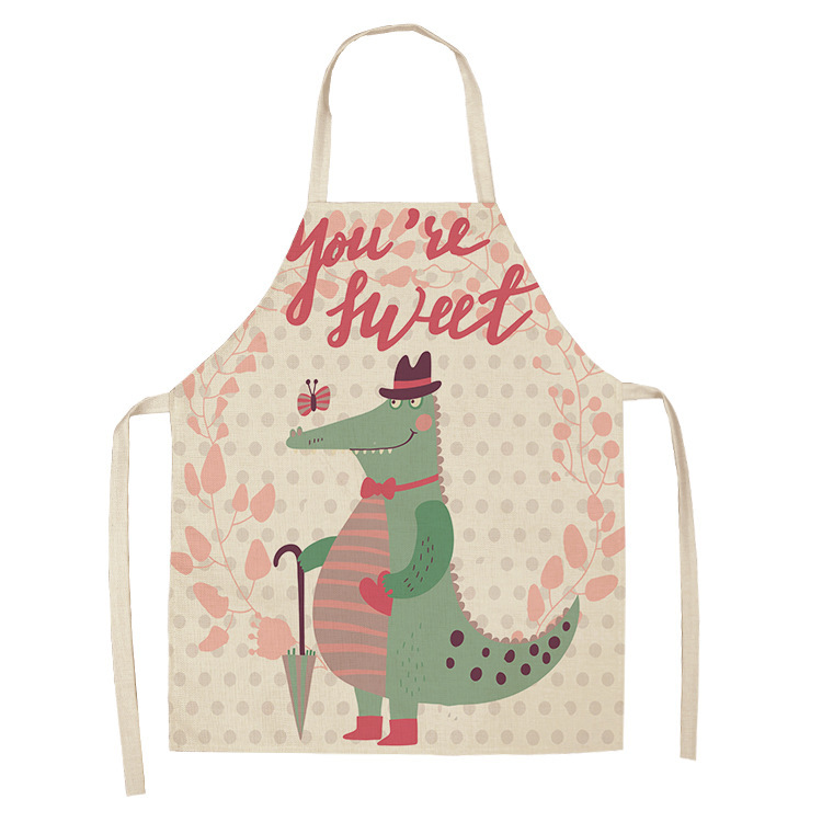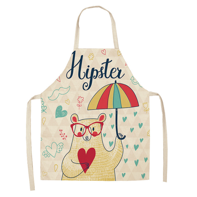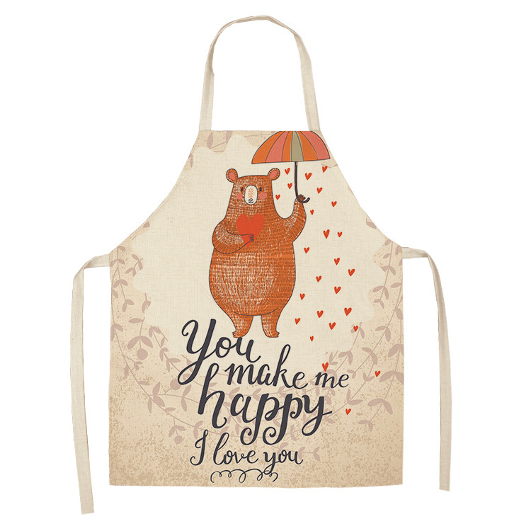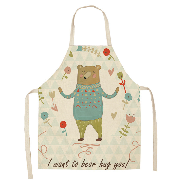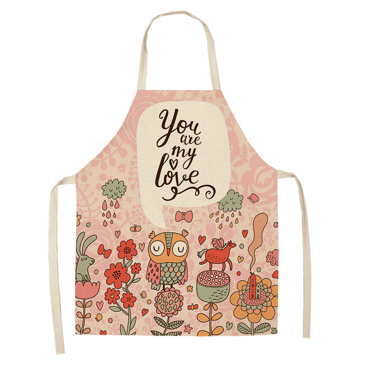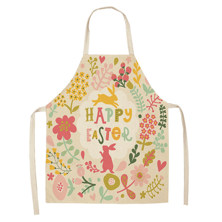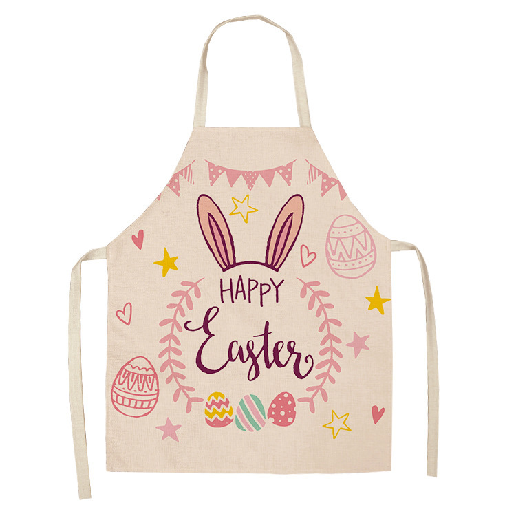 创意卡通兔子图案印花围裙 厨房棉麻围裙 家用无袖挂脖防污围裙