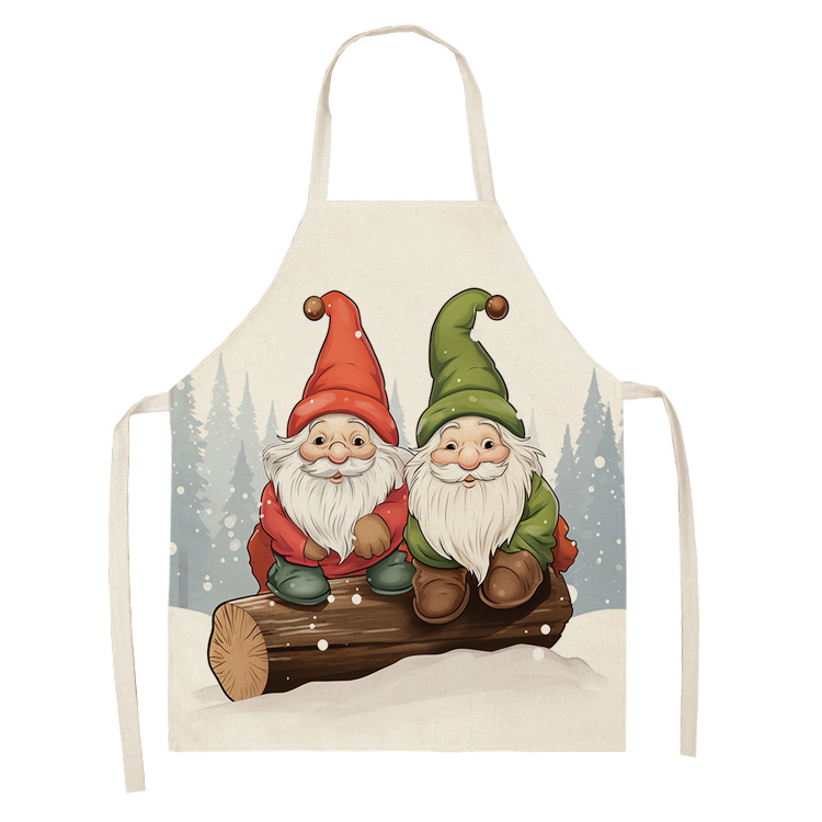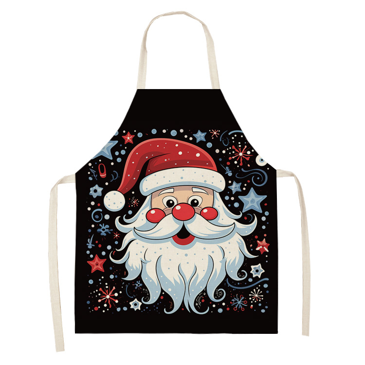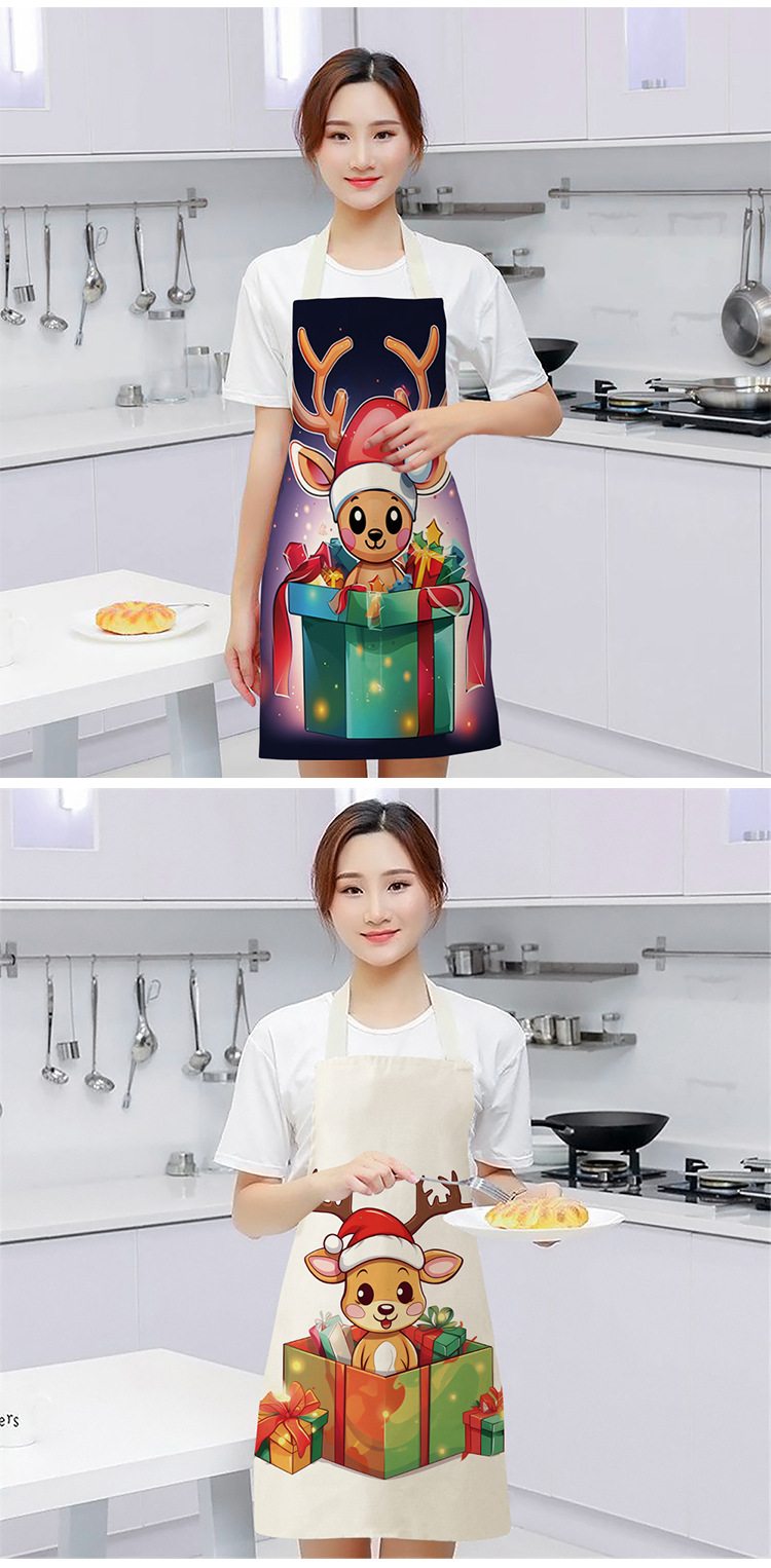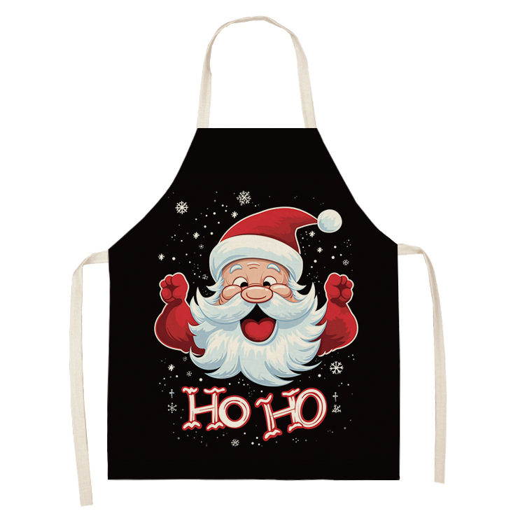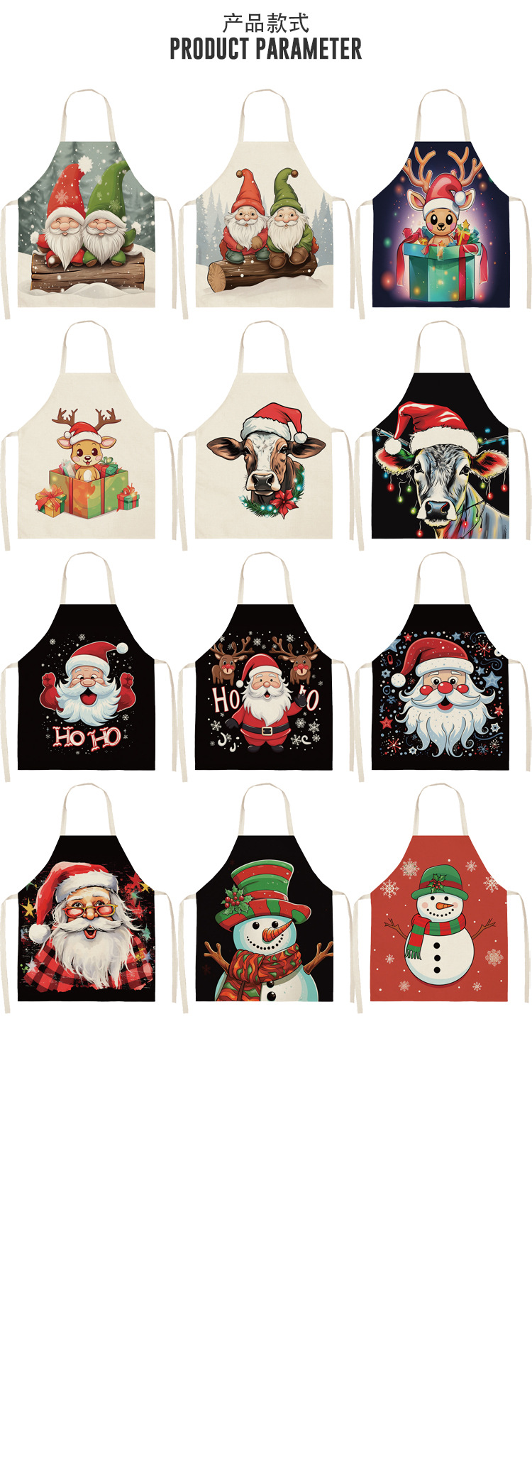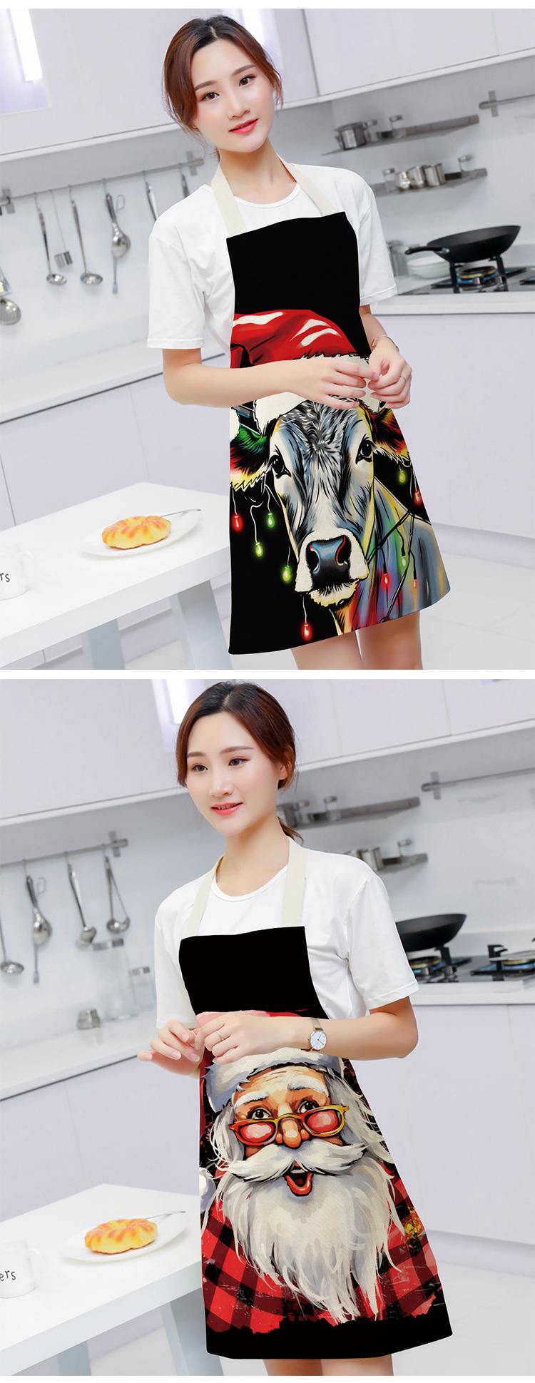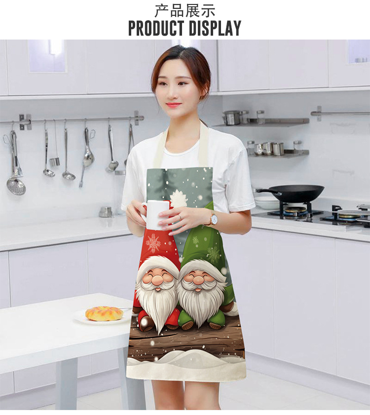 欧美卡通围裙可爱圣诞老人印花挂脖围裙家居厨房棉麻围裙来图可定