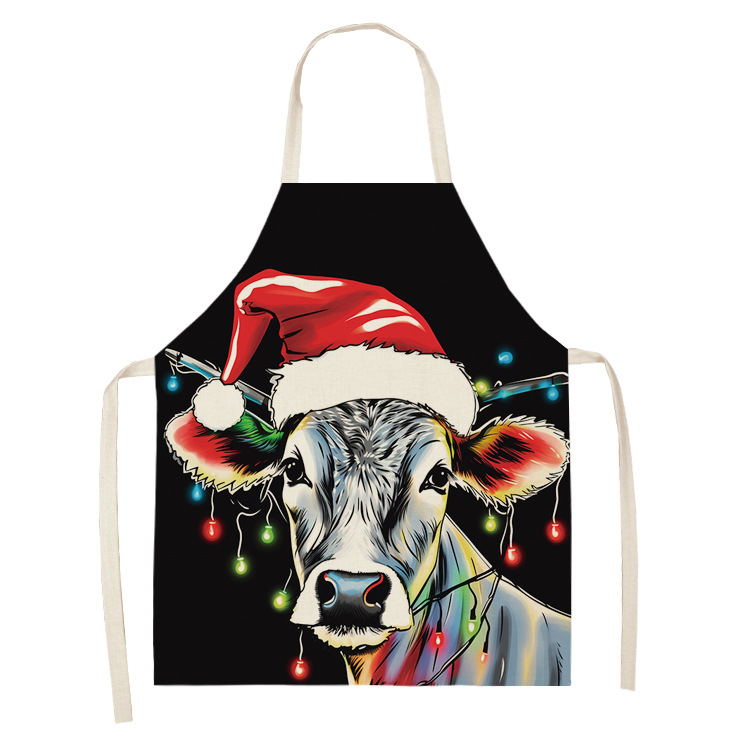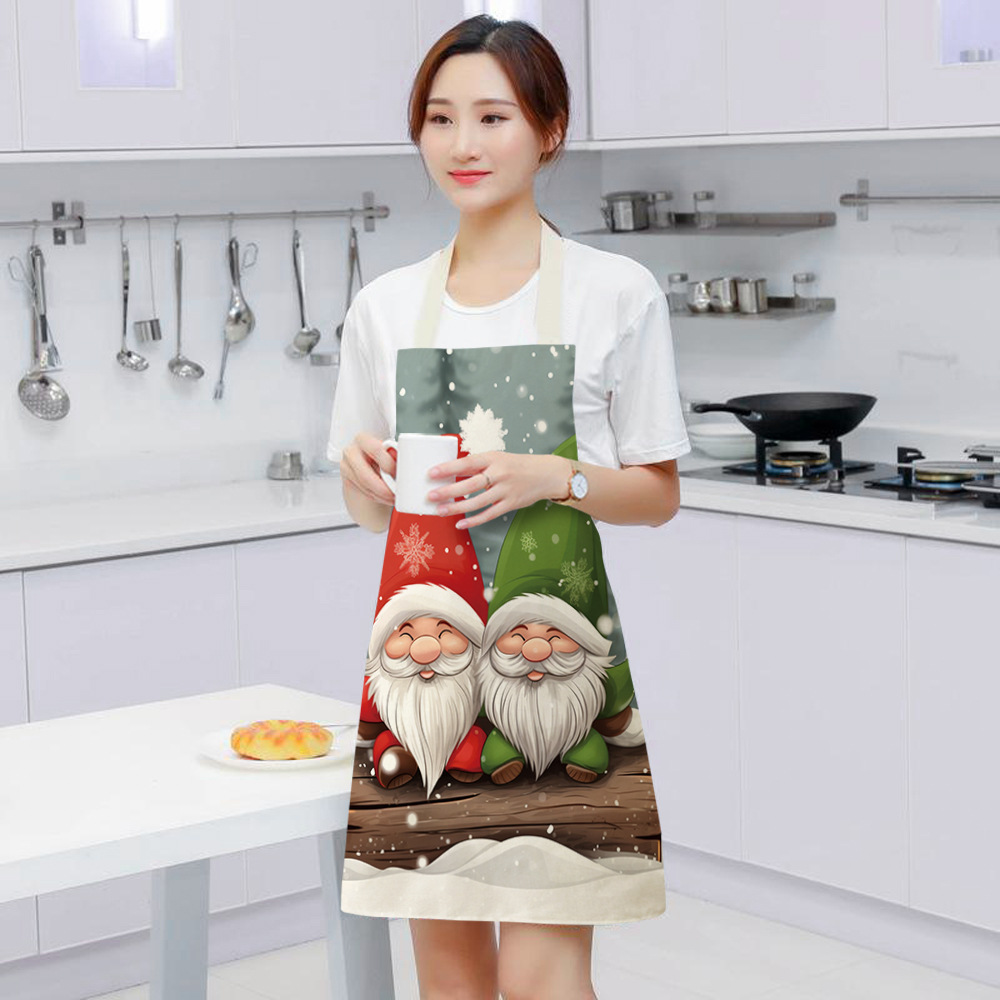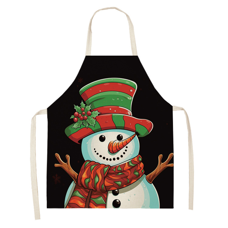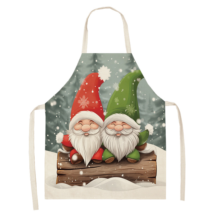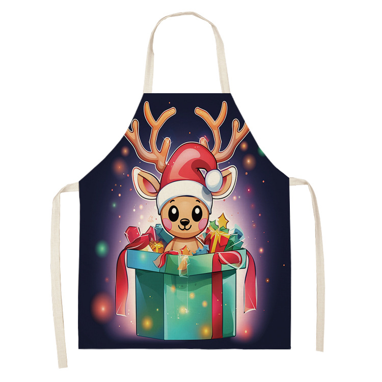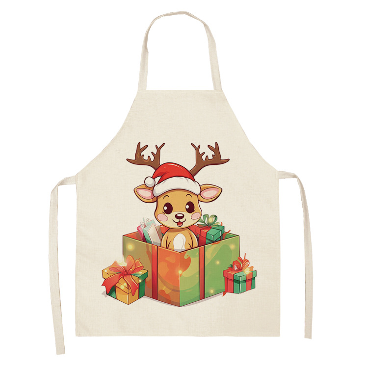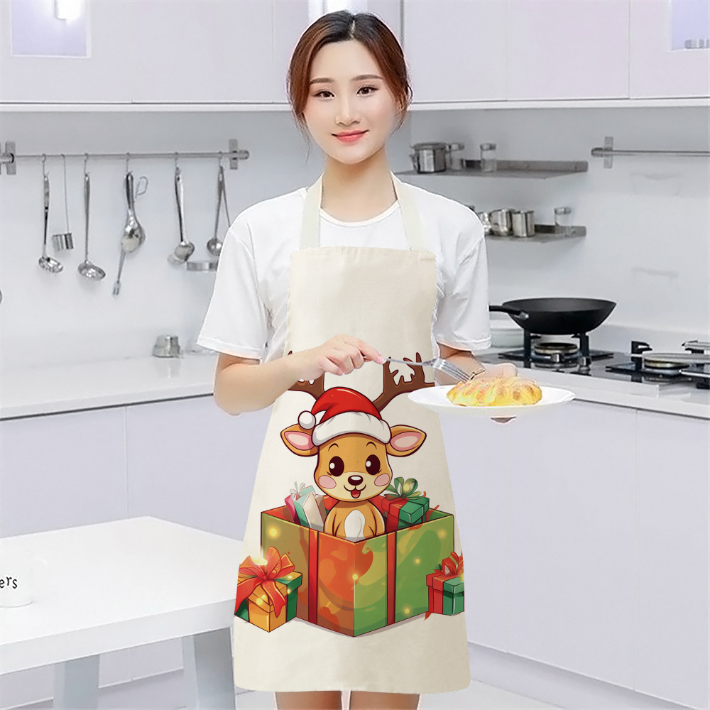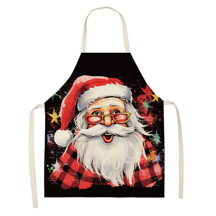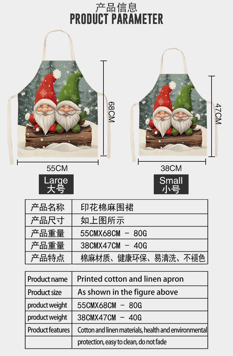 欧美卡通围裙可爱圣诞老人印花挂脖围裙家居厨房棉麻围裙来图可定