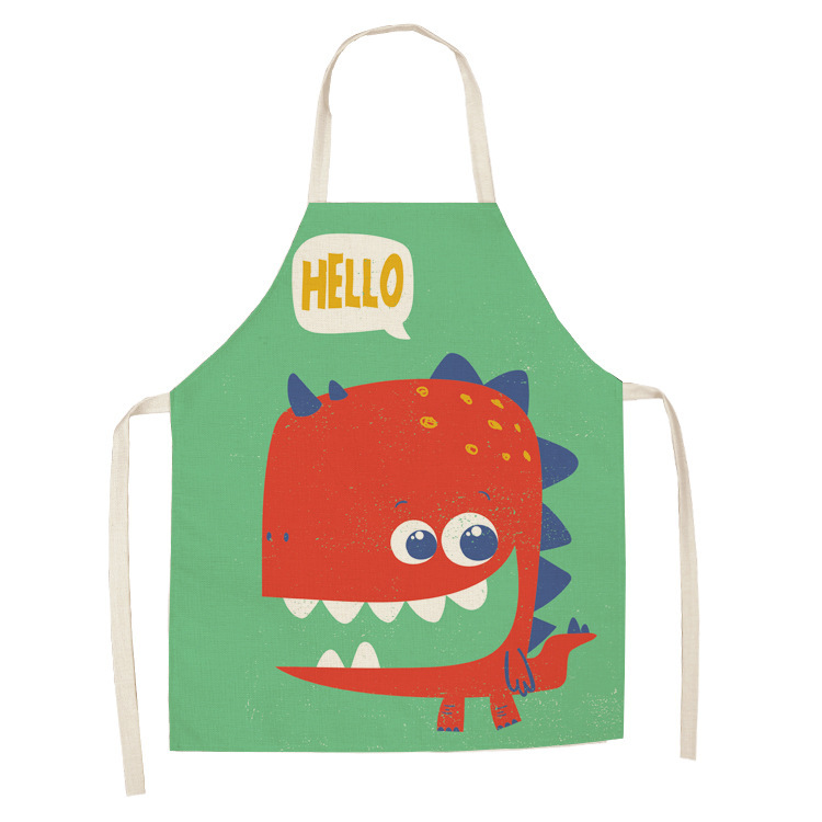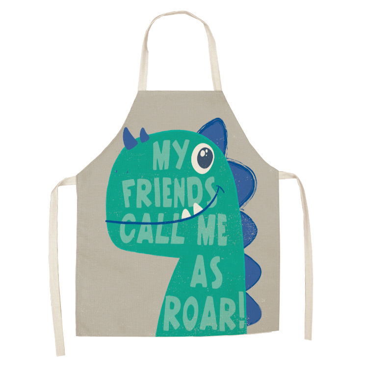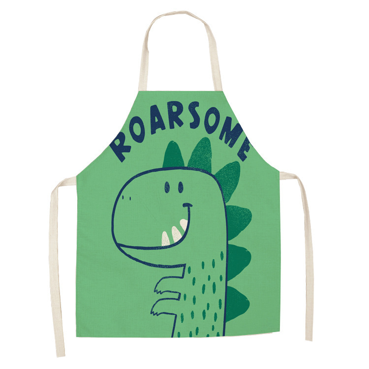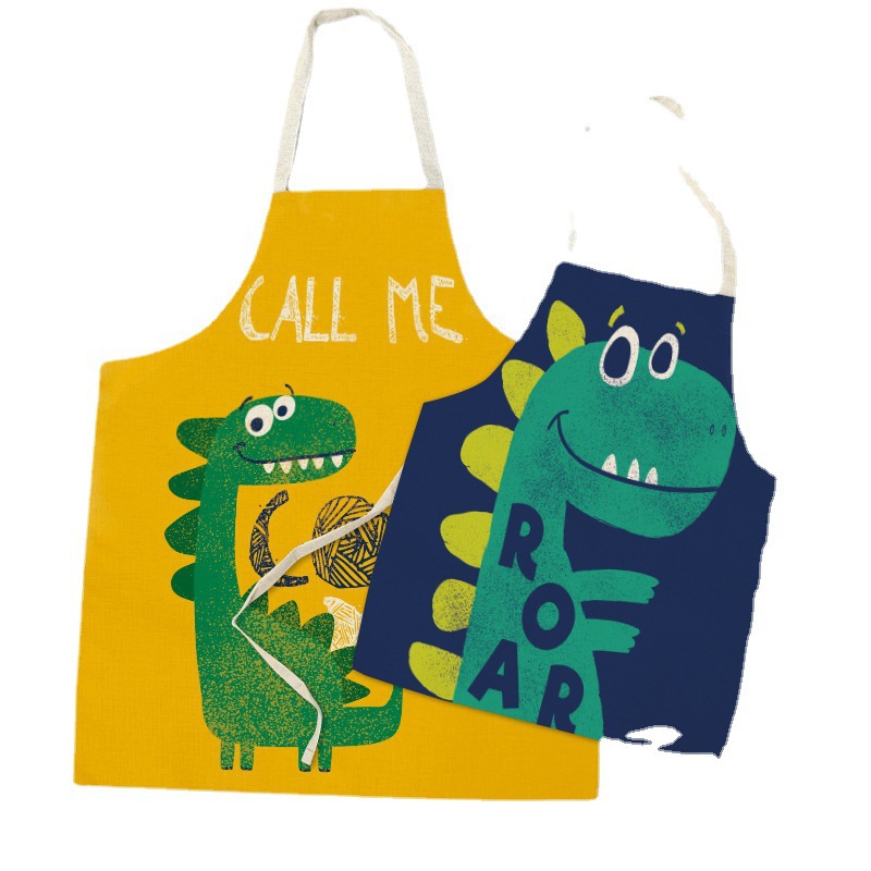 新款卡通恐龙围裙 创意情侣款厨房棉麻围裙 支持来图可定厂家直销